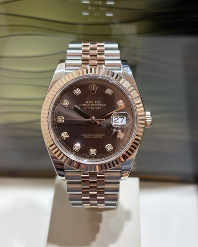 רולקס דייטג'אסט 41ממ אויסטר פלדה משולב רוז גולד לוח שוקולד יהלומים