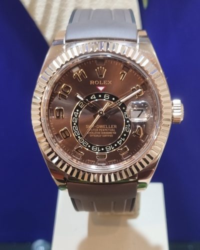 רולקס סקיי-דוולר רוז גולד לוח שוקולד דגם.326135 יד שנייה שנת 2015