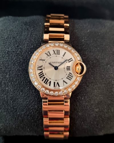 קרטייה בלון בלו רוז גולד שיבוץ באזל יהלומים מקורי קרטייה יד שנייה במצב חדש דגם.WE9002Z3
