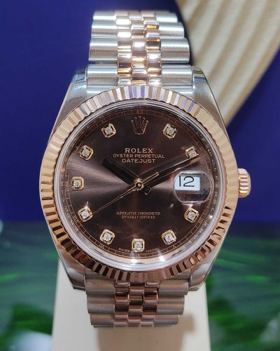 Rolex Datejust 41mm Two Tone Rose Gold Diamonds Chocolate Dial ref.126331