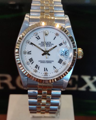 רולקס דייטג'אסט נשים 36ממ אויסטר פלדה עם רוז גולד לוח ורוד משובץ יהלומים