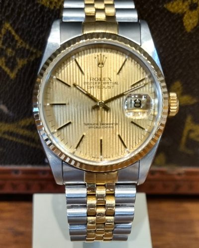₪25,000.00Rolex Datejust “Tapestry” Dial, 36mm, Steel and 18k Yellow Gold, Jubilee Bracelet, ref.16233 from 1991.