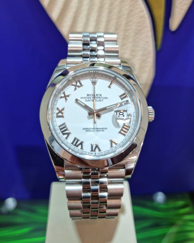 רולקס דיטג'אסט 36ממ פלדה משולב באזל זהב לבן לוח סילבר יהלומים יד שנייה שנת 2015 דגם.116234
