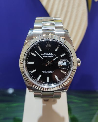 רולקס דייטג'אסט 41ממ פלדה משולב בזל זהב לבן לוח שחור יד שנייה שנת 2019 דגם.126334