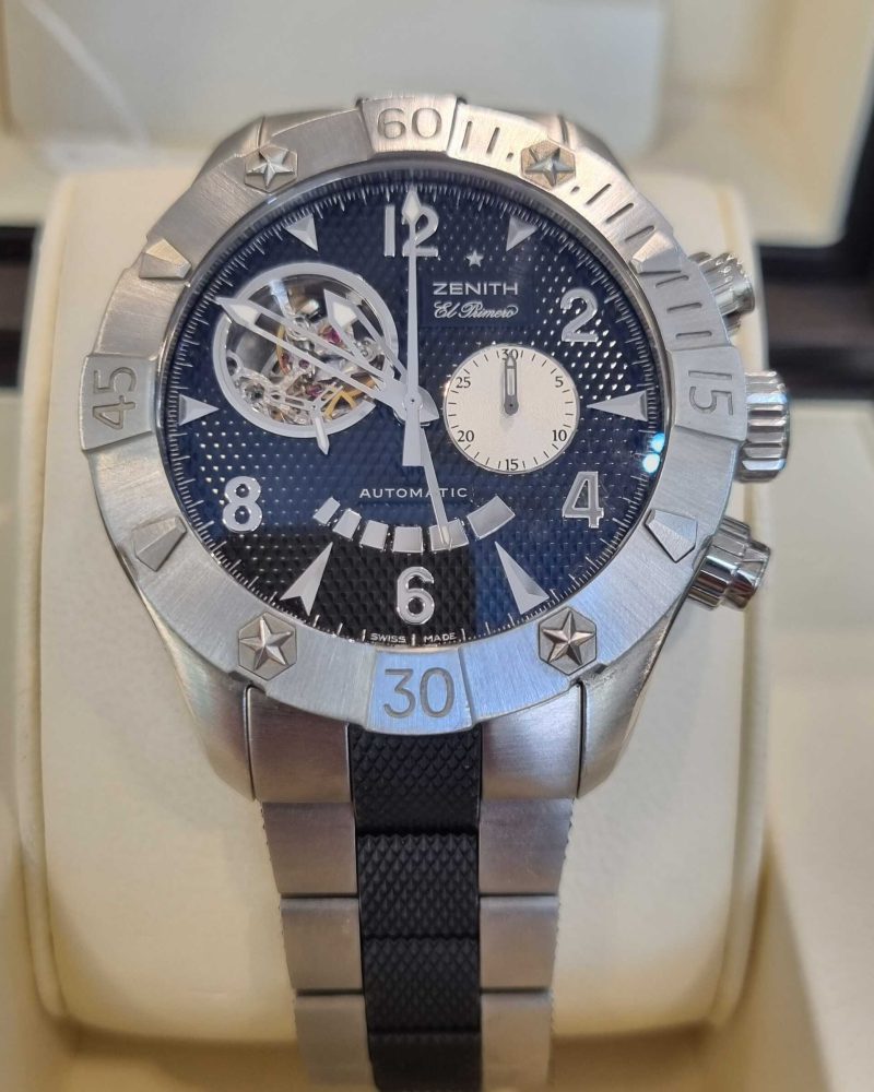 Gotawatch > All Watches > זניט > זניט דפי אל פרימרו מנגנון פתוח עם מד טעינה חדש סטוק ישן