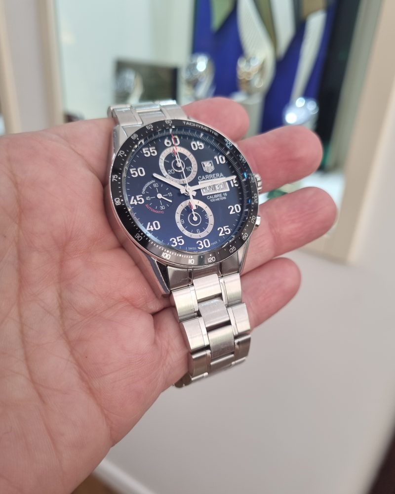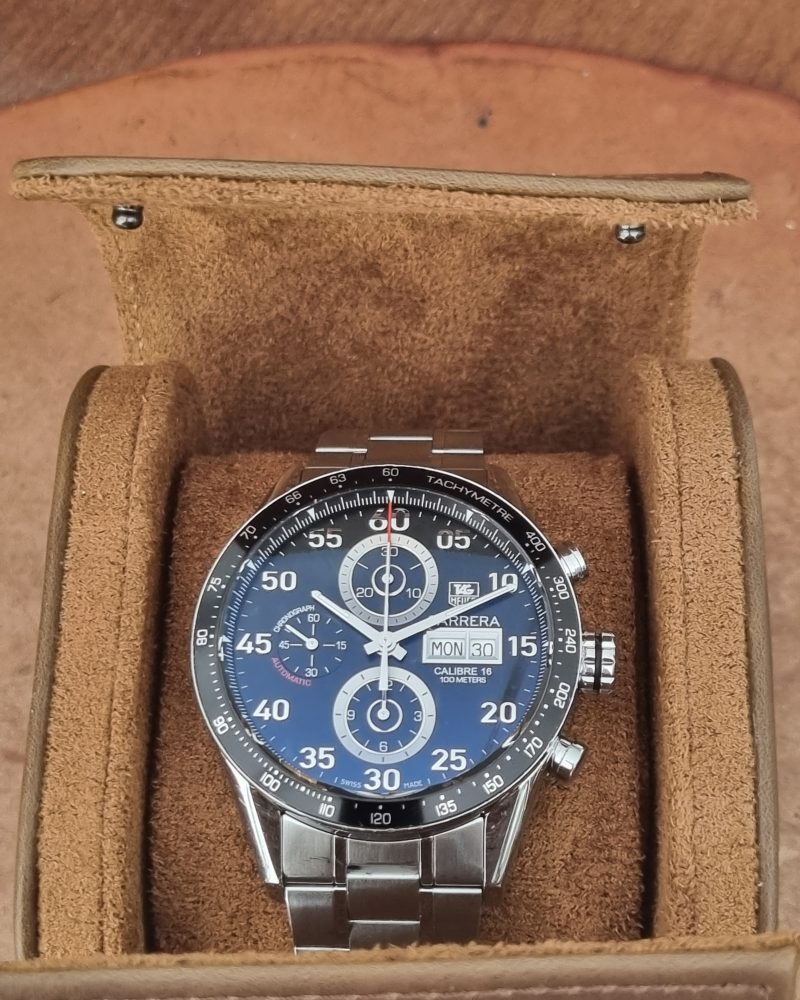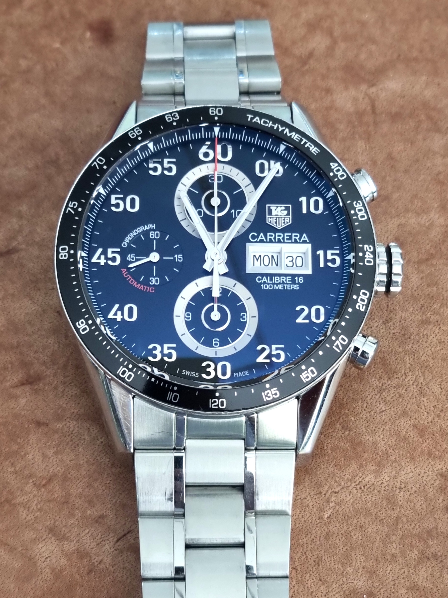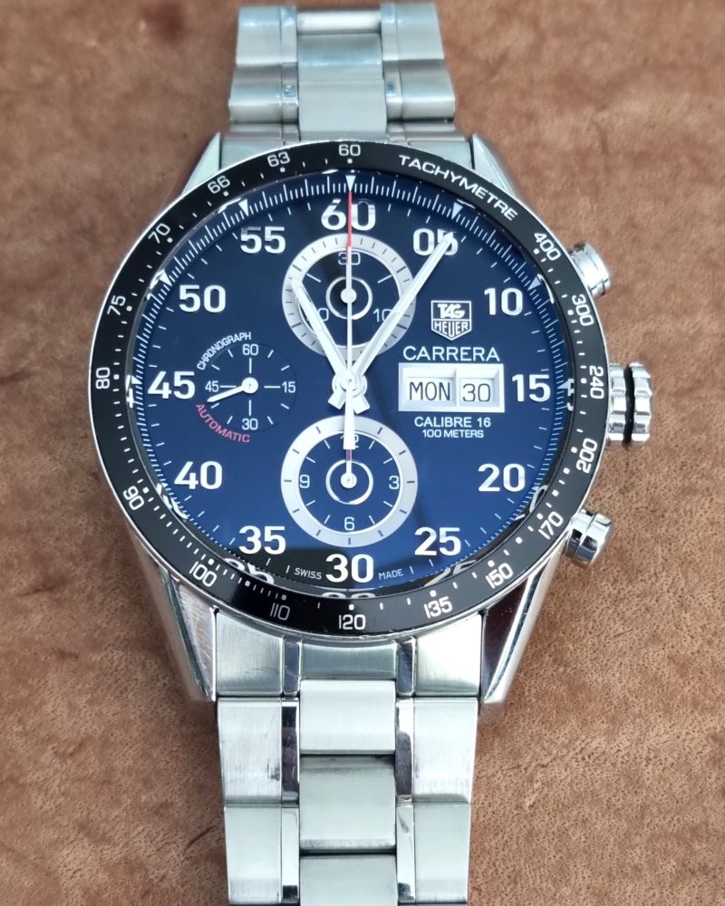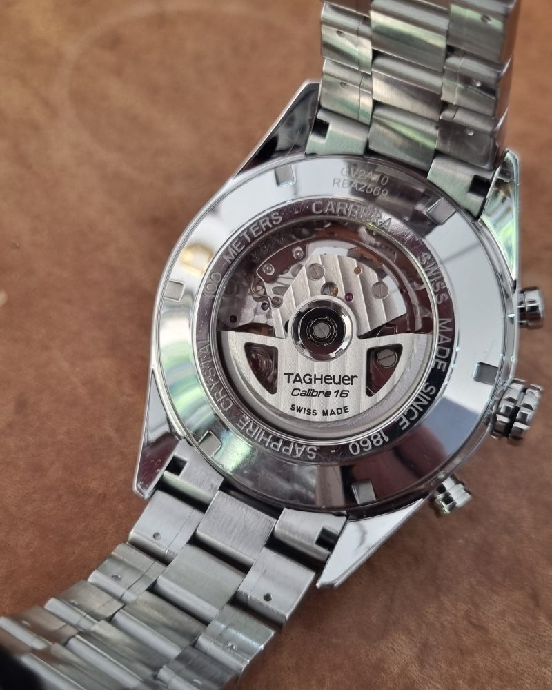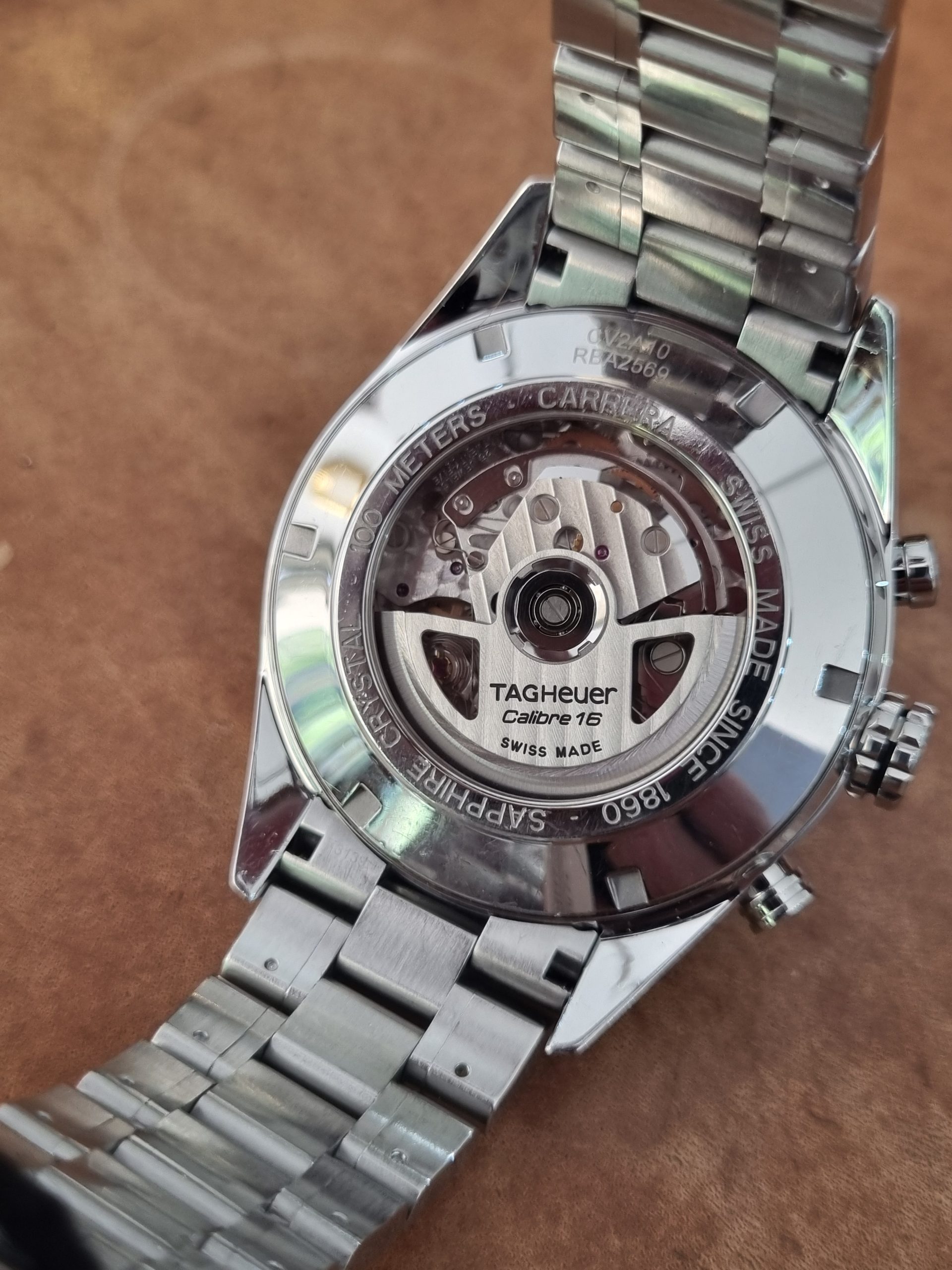 טאג הויאר קררה כרונוגרף קליבר 16 מנגנון אוטומטי פלדה דגם.CV2010,יד שנייה שנת 2010 קוטר 44ממ, גב מנגנון שקוף