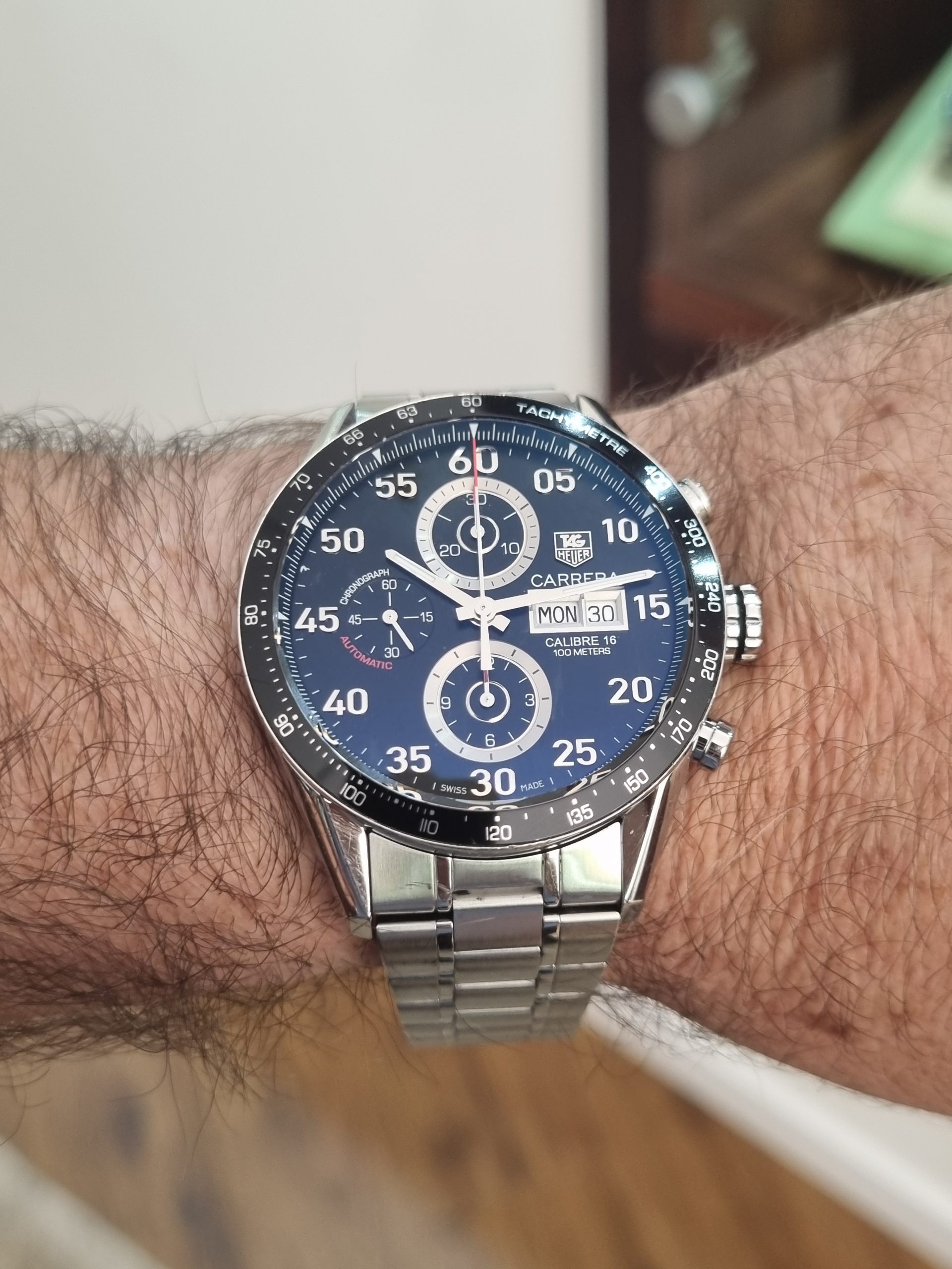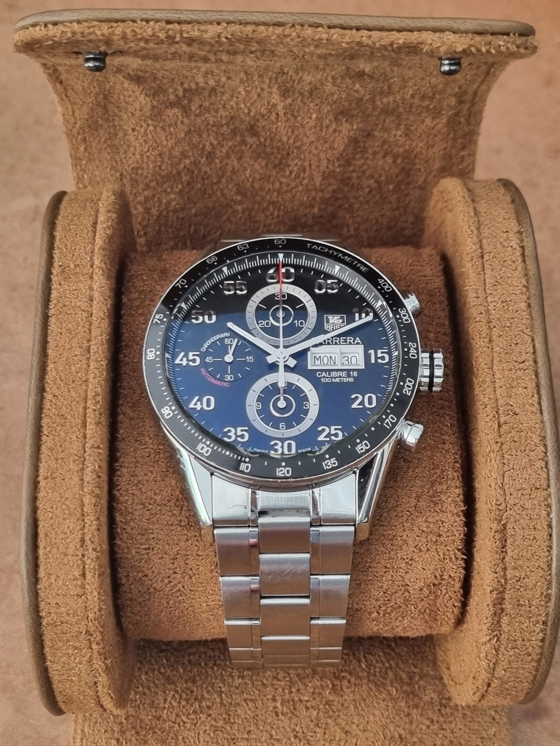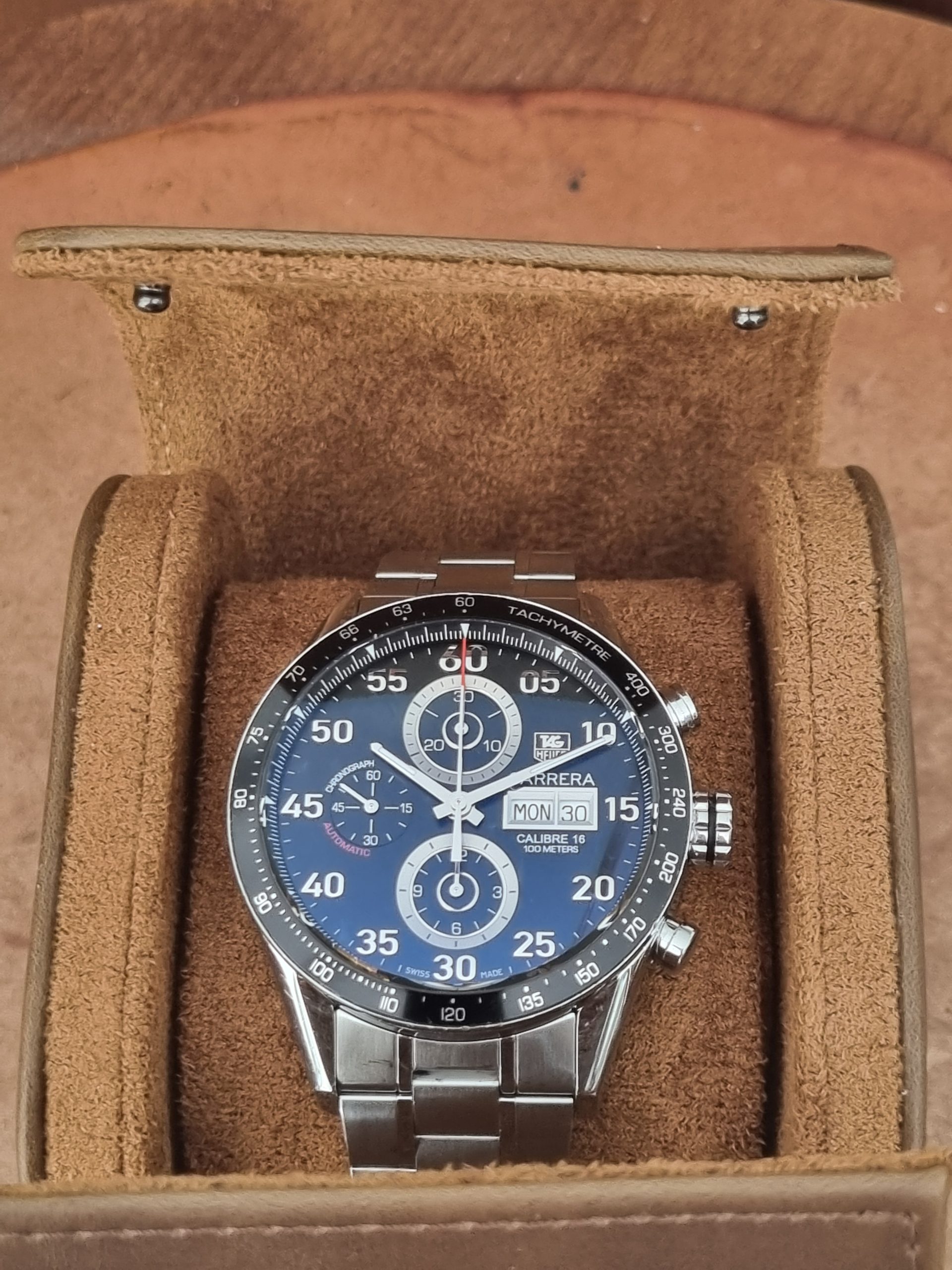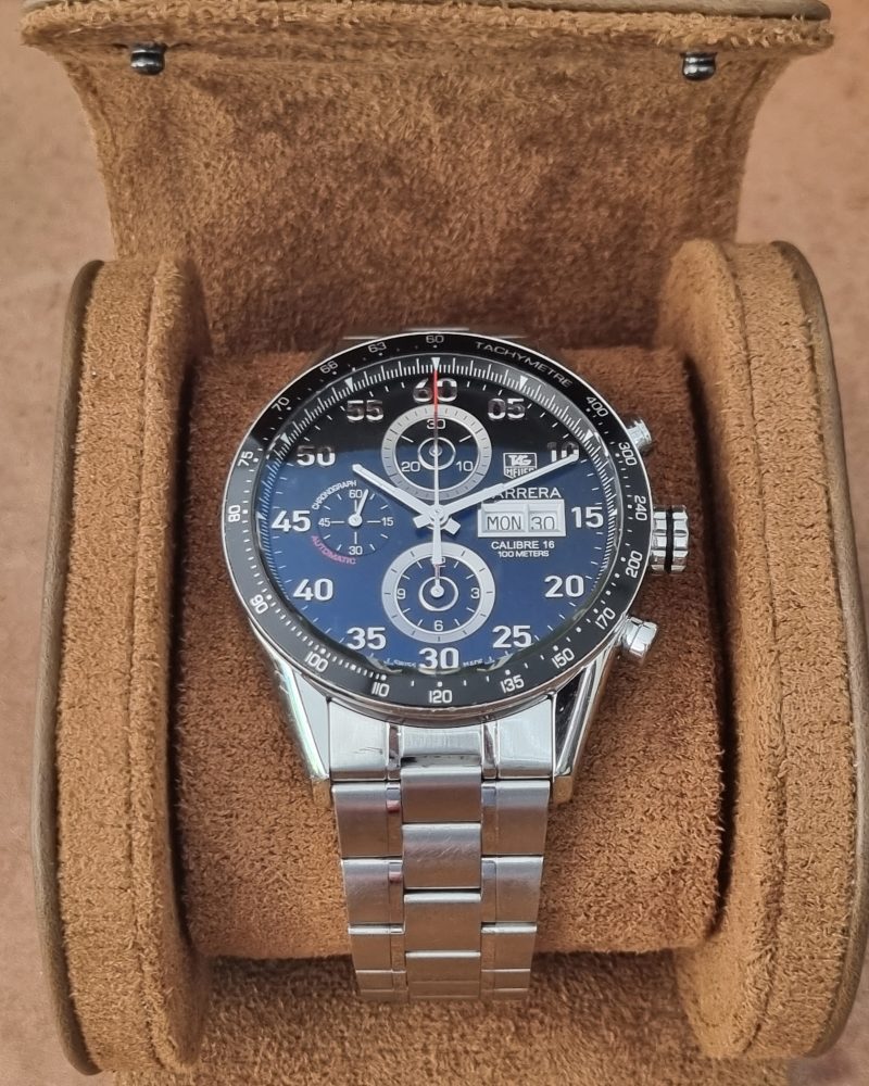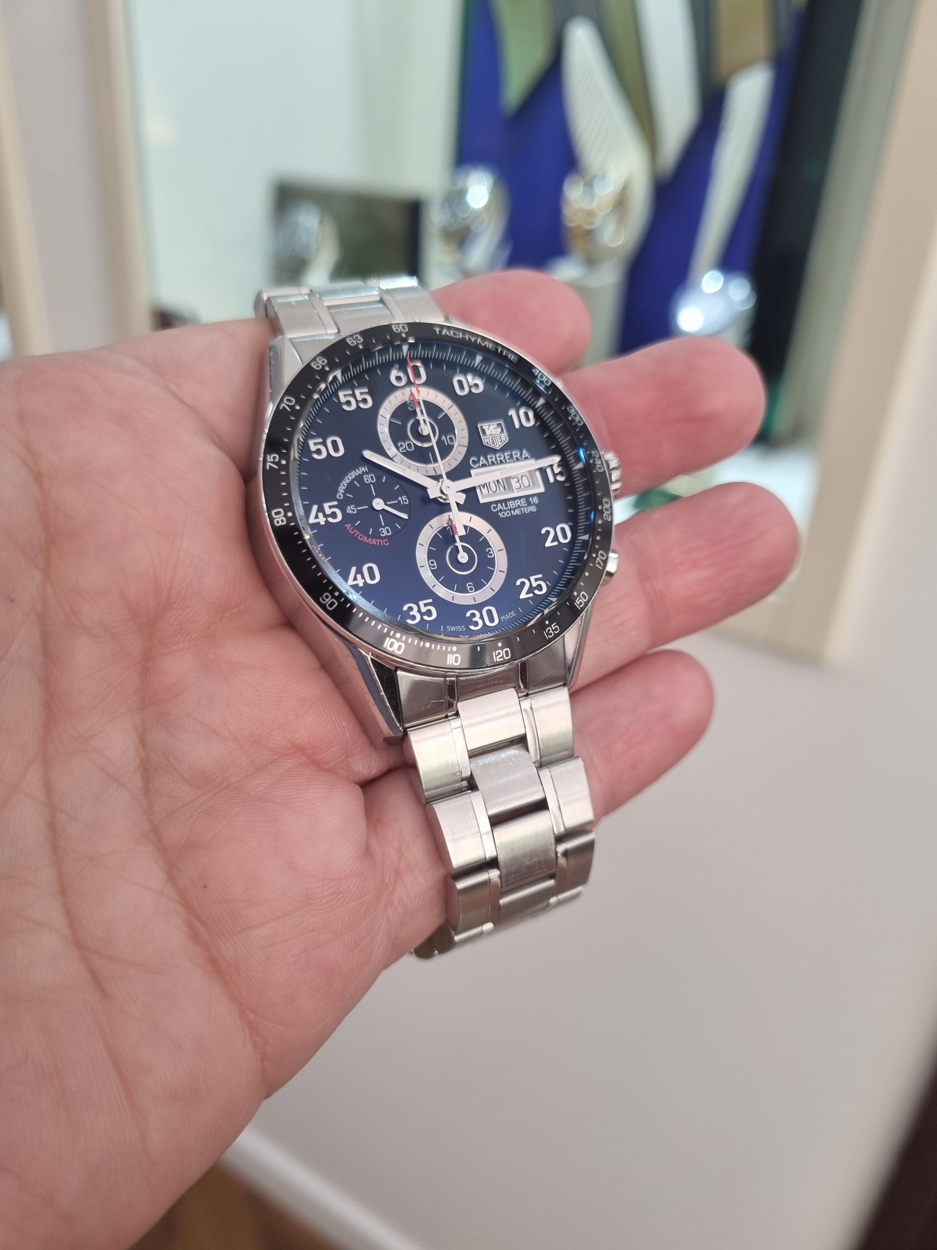 טאג הויאר קררה כרונוגרף קליבר 16 מנגנון אוטומטי פלדה דגם.CV2010,יד שנייה שנת 2010 קוטר 44ממ, גב מנגנון שקוף