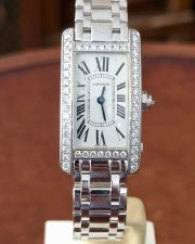 קרטיה טנק אמריקאי 2489 נשים זהב לבן 18 קראט משובץ יהלומים,19/35 ממ, מנגנון קוורץ