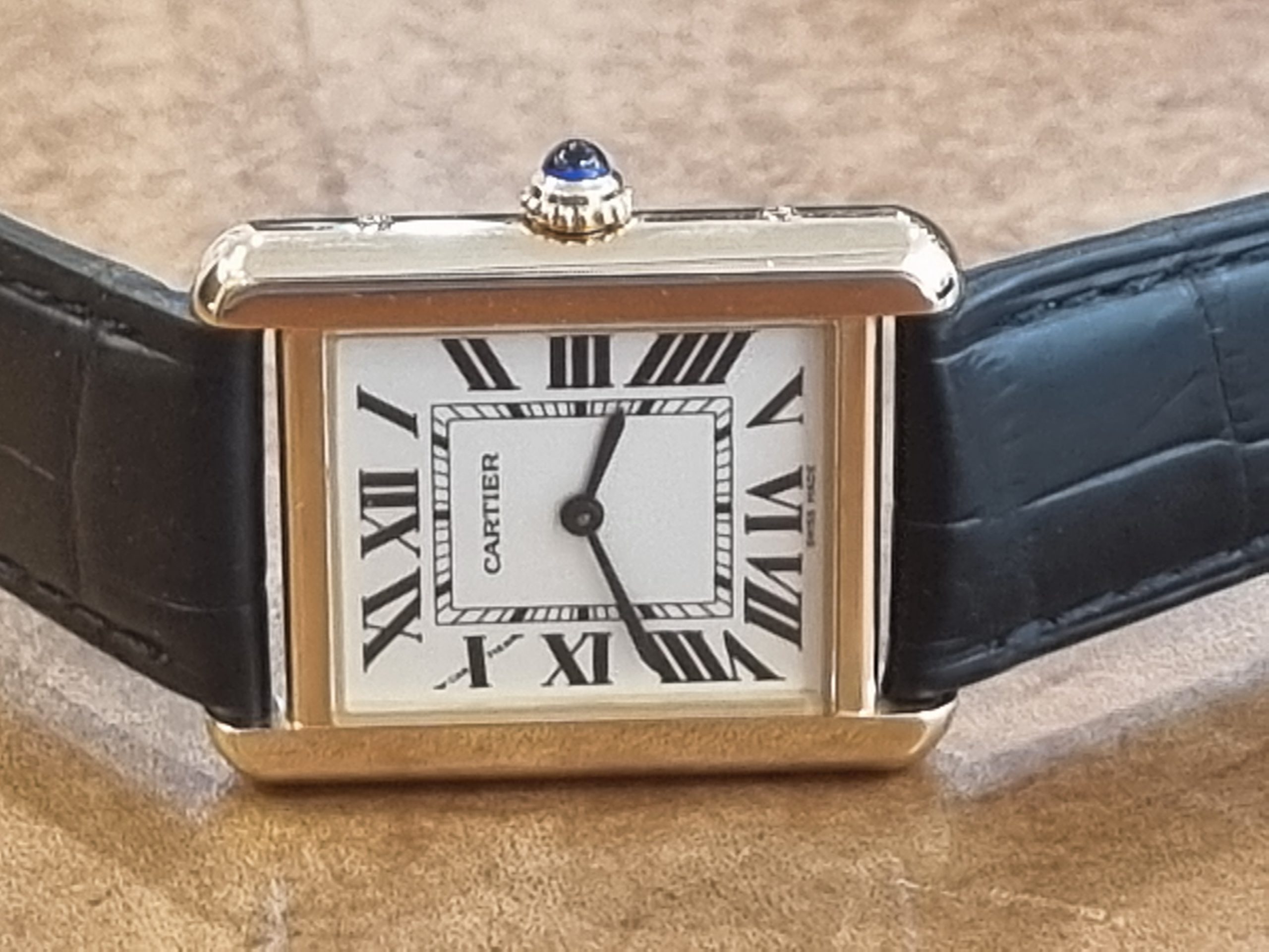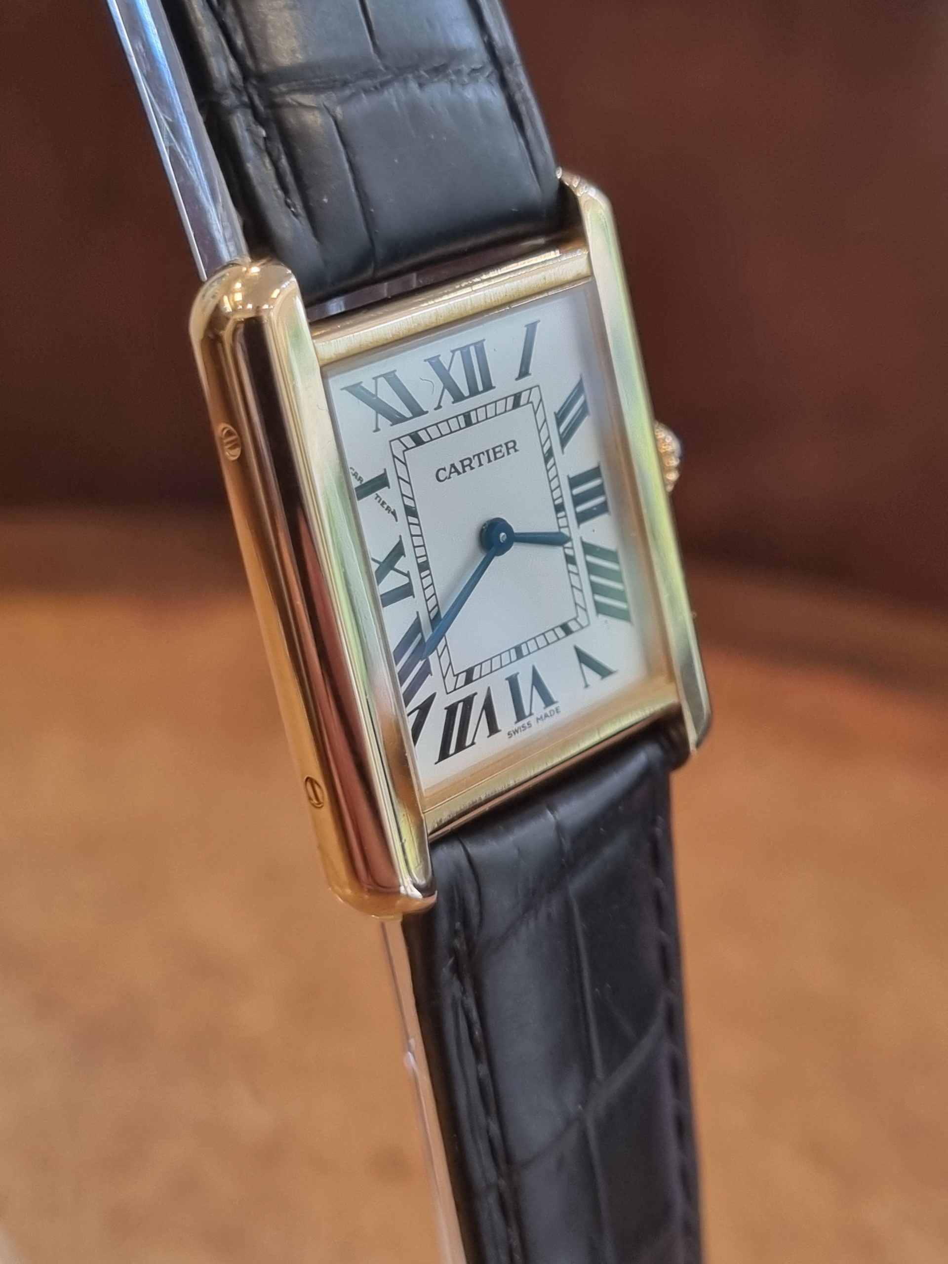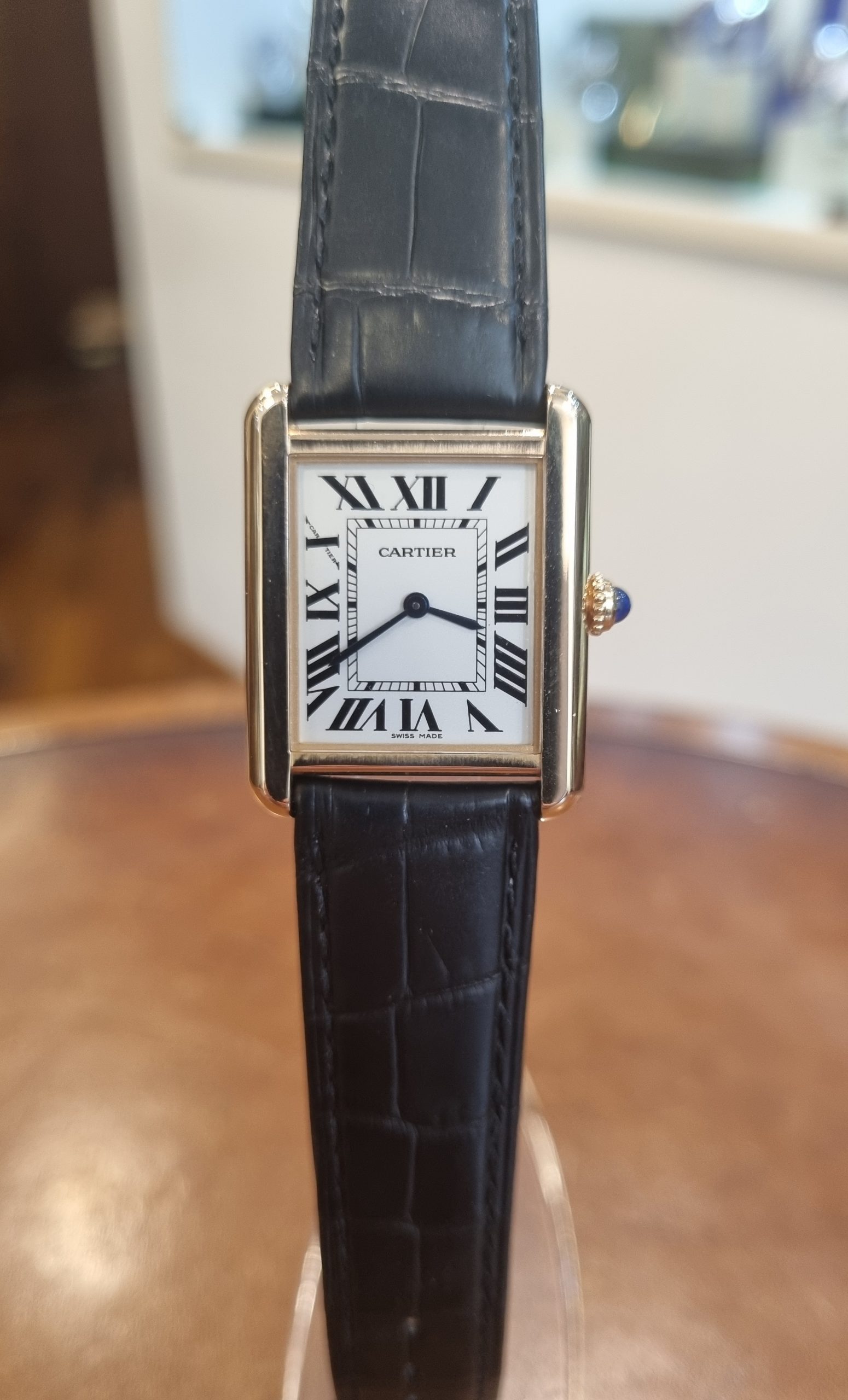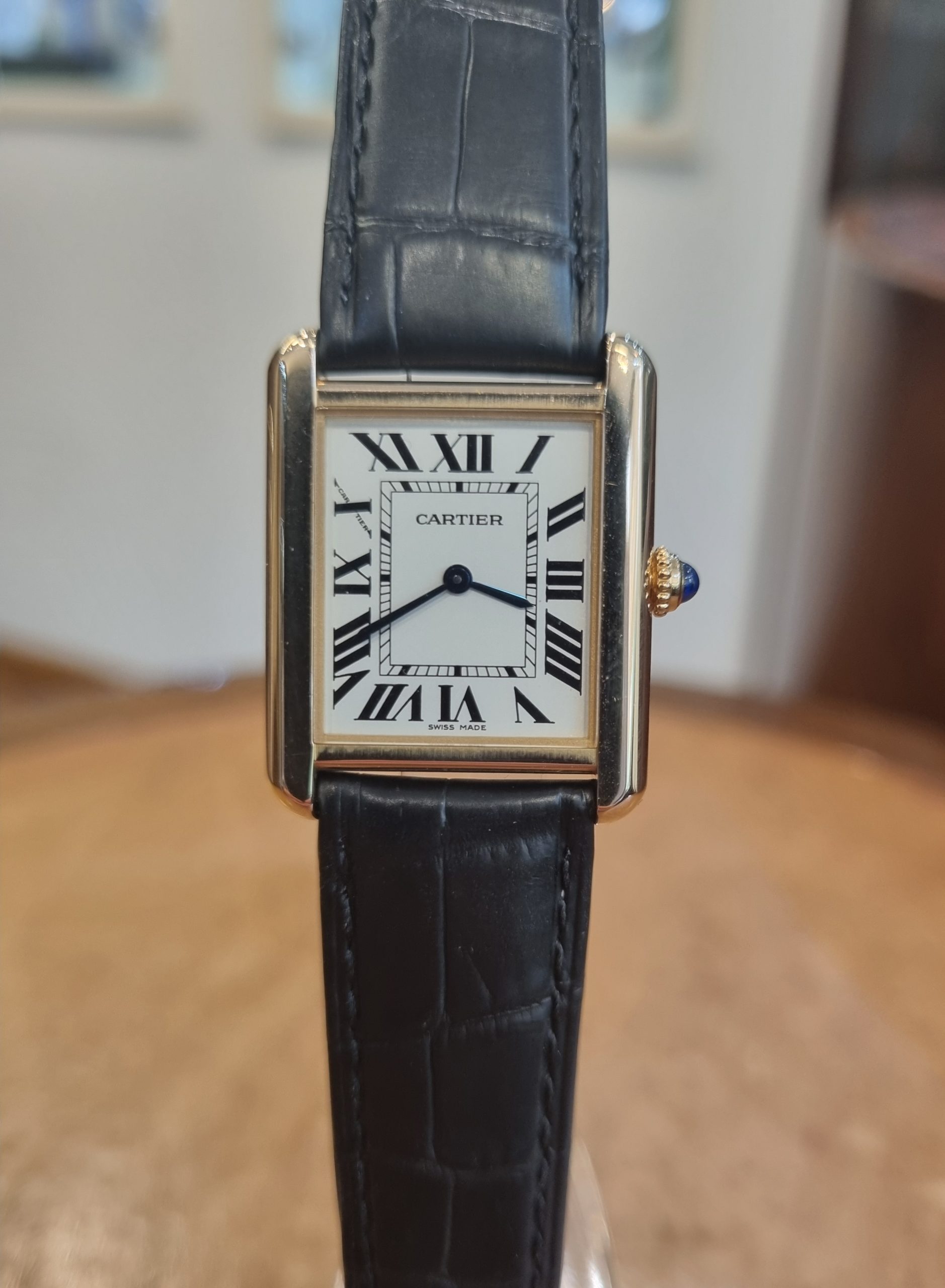 קרטייה טנק סולו זהב צהוב רצועה שחורה מידה סמול דגם.2743 יד שנייה שנת 2023 במצב חדש!