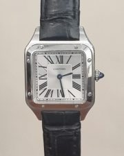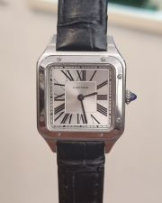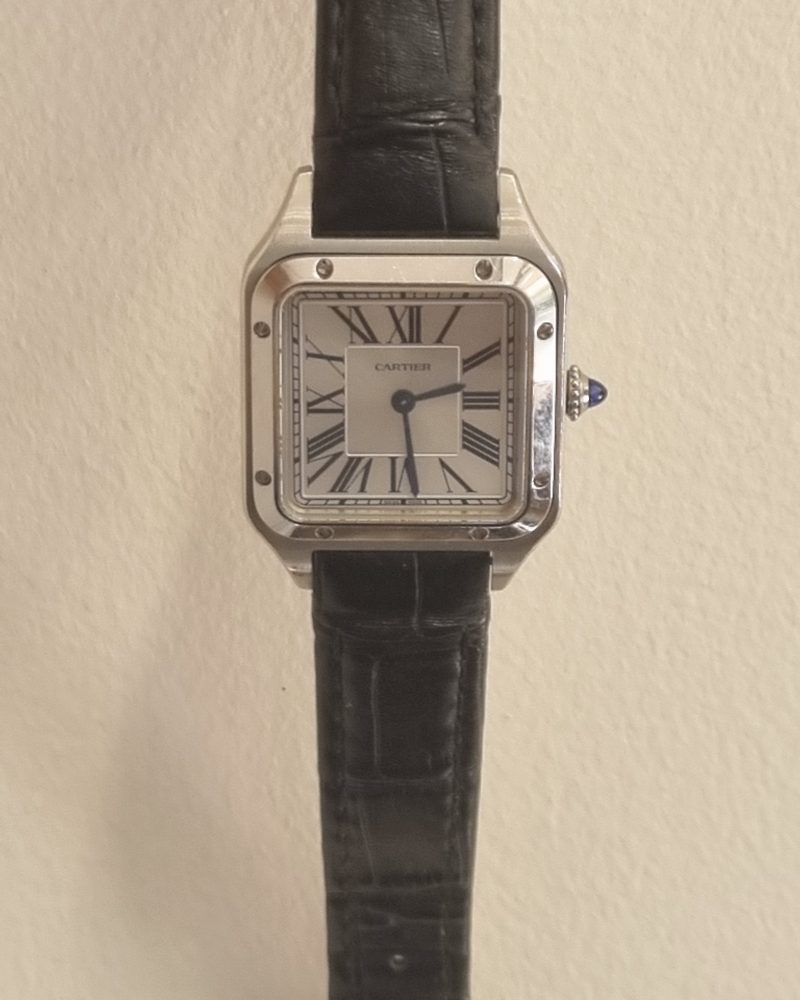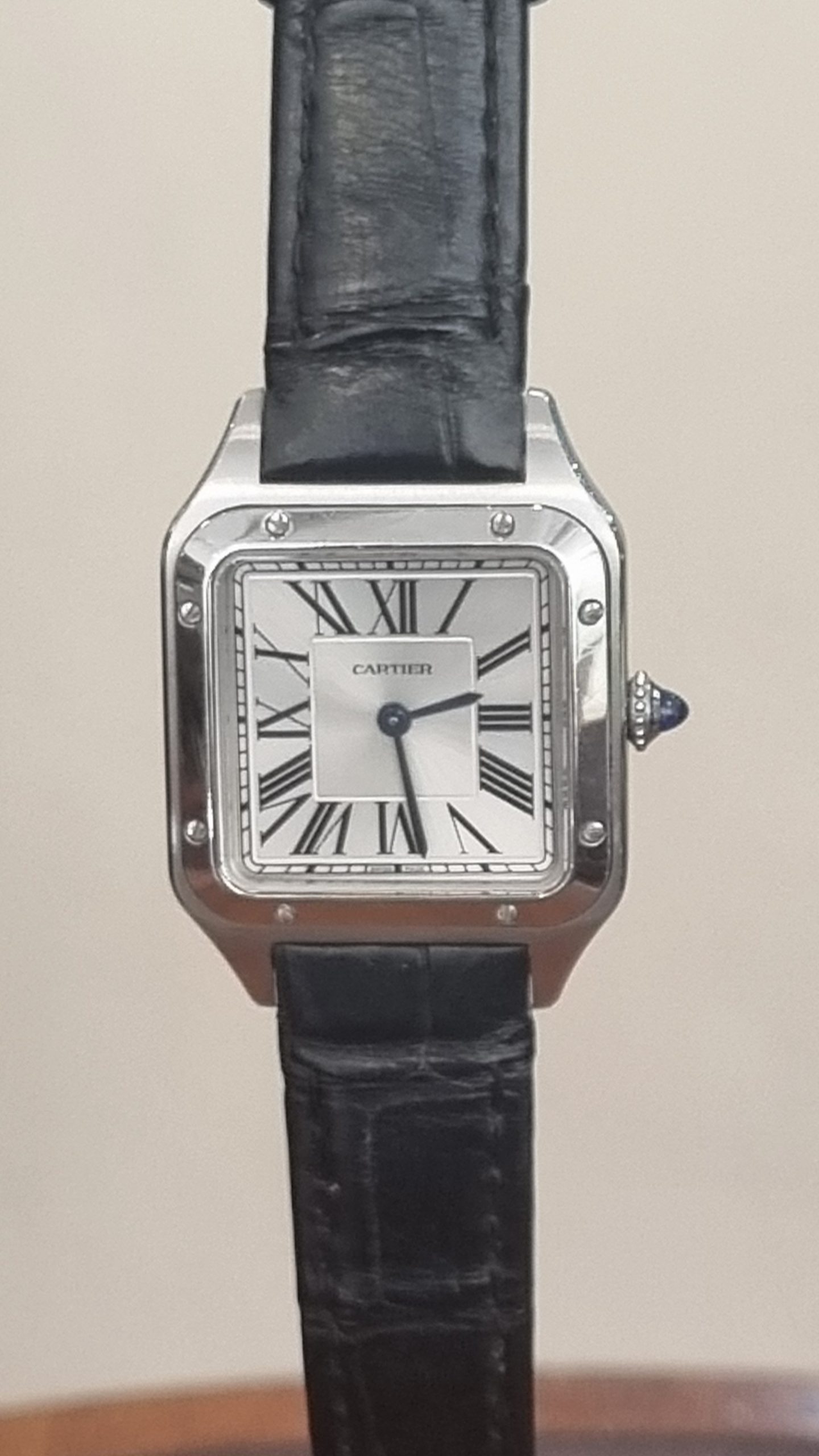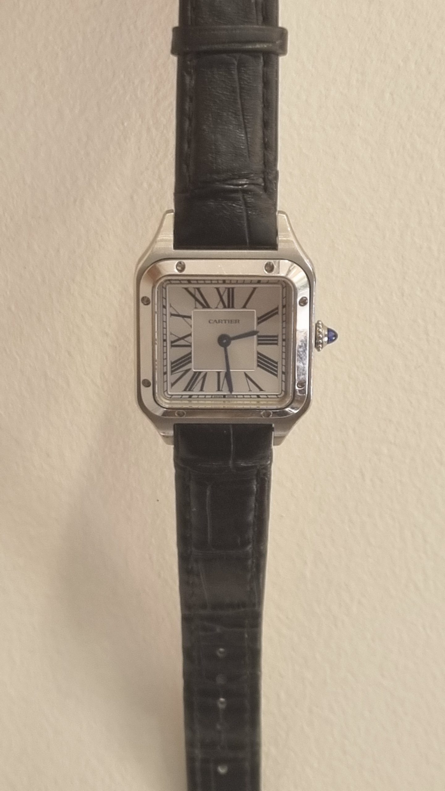 קרטייה סנטוס דומונט נשים יד שנייה שנת 2024, מידה סמול-דגם.wssa0023, רצועת עור קרוק שחורה מקורית.