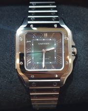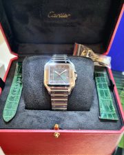 קרטיה סנטוס מידה מדיום פלדה לוח כחול מנגנון אוטומטי, דגם.wssa0063, שנת 2024, באחריות מלאה כולל רצועה עור וסוגר פטנט להחלפה