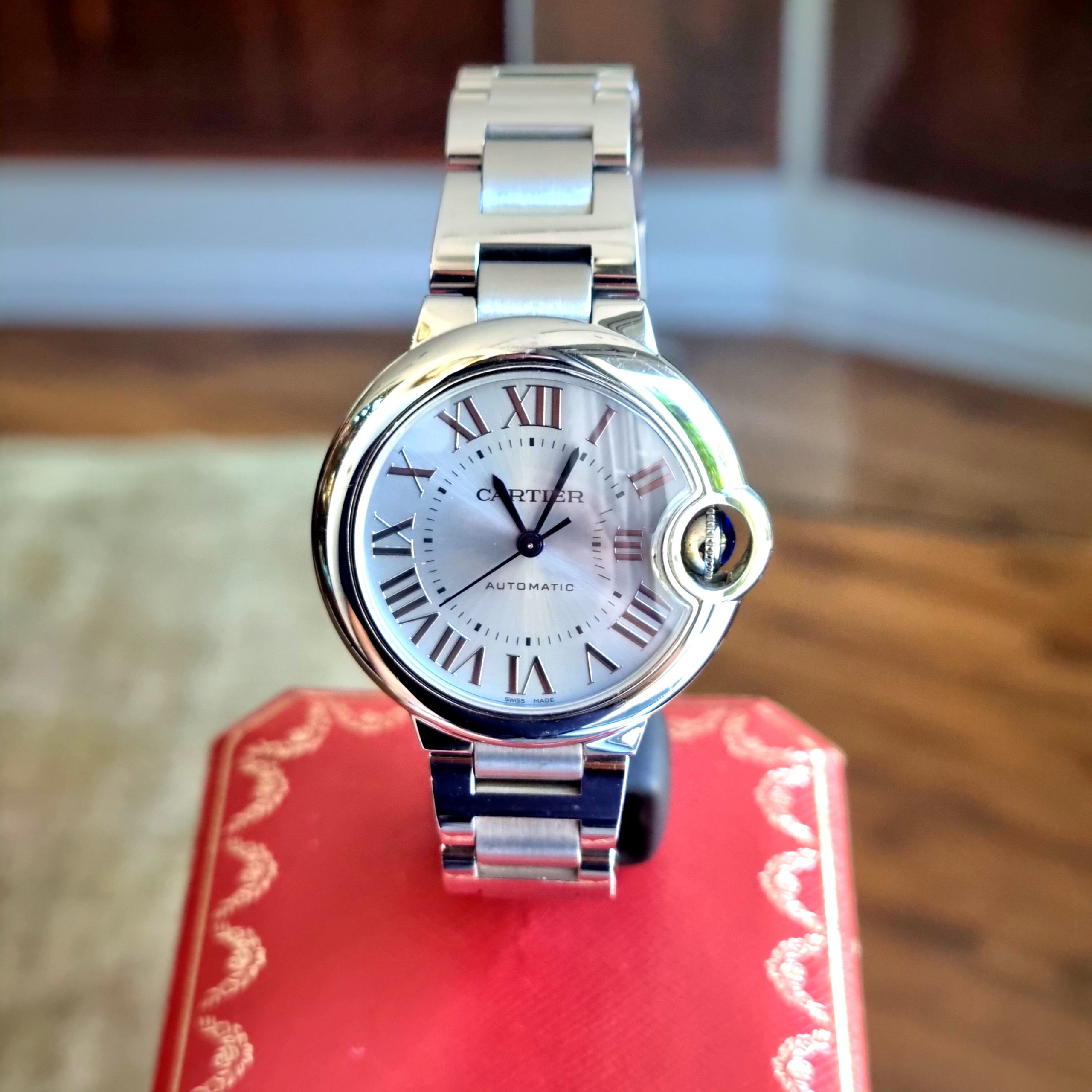 קרטייה בלון בלו 33ממ לוח מיוחד אייס-בלו מנגנון אוטומטי יד שנייה-2022 באחריות קרטייה, דגם.CRWSBB062