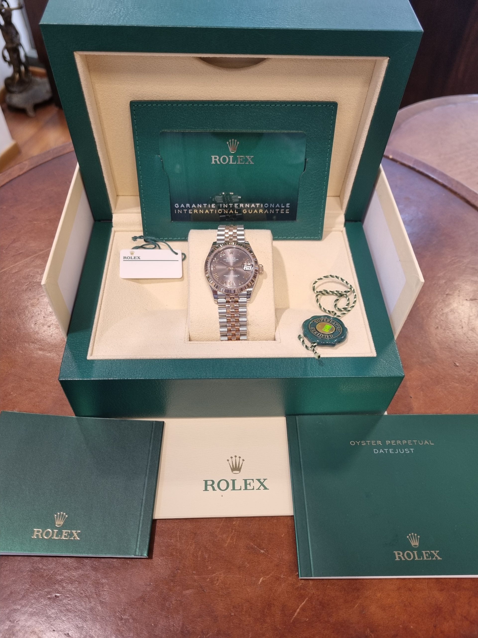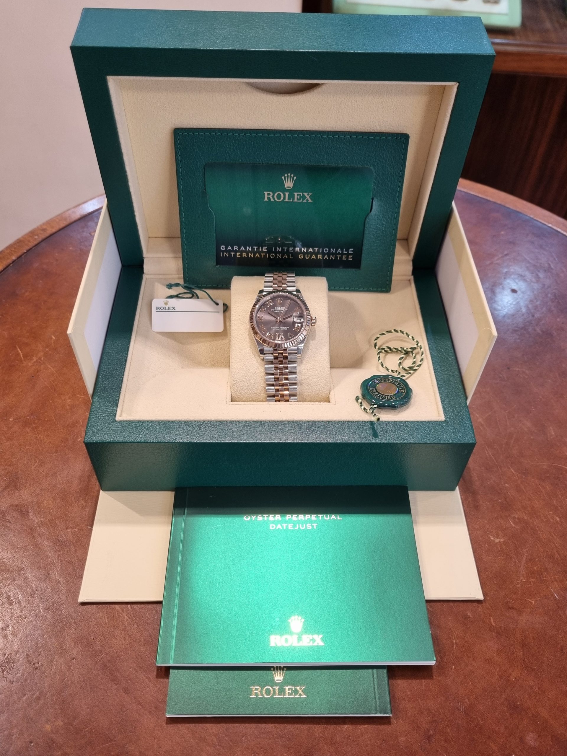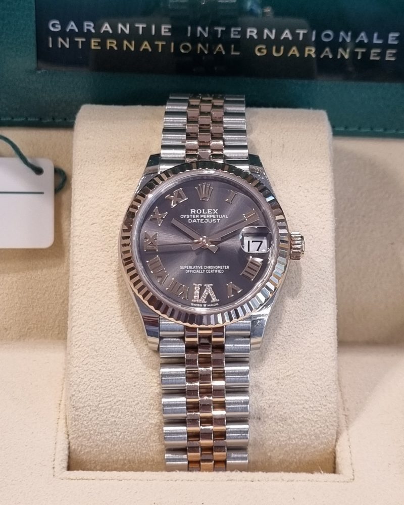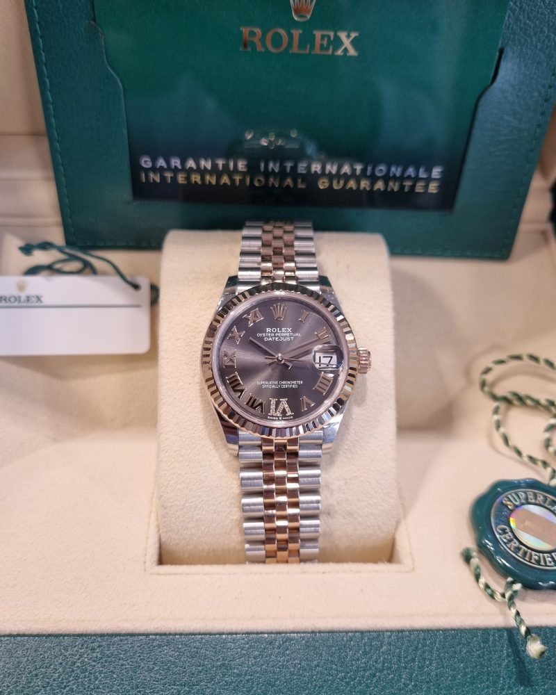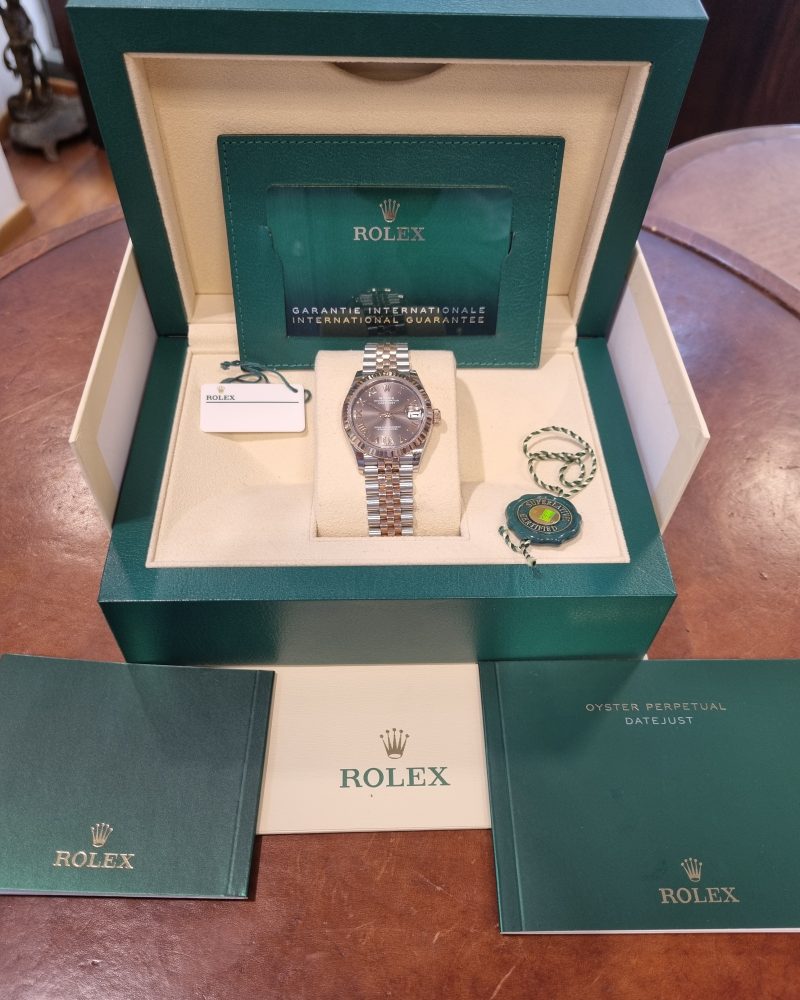 רולקס אויסטר פלדה וזהב ורוד 31מ"מ נשים לוח צדפה משובץ יהלומים, יד שנייה, דגם.278271 משנת 2021 באחריות רולקס עד -2026