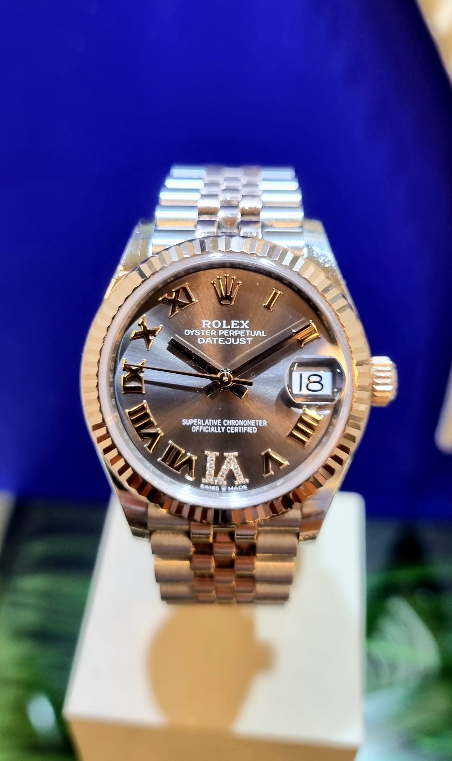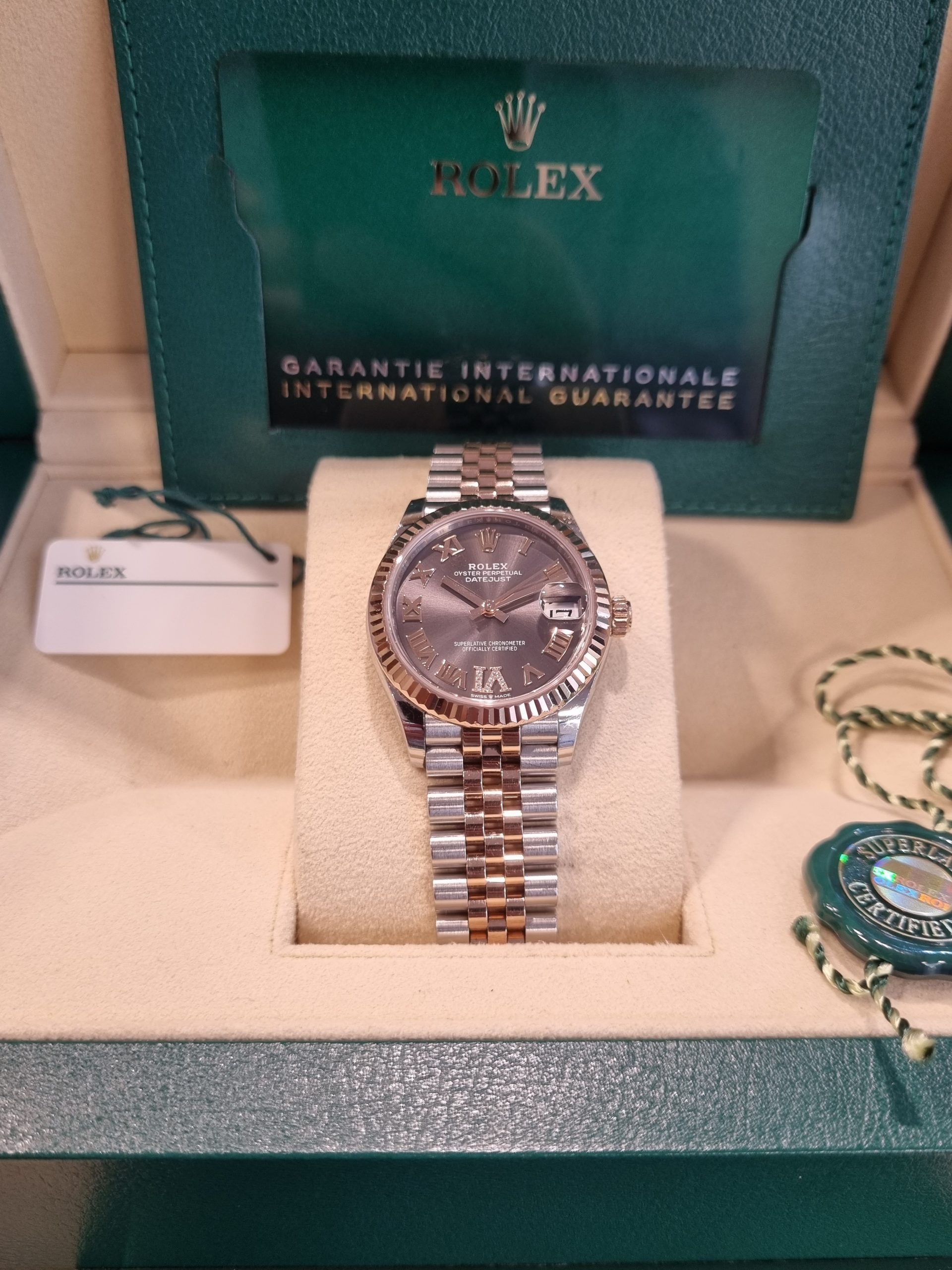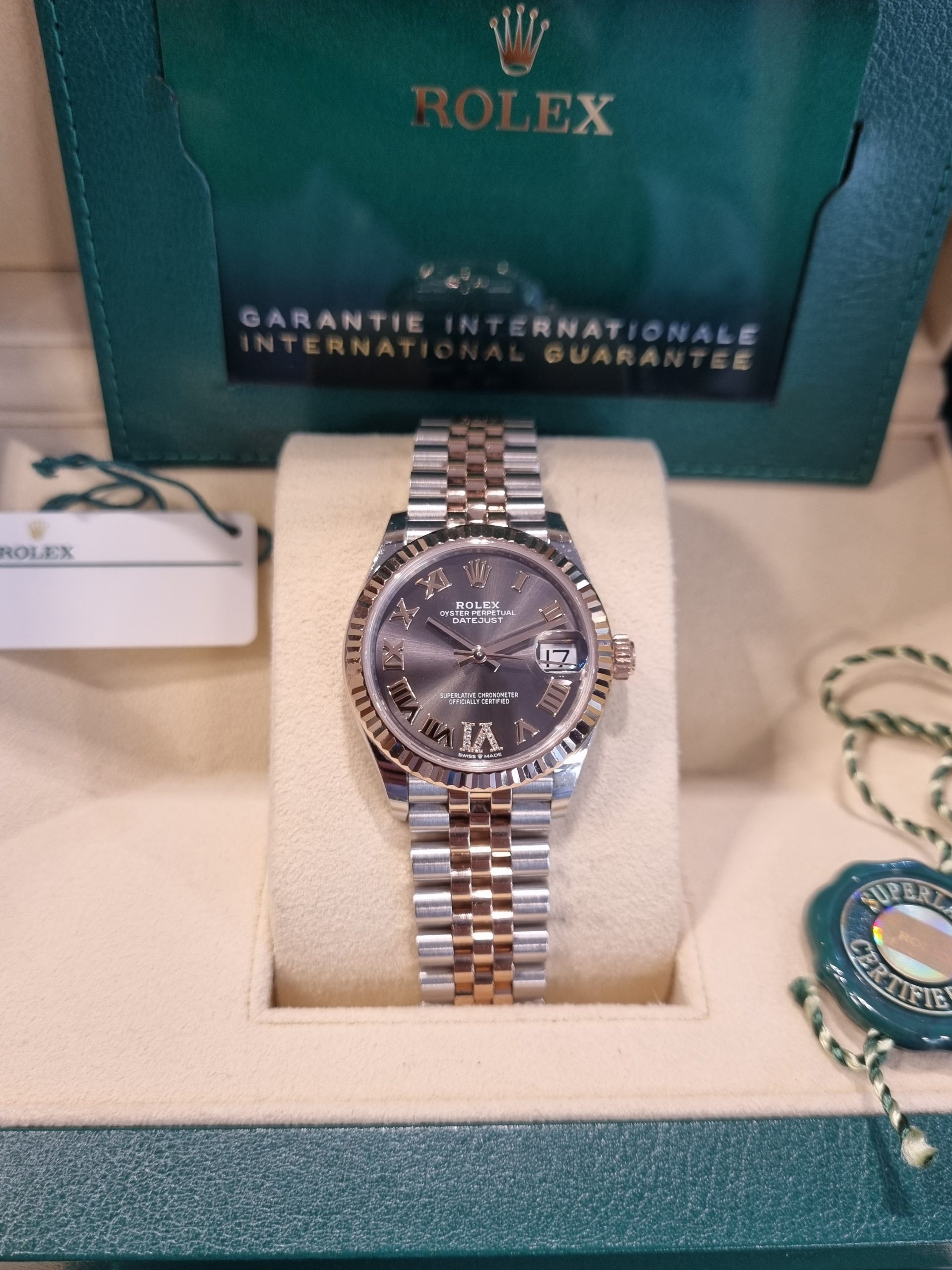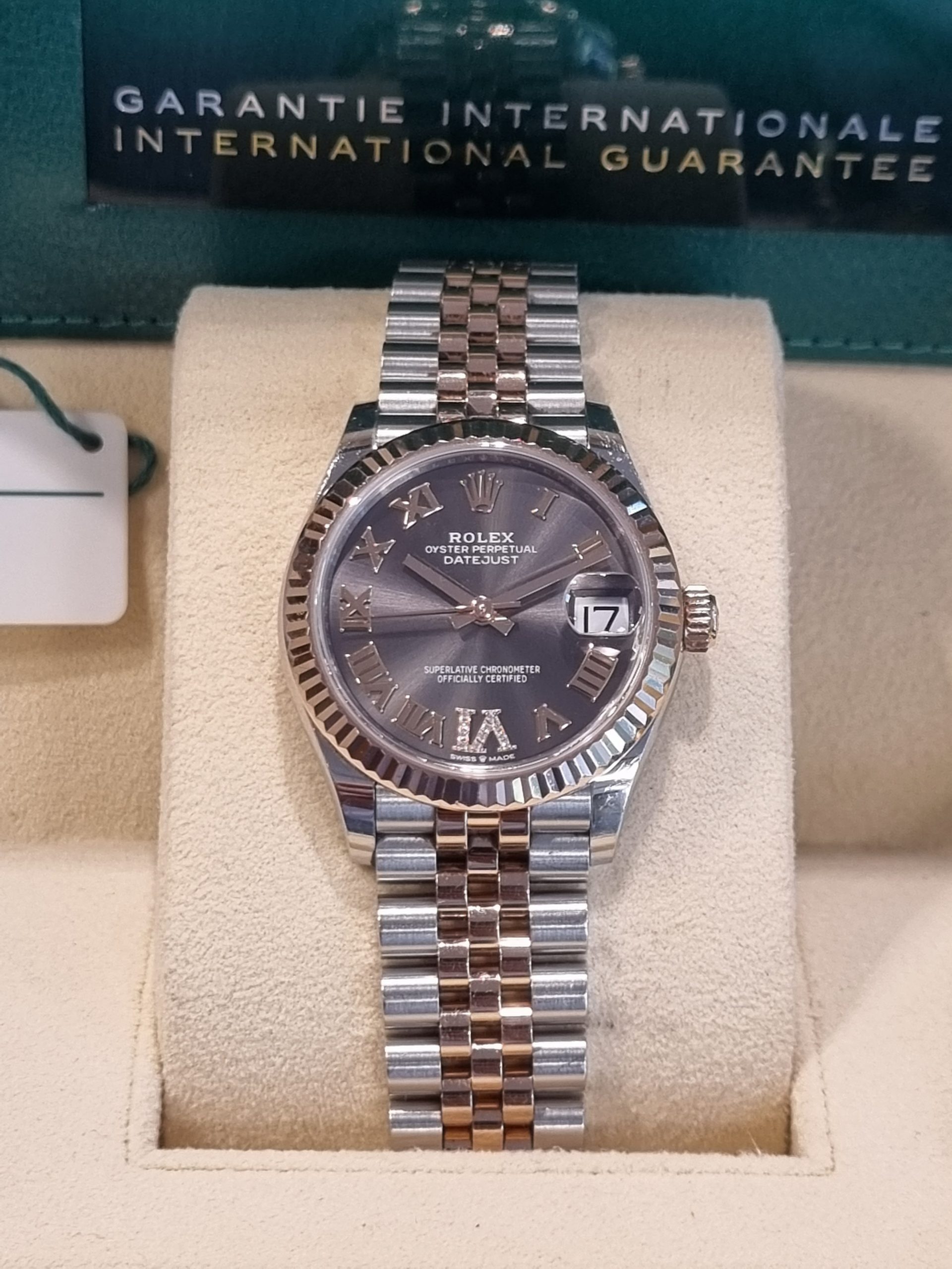 רולקס אויסטר פלדה וזהב ורוד 31מ"מ נשים לוח צדפה משובץ יהלומים