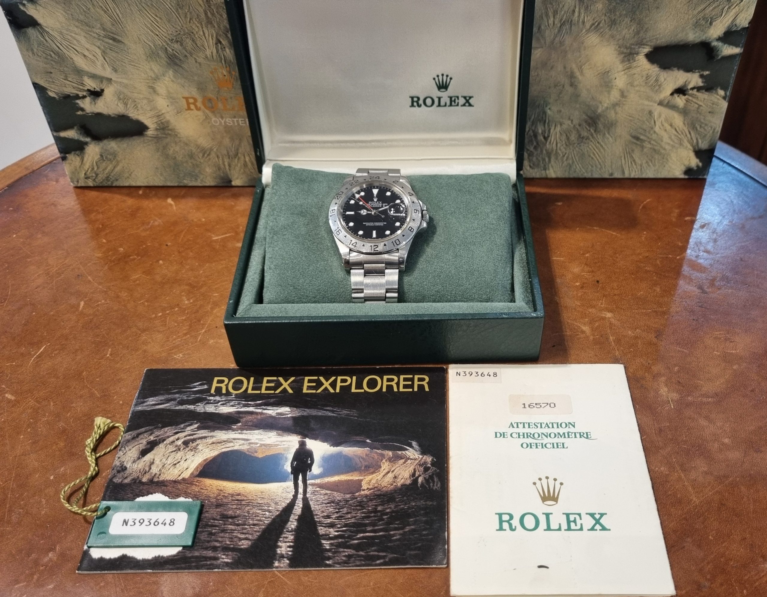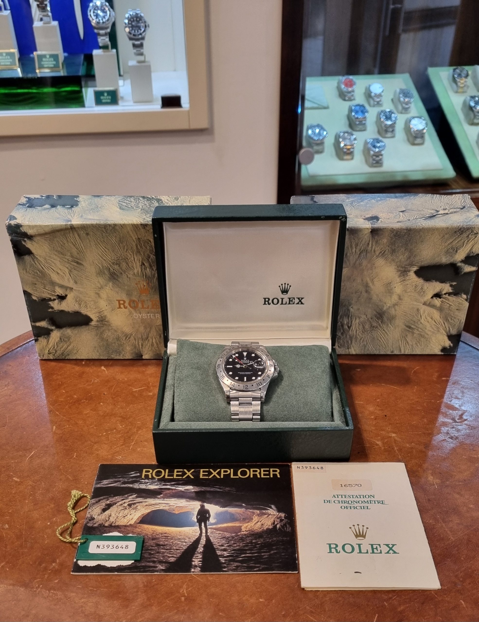 רולקס אקספלורר 2 יד שנייה שנת 1993 דגם.16570 סט מלא קופסא+תעודה+תג+ספרון