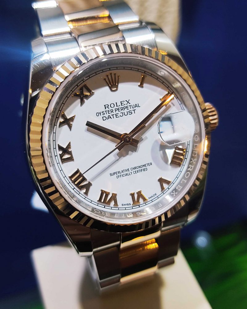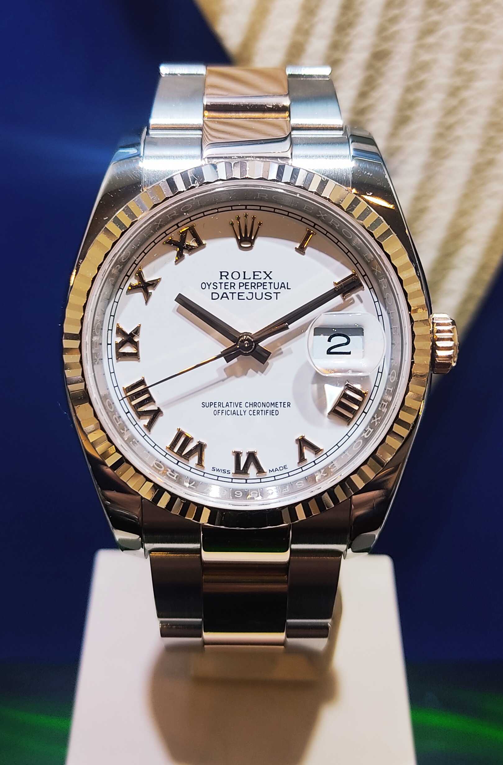 רולקס דייטג'אסט 36ממ באזל זהב לבן לוח כחול יד שנייה שנת 2012 דגם.116234