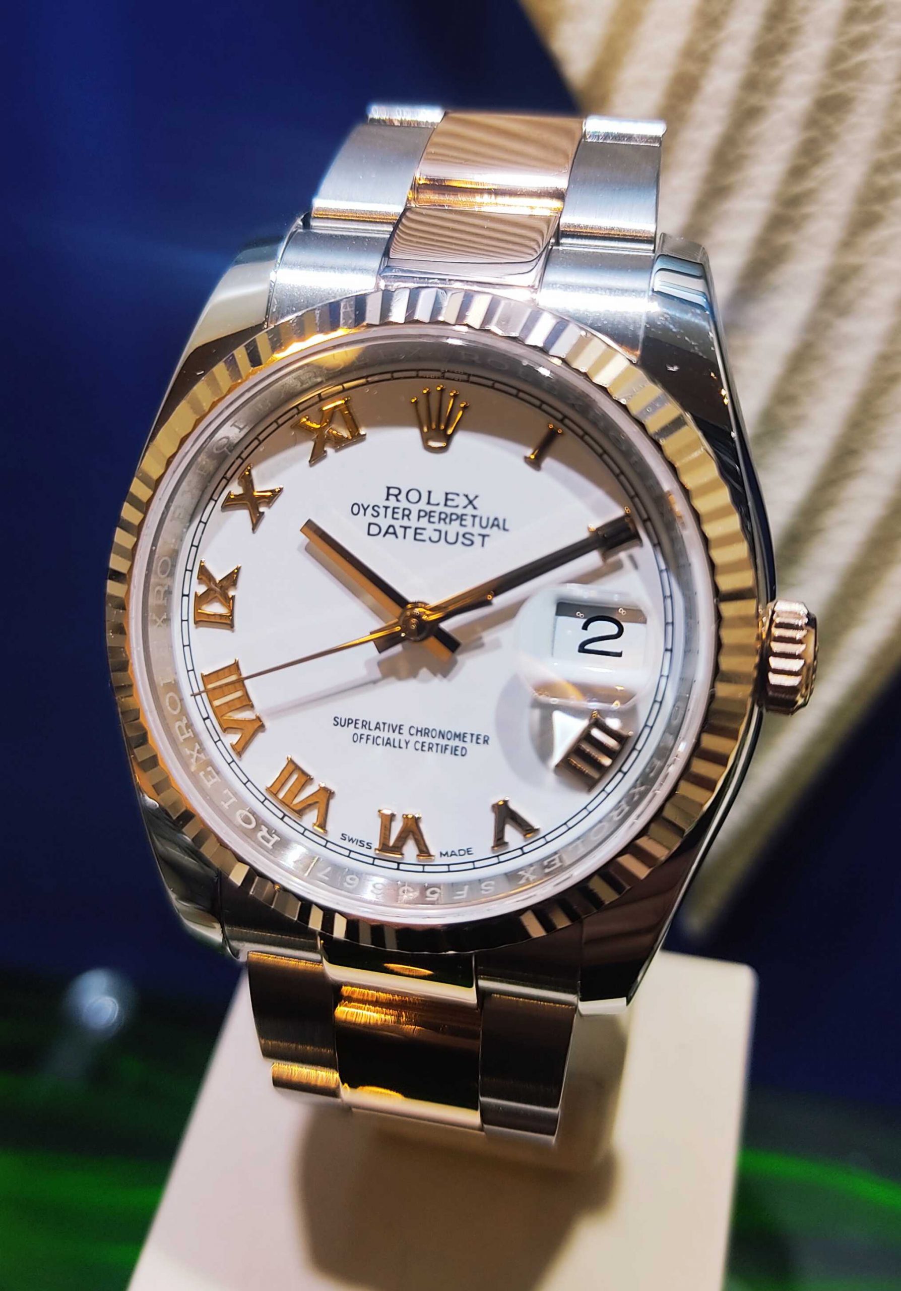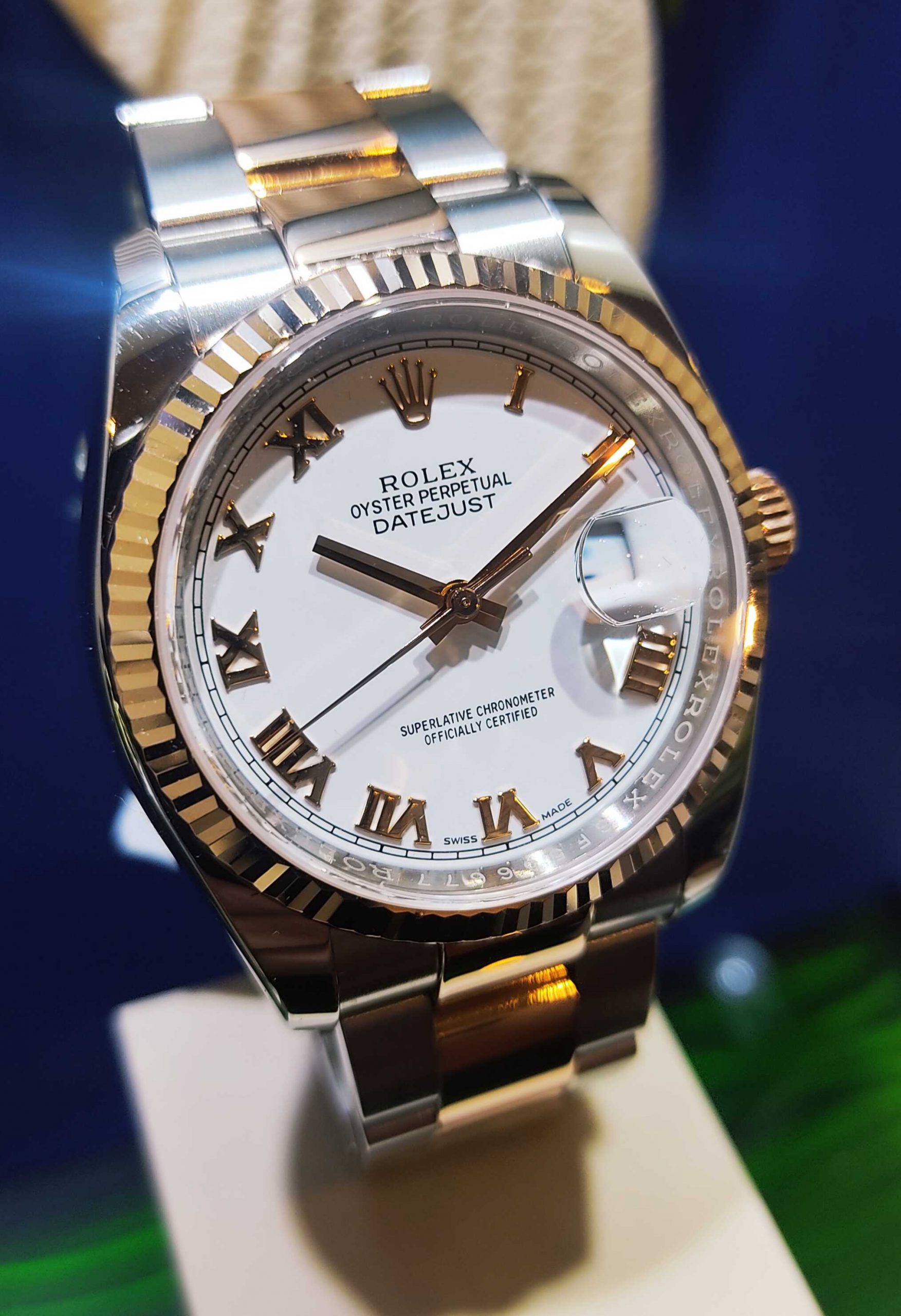 רולקס דיטג'אסט 36ממ פלדה משולב באזל זהב לבן לוח סילבר יהלומים יד שנייה שנת 2015 דגם.116234