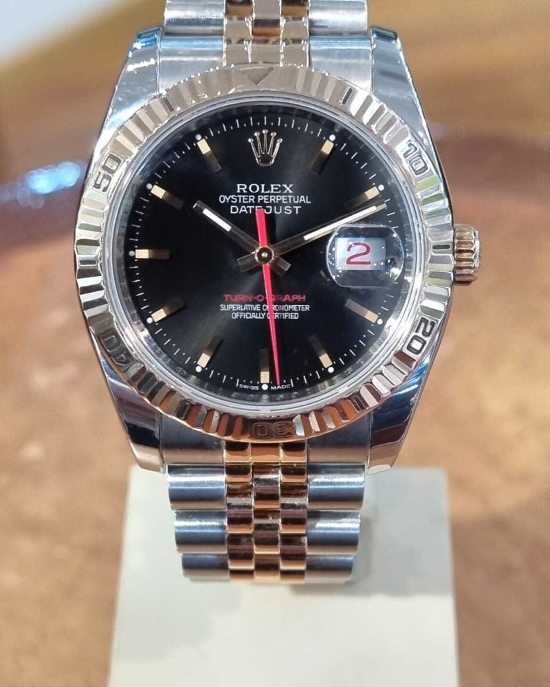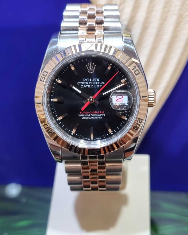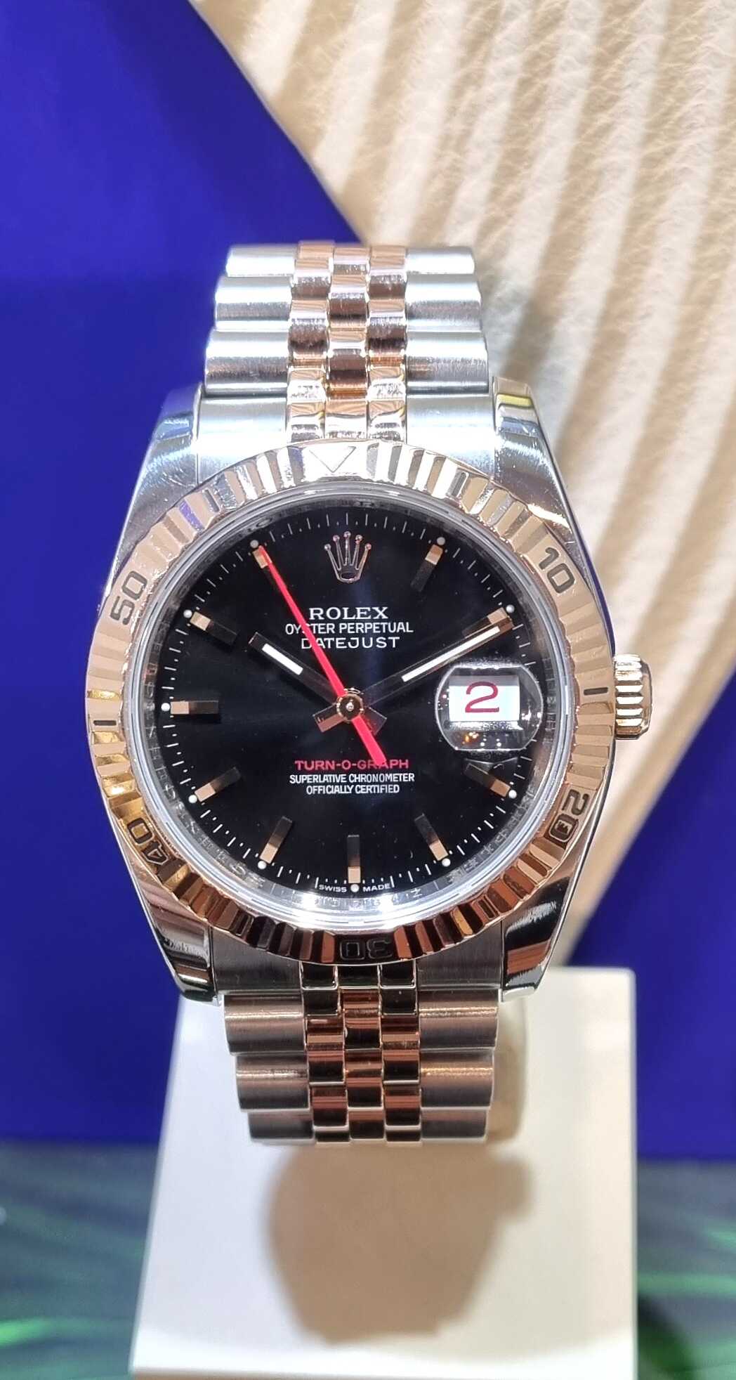 רולקס דייטגאסט 36ממ דגם "טרנוגרף" פלדה משולב רוז גולד