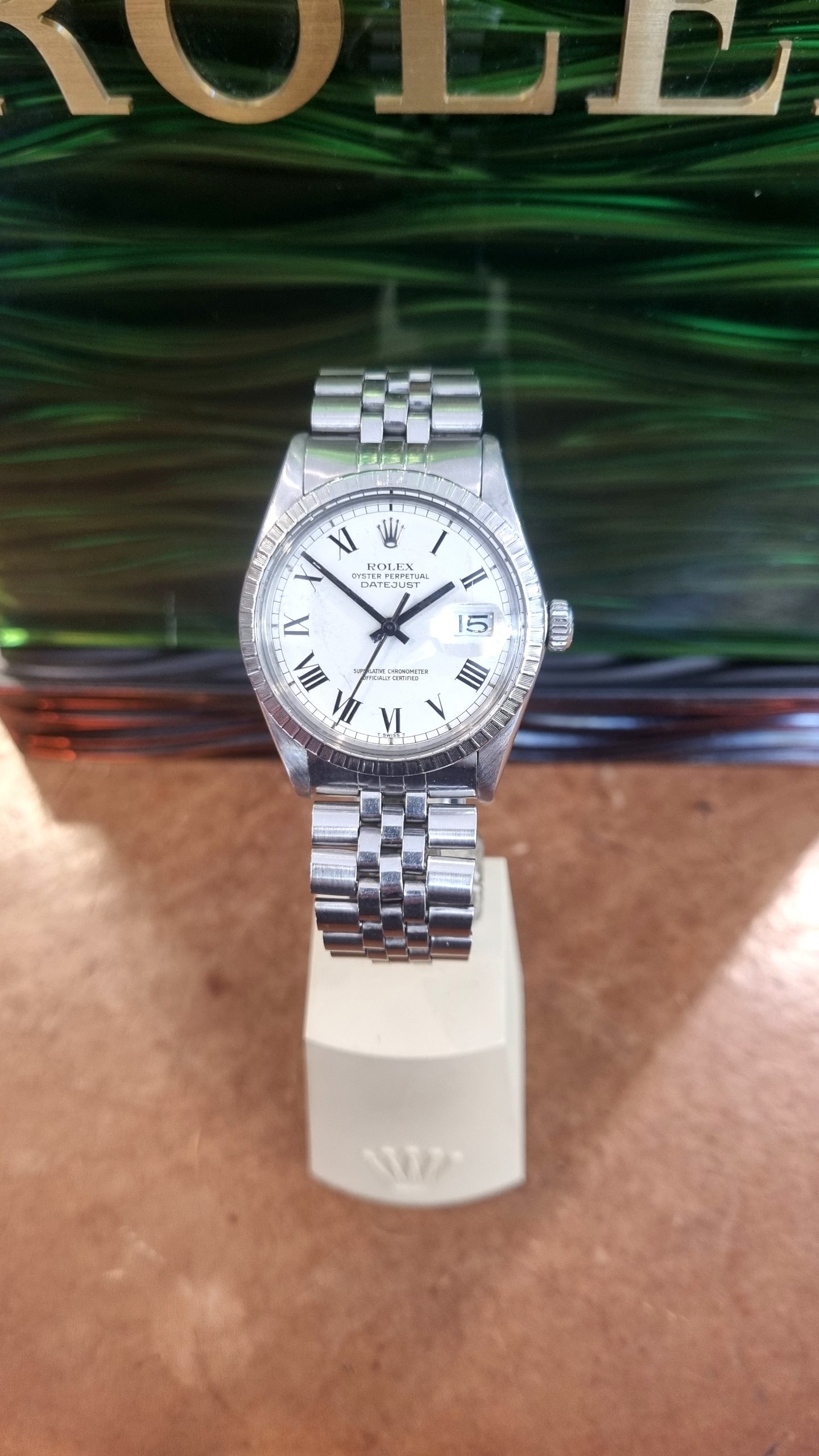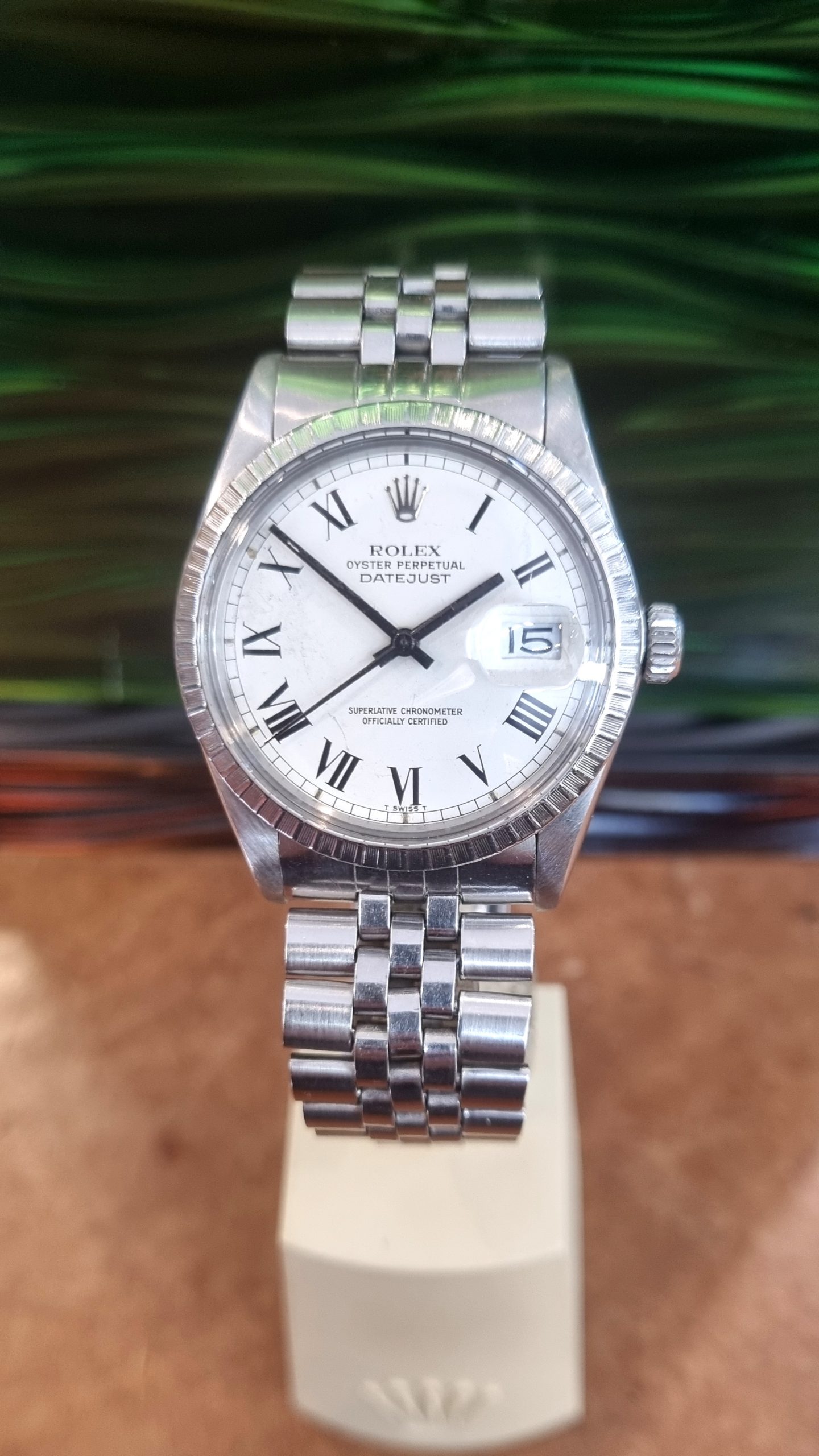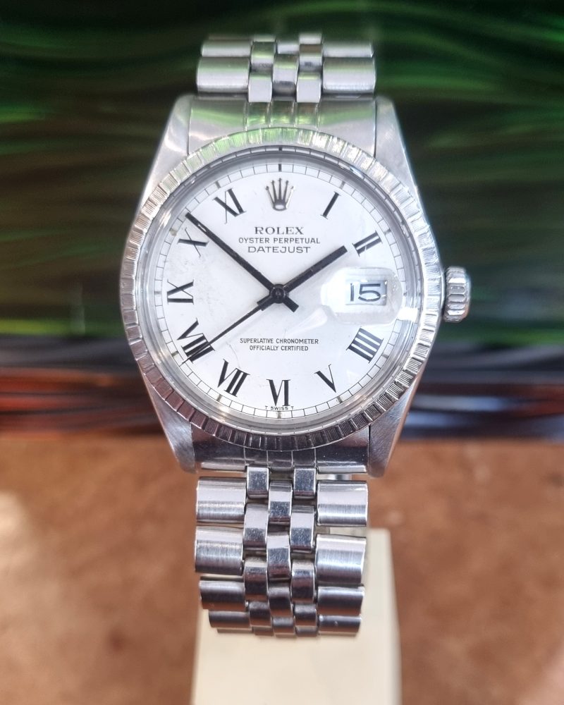 רולקס דייטג'אסט 36מ"מ לוח באקלי לבן ספרות רומיות דגם.16030, צמיד ג'ובילי, זכוכית פלקסי, וינטג'-אספנות