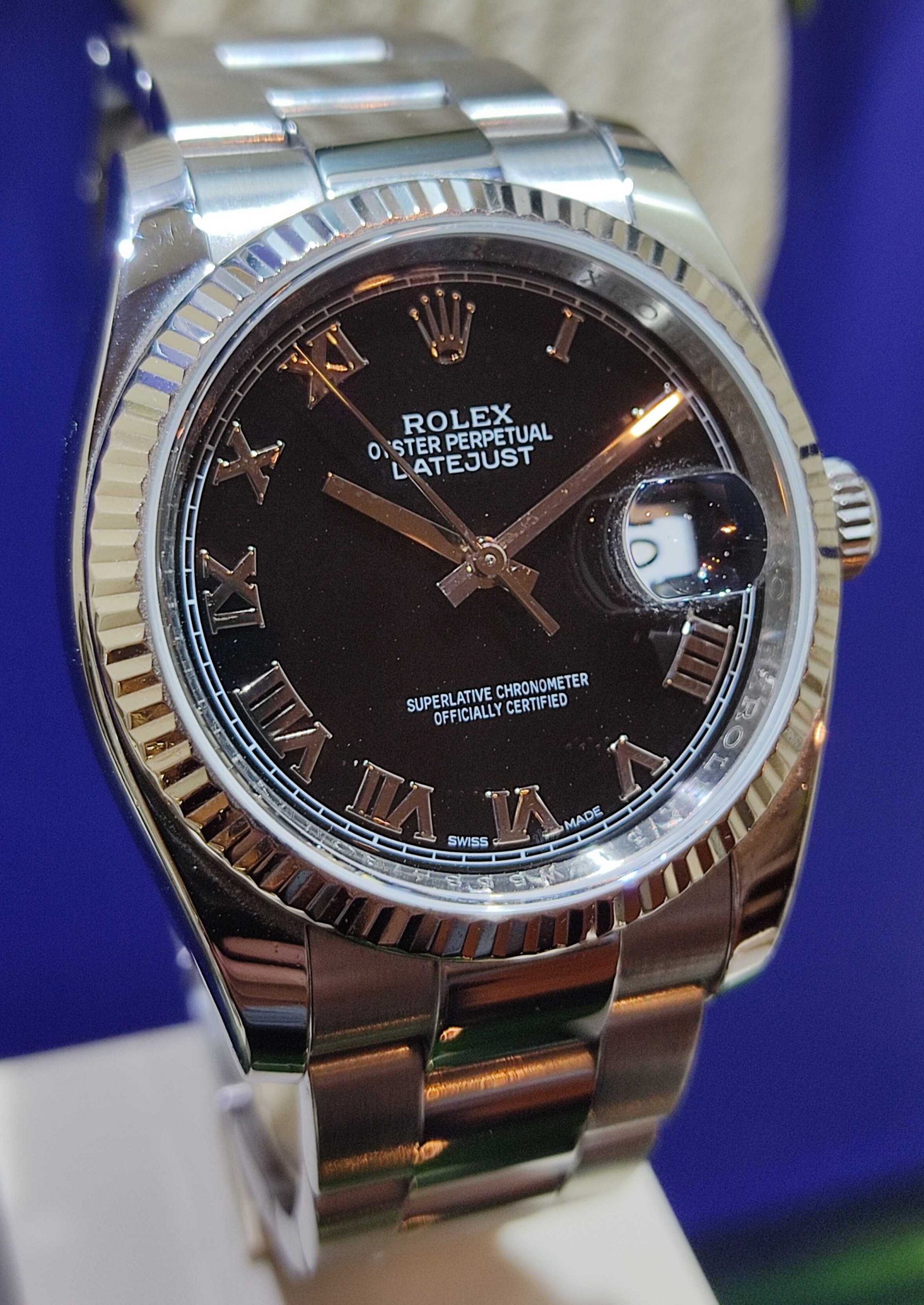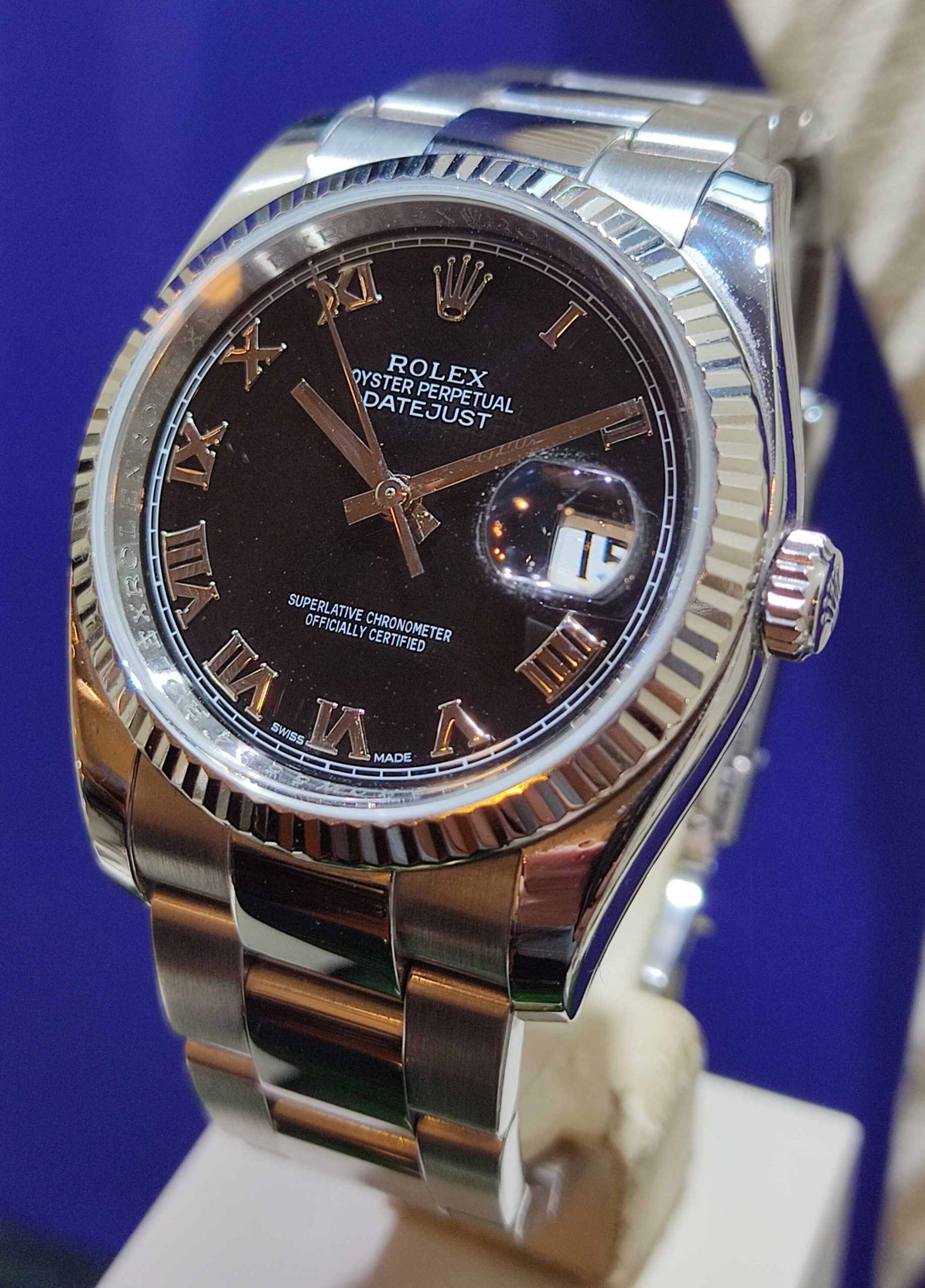 רולקס דייטג'אסט 36ממ פלדה משולב בזל זהב לבן 36מ"מ, דגם.116234 שנת 2017, צמיד גובילי, מצב מצויין