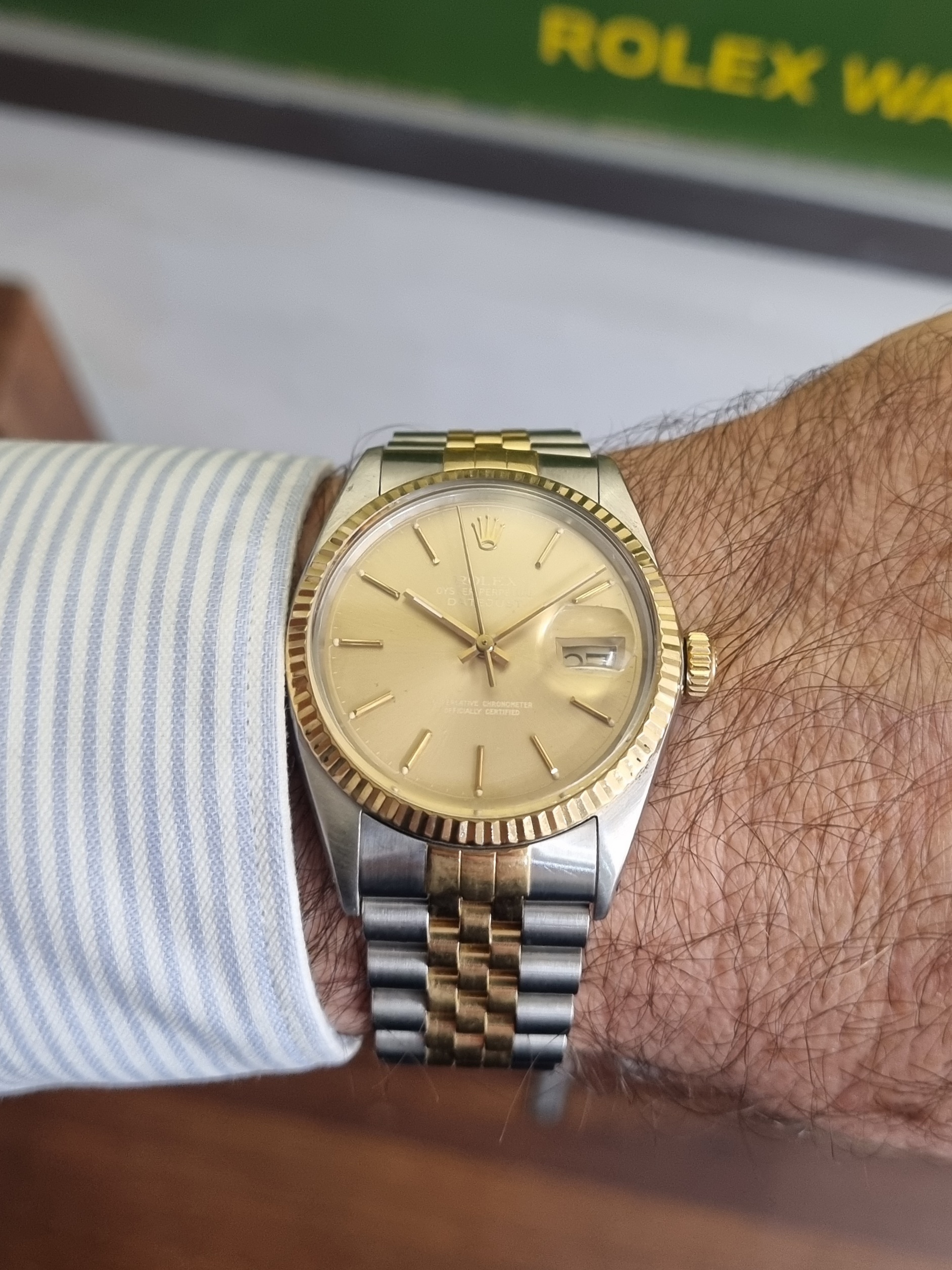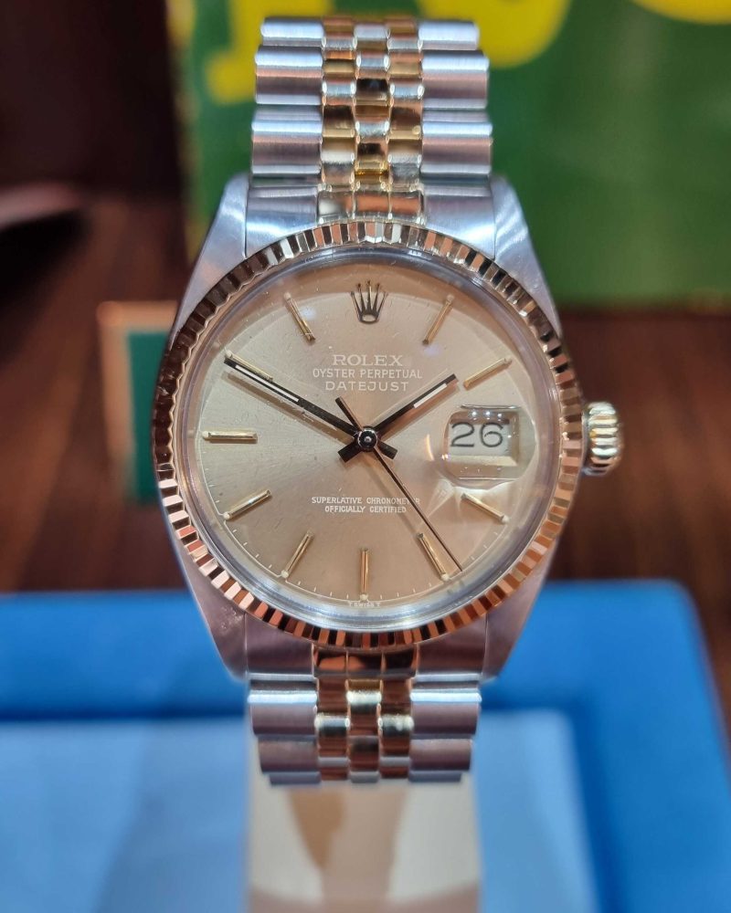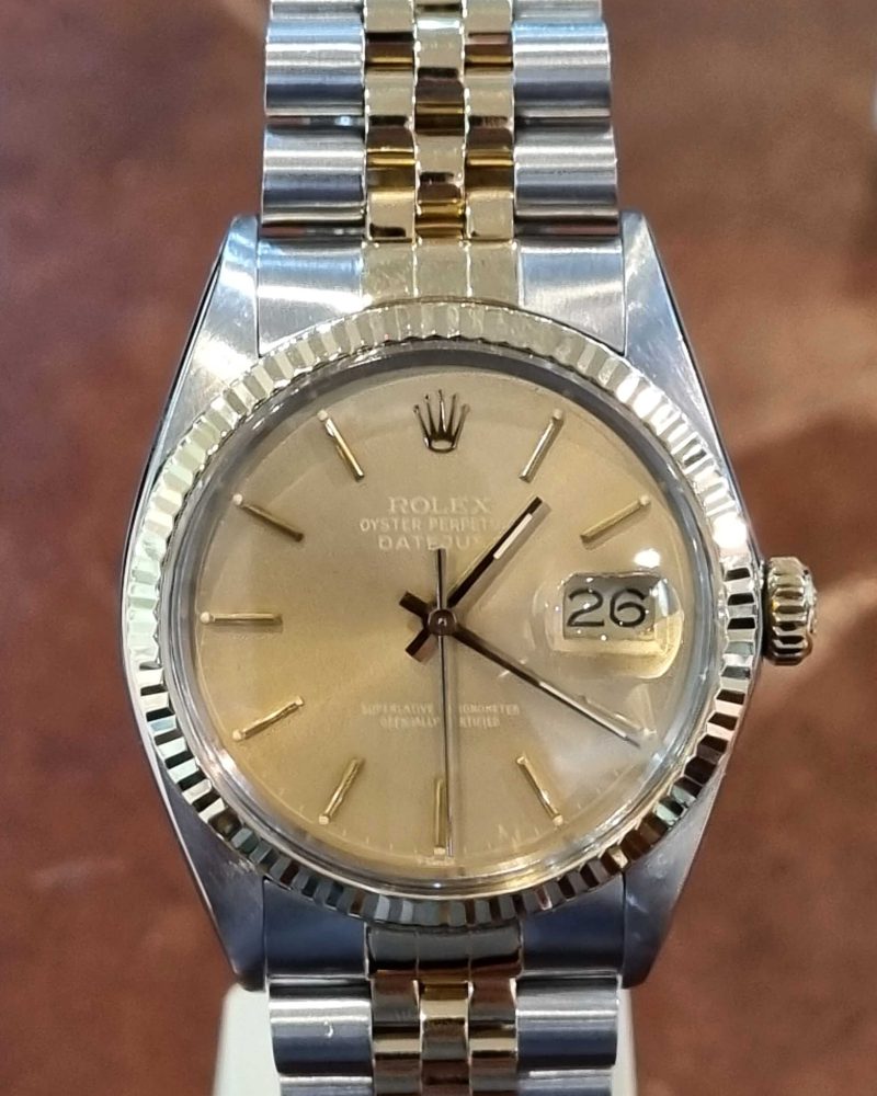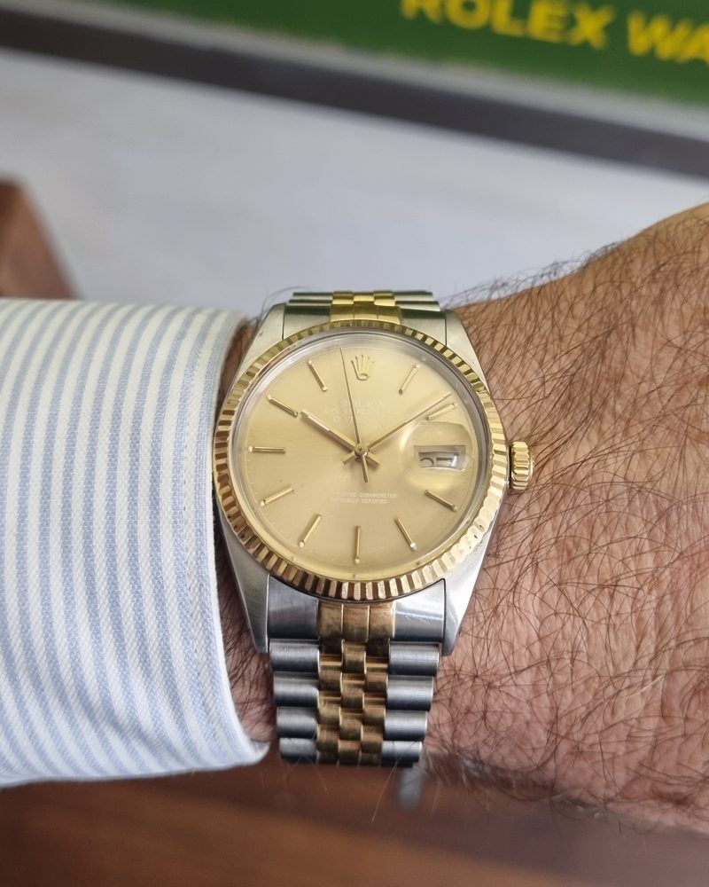 רולקס דייטג'אסט 36מ"מ פלדה משולב זהב צהוב 18 קראט וינטג' יד שנייה-1987 לוח צבע מוקה/שמנת דגם.16013