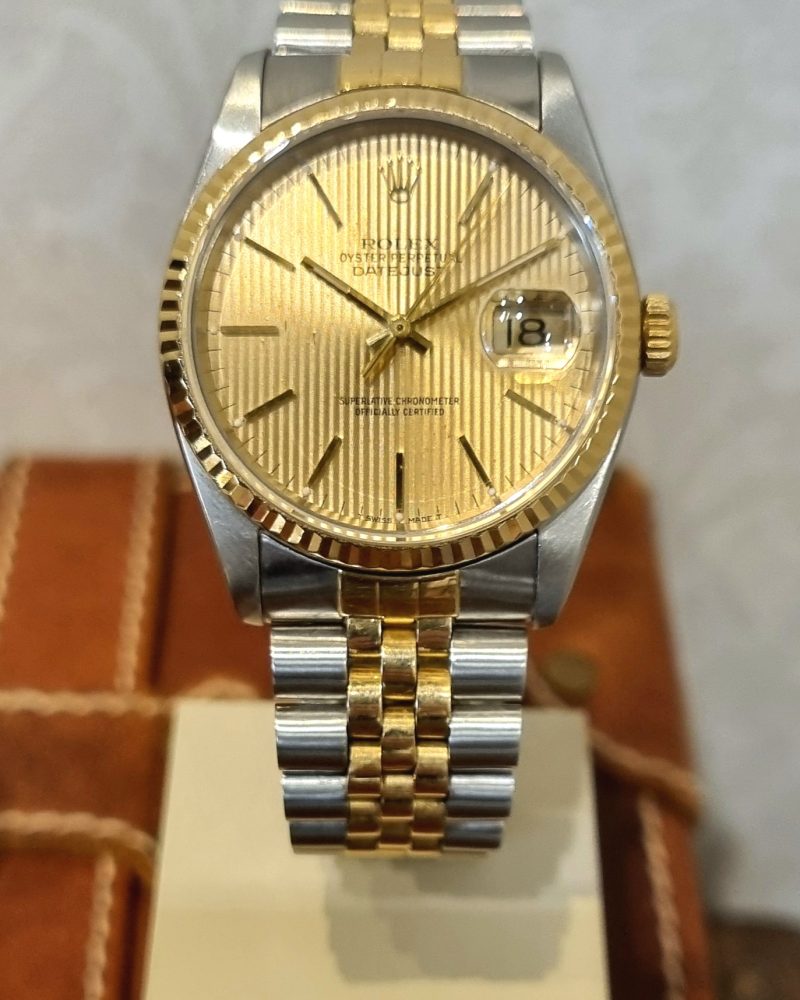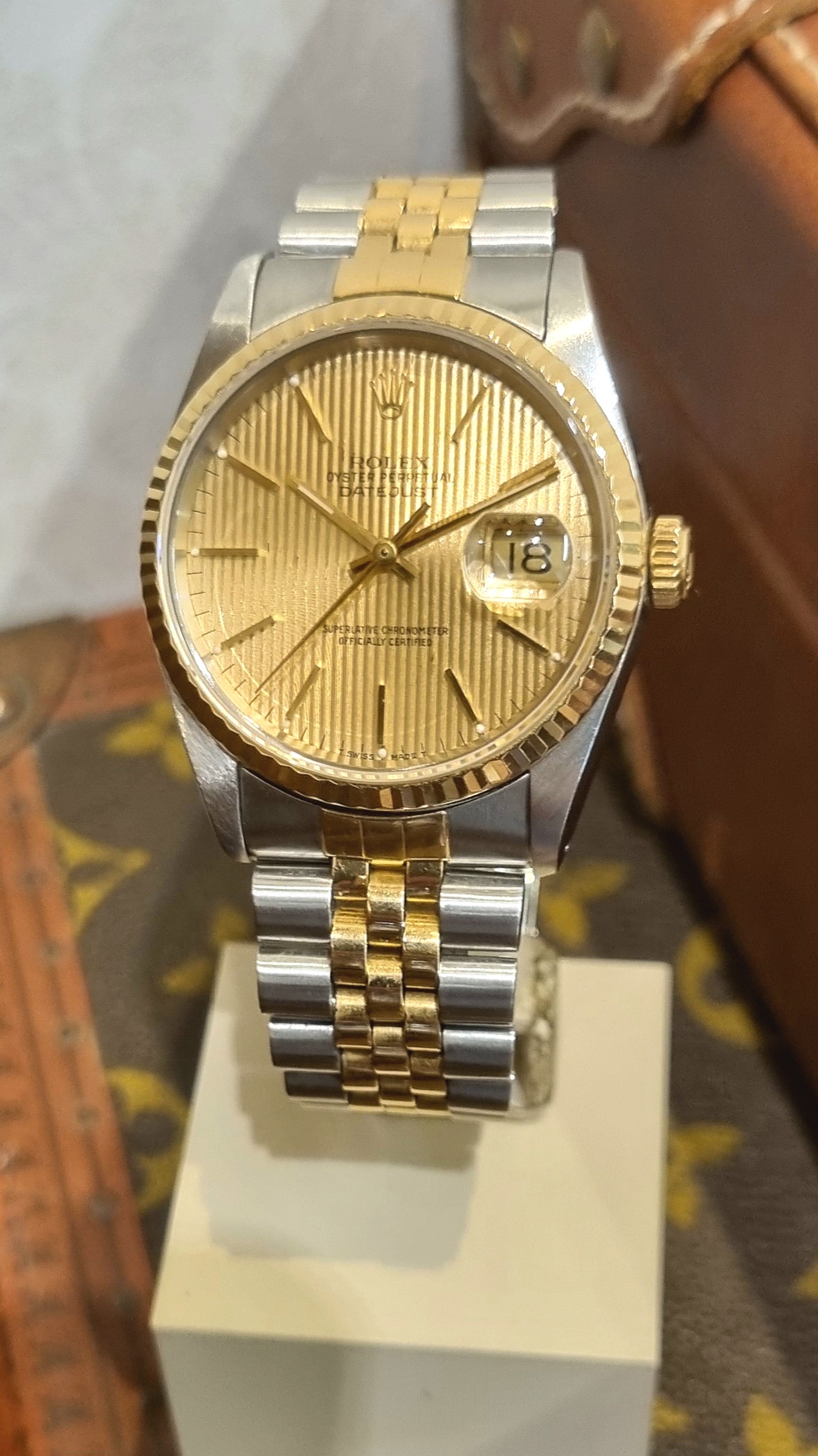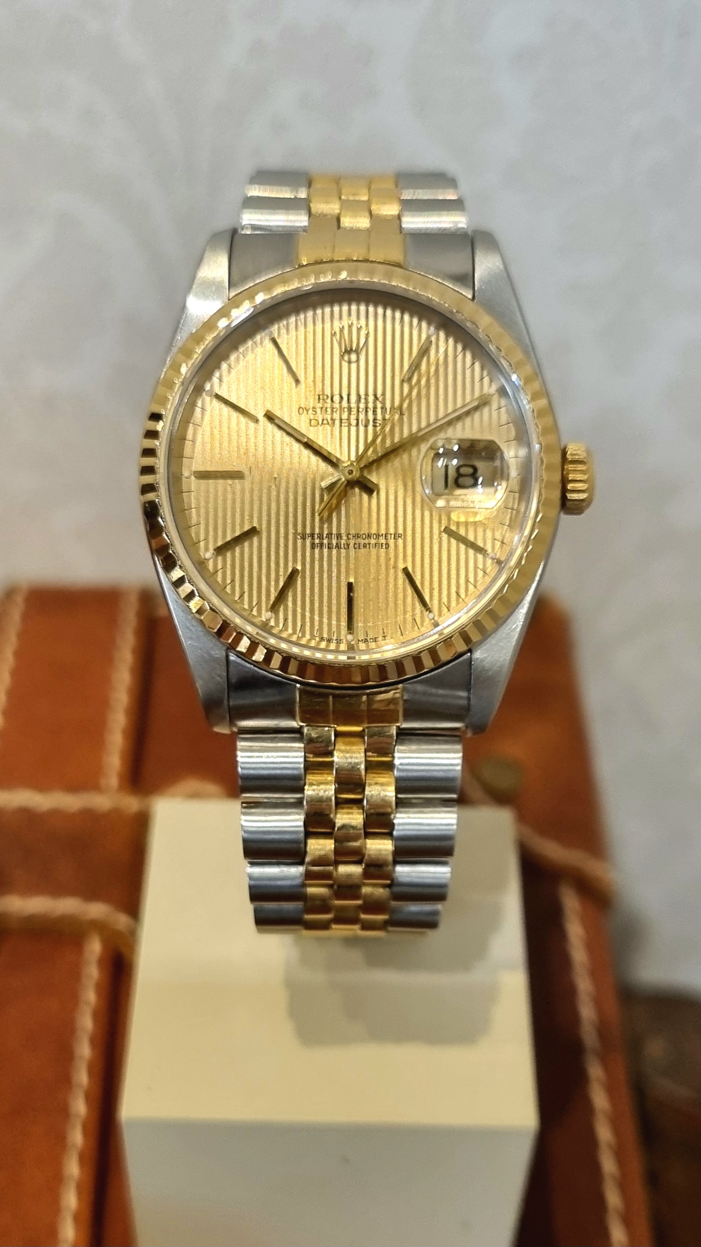 רולקס דייטג'אסט 36ממ פלדה עם זהב צהוב 18 קראט צמיד ג'ובילי, יד שנייה דגם.16233 משנת 1991