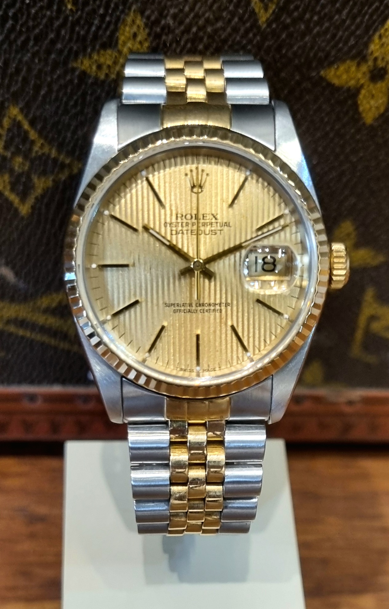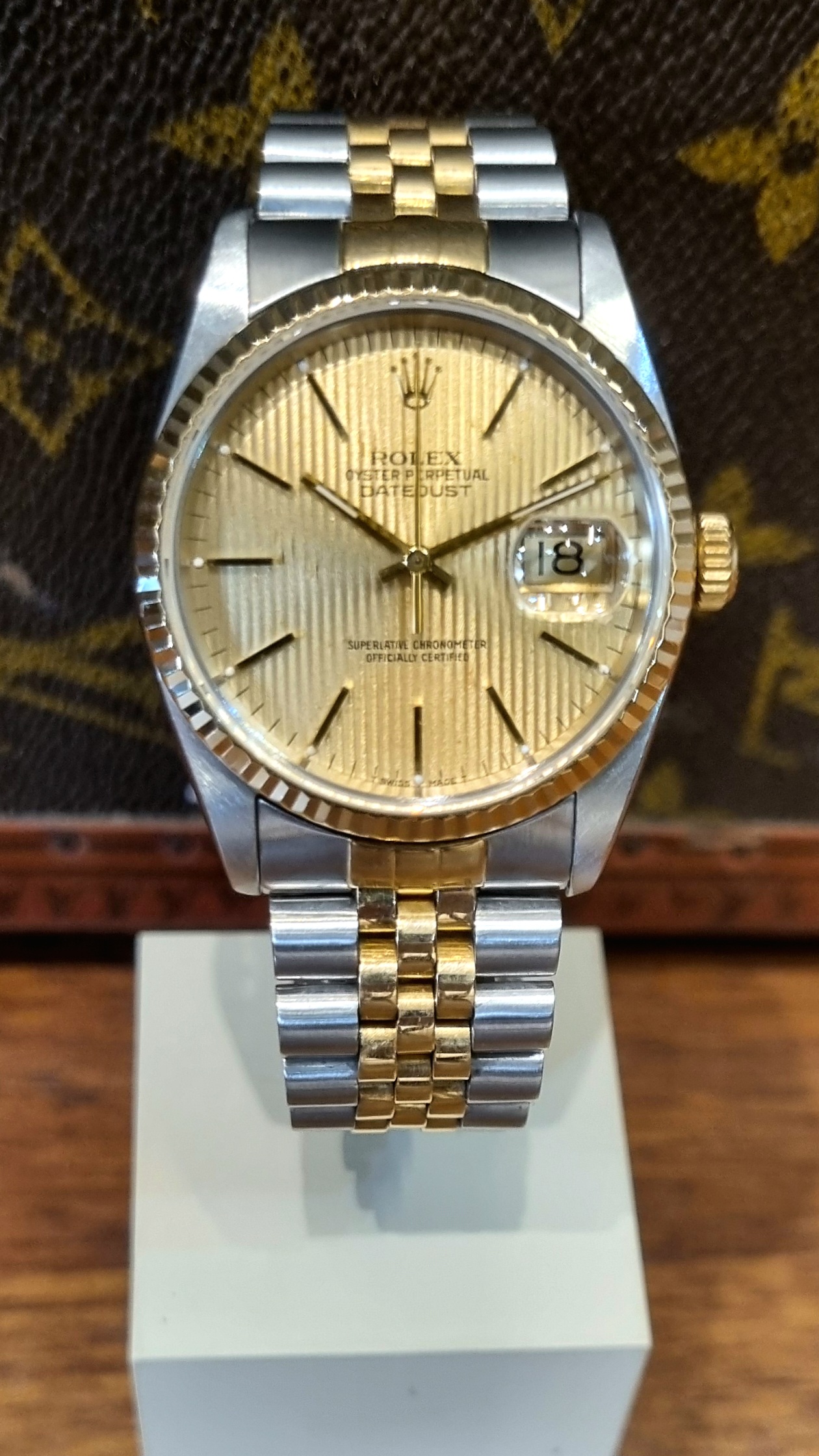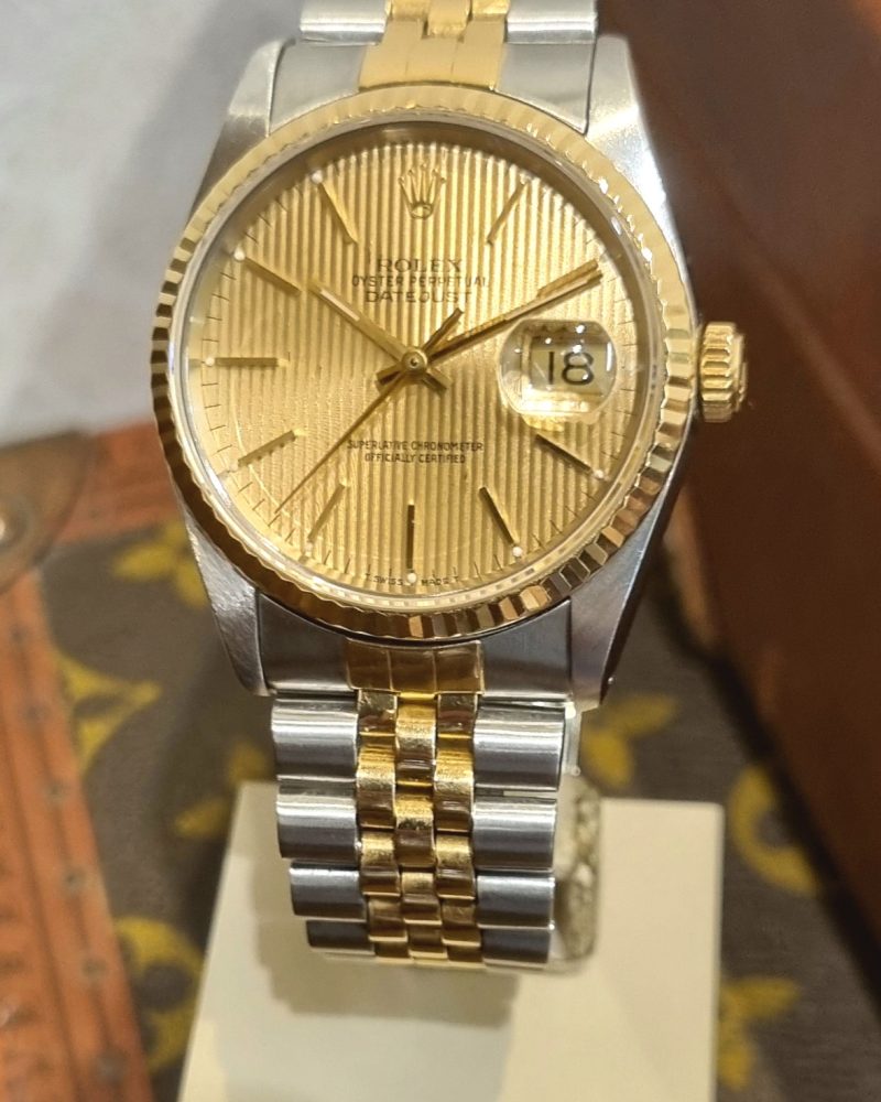 רולקס דייטג'אסט 36ממ פלדה עם זהב צהוב 18 קראט צמיד ג'ובילי, יד שנייה דגם.16233 משנת 1991