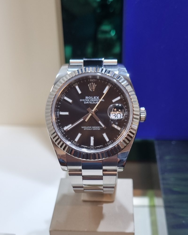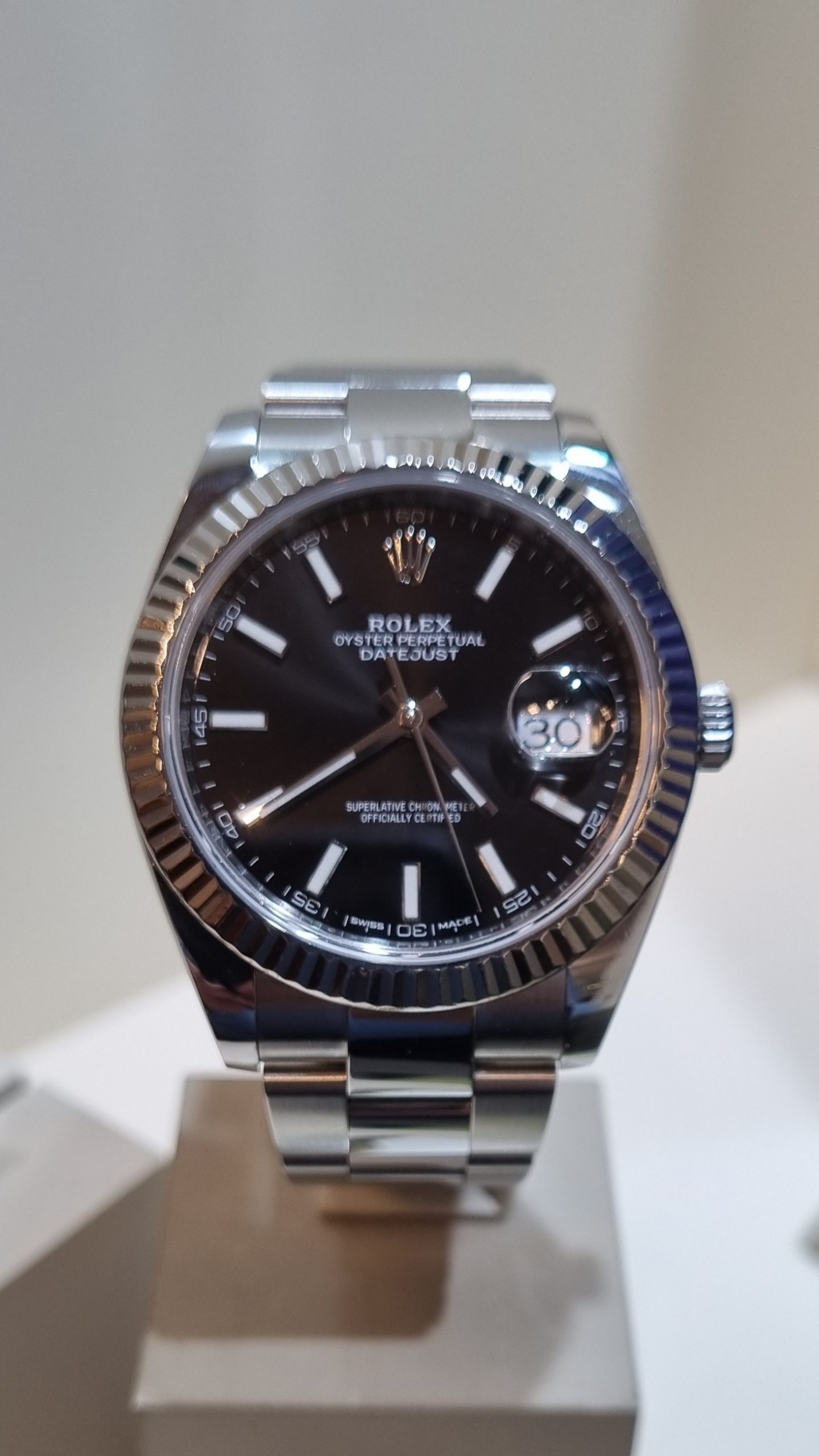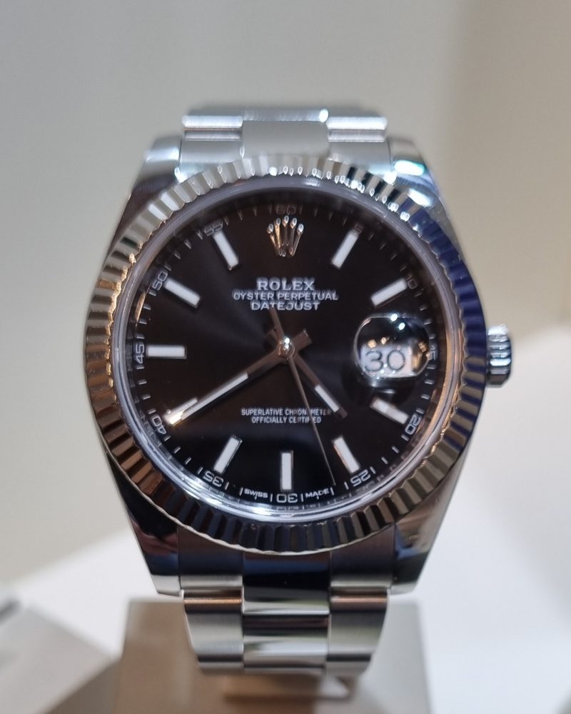 רולקס דייטג'אסט 41ממ פלדה משולב בזל זהב לבן צמיד אויסטר יד שנייה שנת 2017 עם שנתיים אחריות דגם.126334 לוח שחור