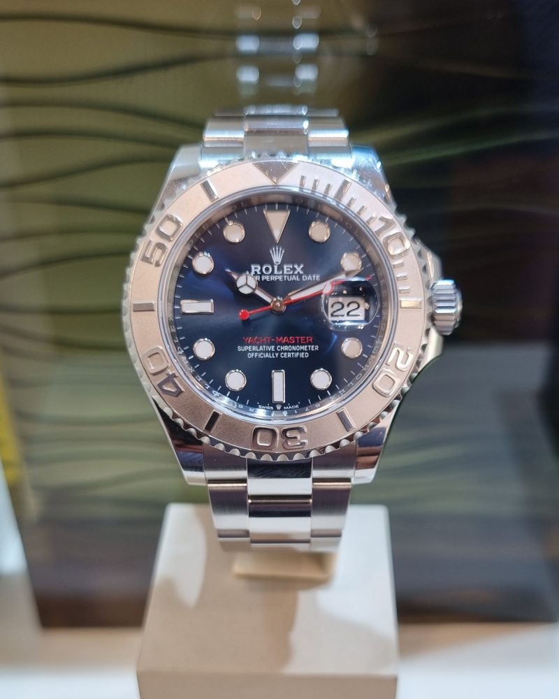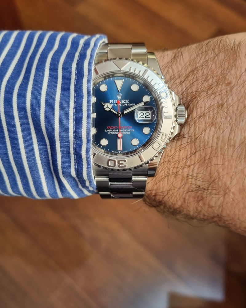 רולקס יאכט-מאסטר פלטינום לוח כחול דגם.126622, יד שנייה-שנת 2022 אחריות רולקס עד 2027