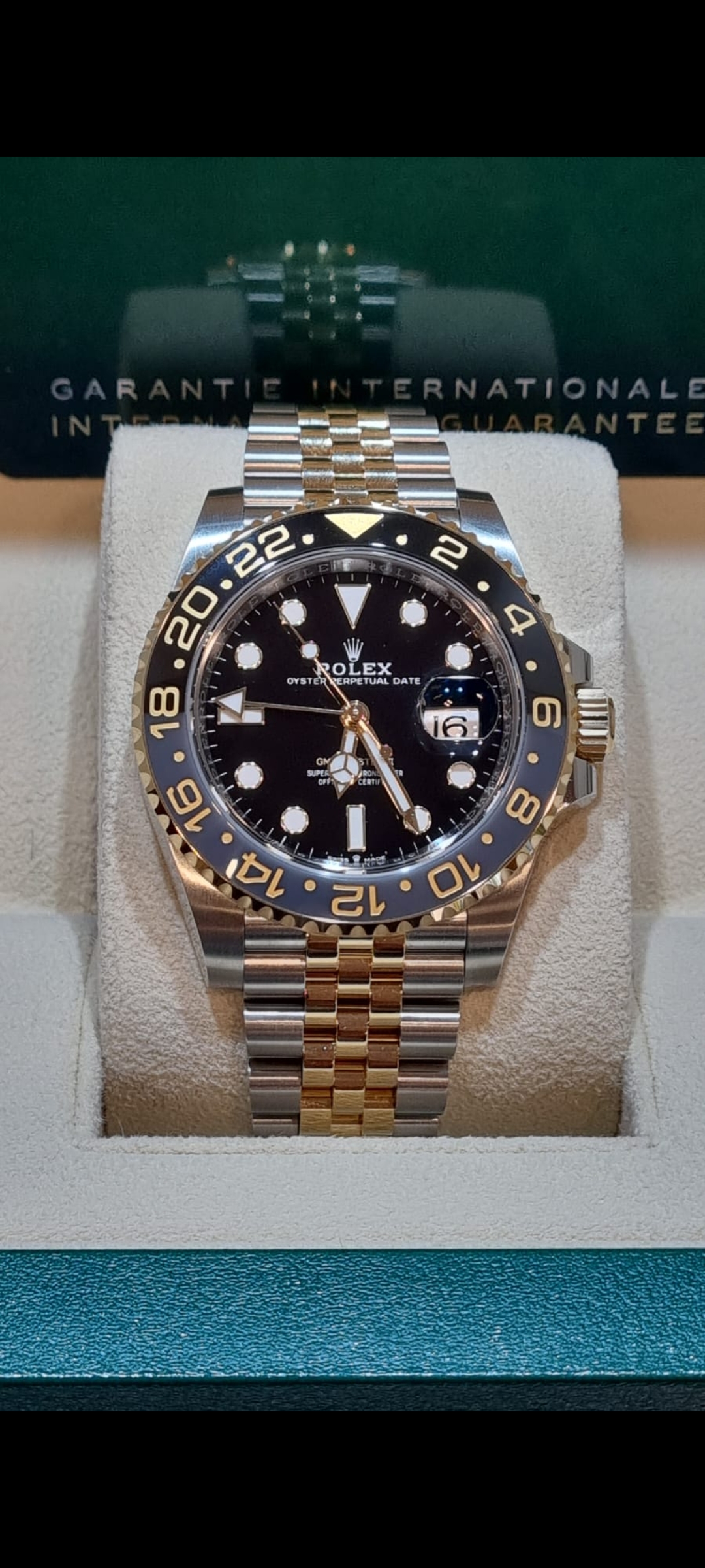 רולקס GMT מאסטר II, , יד שנייה שנת 2023 באחריות רולקס עד 2028 אויסטר פלדה עם זהב צהוב 18 קראט, דגם.126713, 40ממ