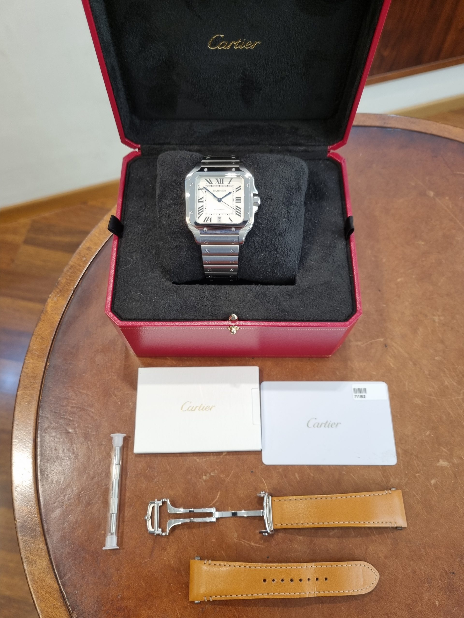 קרטיה סנטוס לארג חדש 2024!! דגם.wssa0018, פלדה, אוטומטי, מגיע עם רצועת מתכת ורצועת עור חומה עם פטנט ניתנת להחלפה קלה