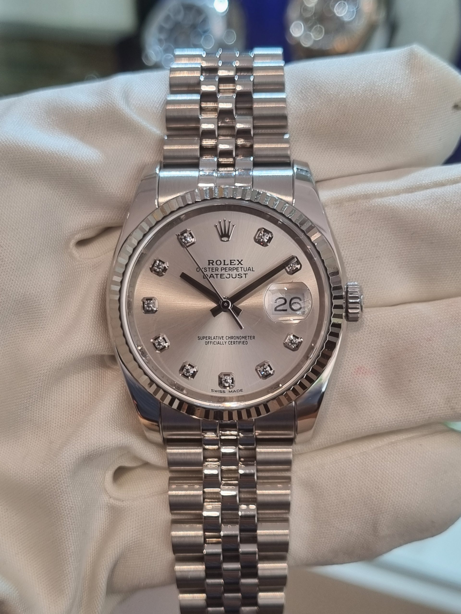 רולקס דיטג'אסט 36ממ פלדה משולב באזל זהב לבן לוח סילבר יהלומים יד שנייה שנת 2015 דגם.116234₪38,500.00לברר לגבי שעון זה: כמות של רולקס דיטג'אסט 36ממ פלדה משולב באזל זהב לבן לוח סילבר יהלומים יד שנייה שנת 2015 דגם.116234 הוספה לסל הוסף לרשימת המשאלות Inquire about this watch דרך וואטסאפ קטגוריות: דייטג'אסט, רולקס תגיות: Rolex Ladies, רולקס 36ממ, רולקס יד שנייה - רולקס יד 2, רולקס יוניסקס, רולקס נשים, רולקס פלדה, שעוני יהלומים, שעונים חדשים בחנות, שעונים יד 2 לשתף שעון זה תיאור תיאור יד שנייה 2015 דגם.116234 36ממ לוח יהלומים בזל זהב לבן צמיד ג'ובילי