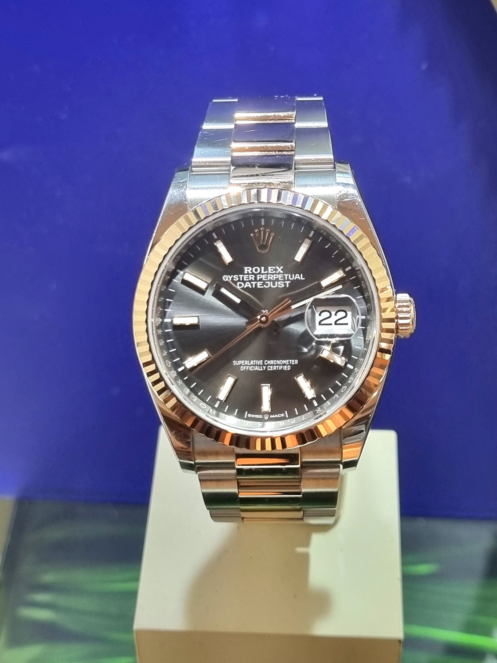 רולקס דיייטג'אסט פלדה משולב זהב ורוד 36מ"מ לוח צפחה אפור יד שנייה- 2019 דגם.126231