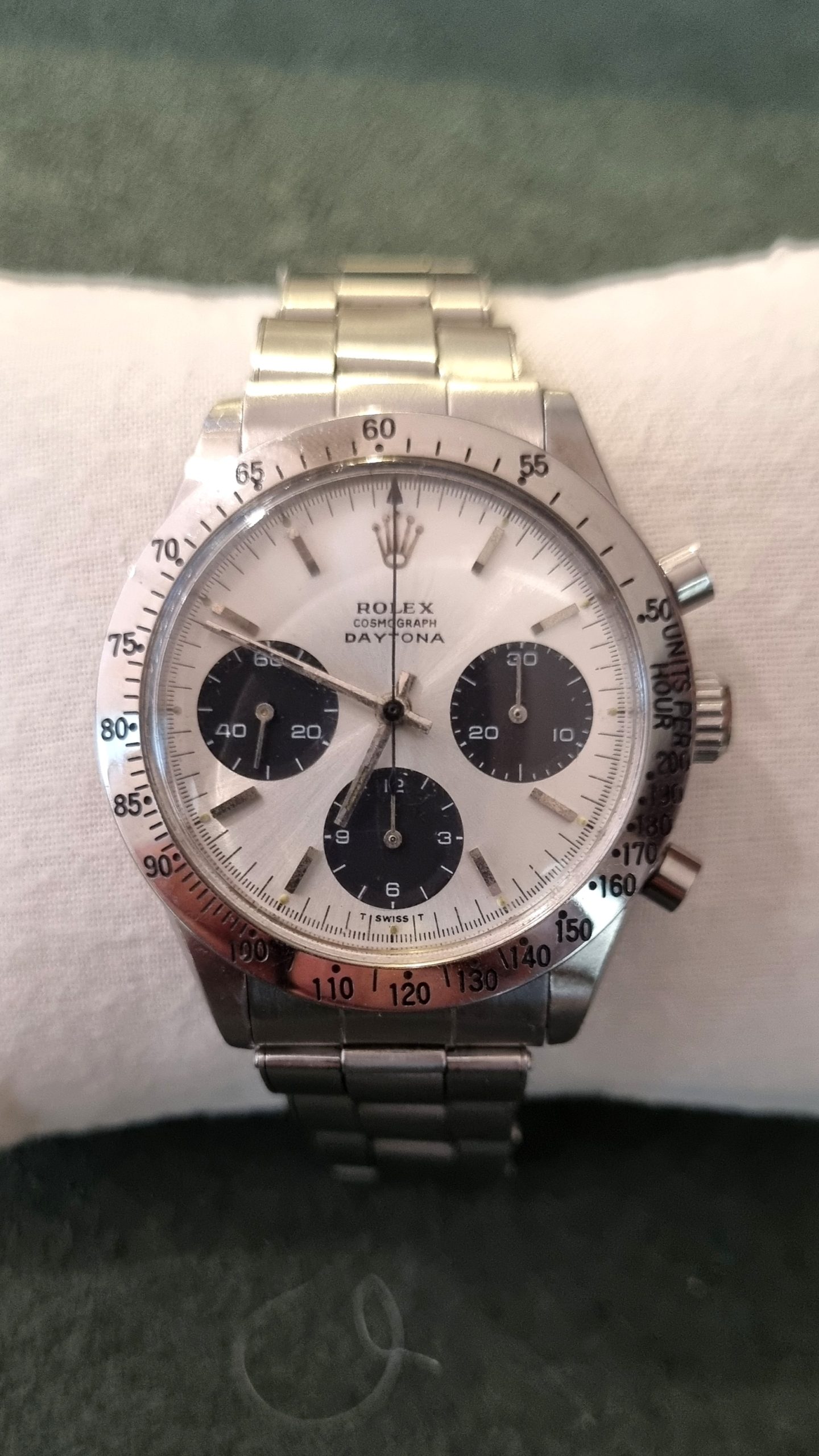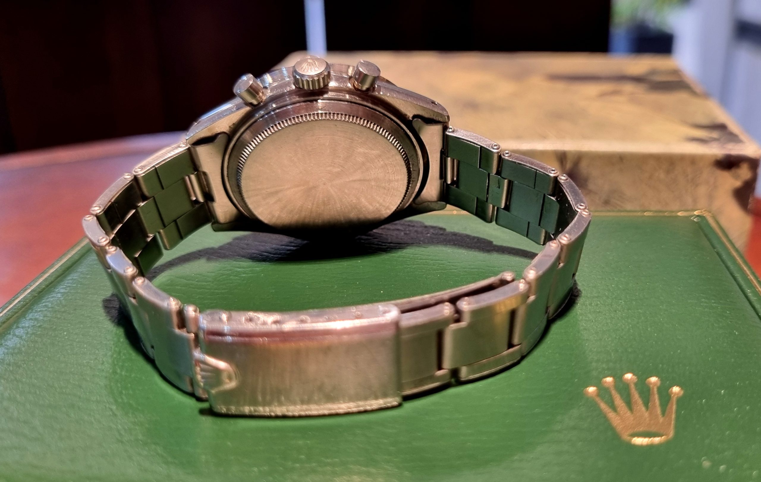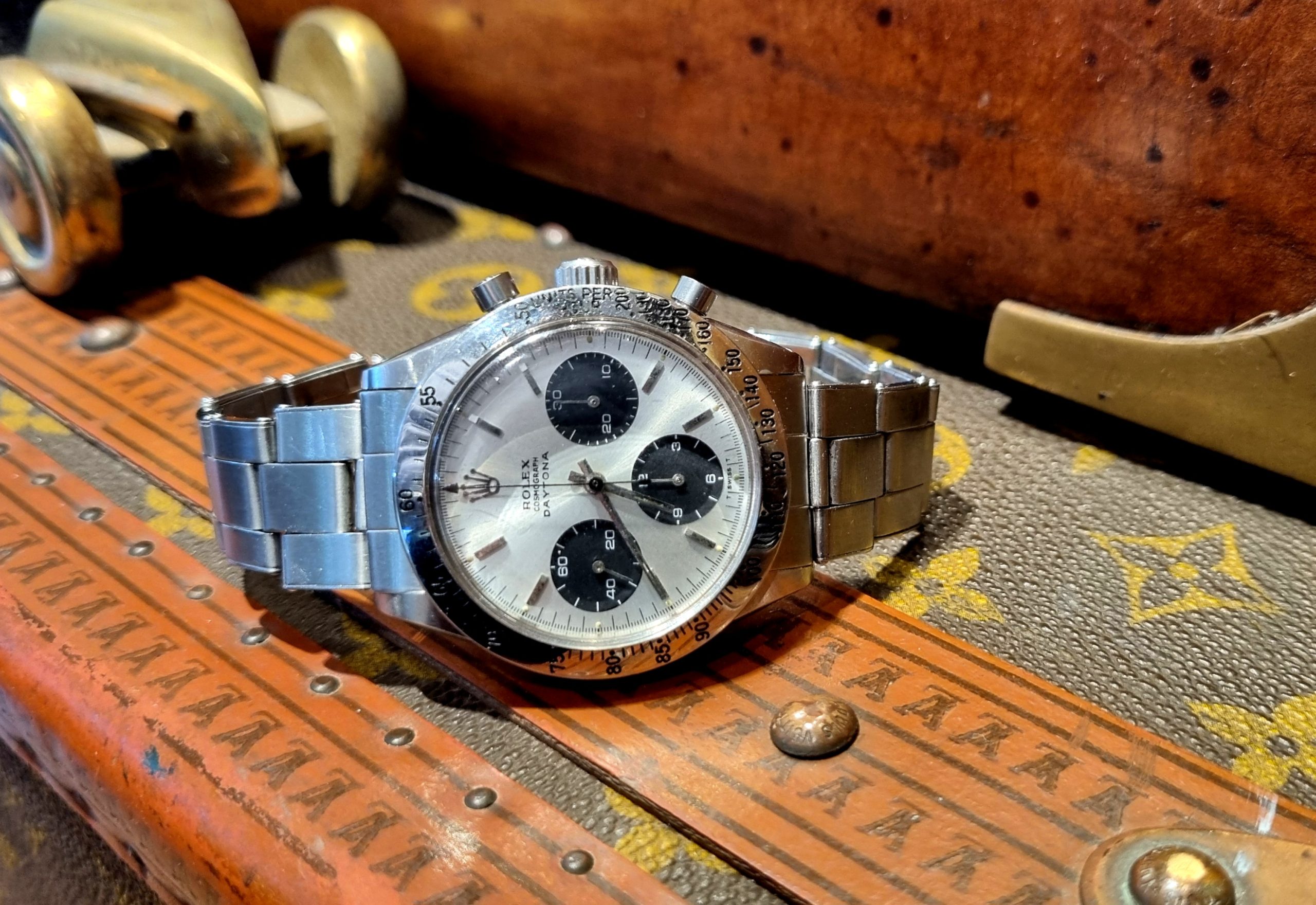 רולקס קוסמוגרף דייטונה " ביג דייט ", 6239 וינטג' דגם.6239 אספנות משנת 1965, זכוכית פלקסי, מנגנון מתיחה ידנית 722