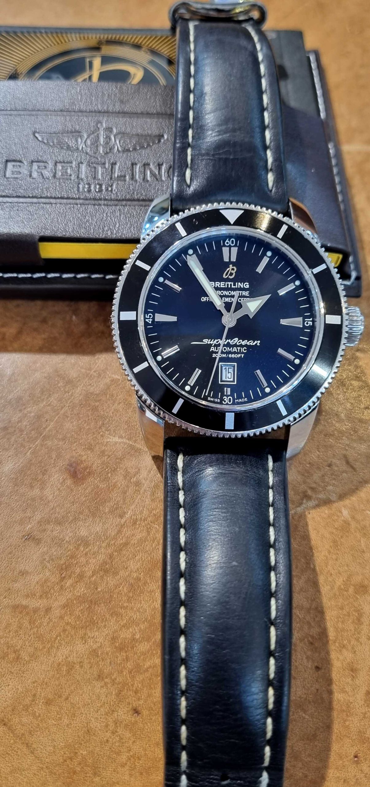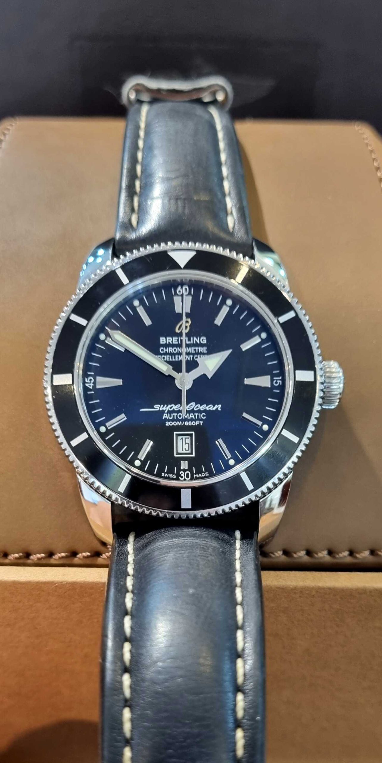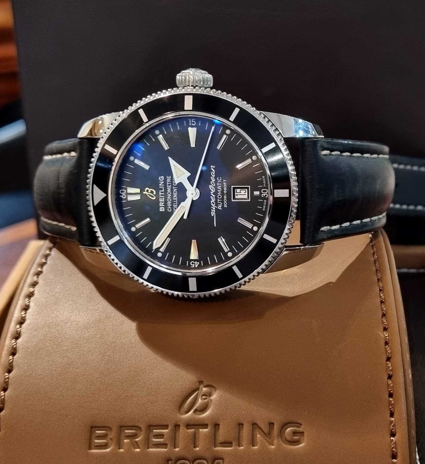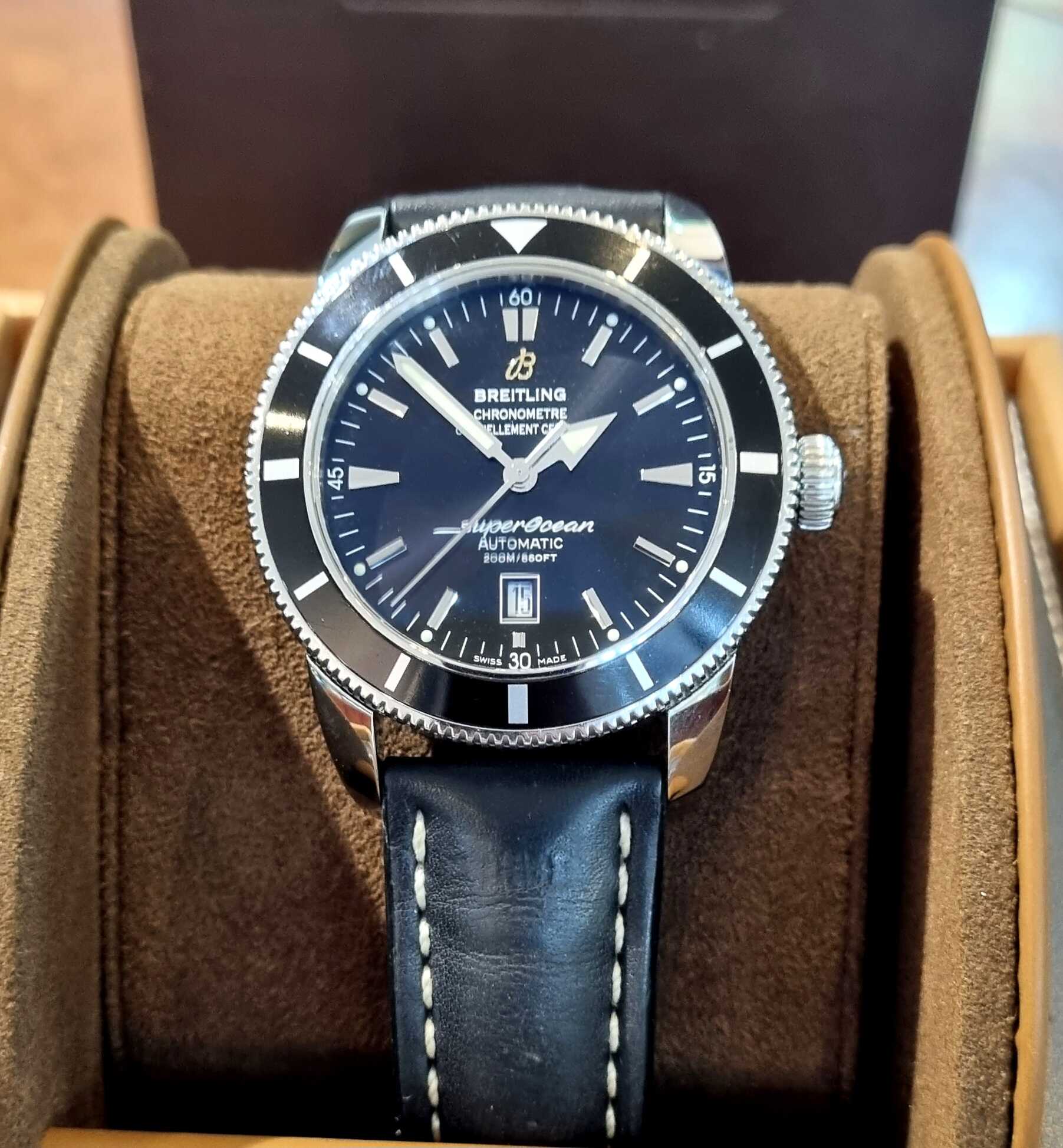 Breitling SuperOcean Heritage 46mm Ref.A17320Out of stock ₪11,000.00Inquire about this watch: Out of stock Inquire about this watch Via WhatsApp Categories: Breitling, SUPEROCEAN Tags: AUTOMATIC, Diver Watches, Modern Watches, New Arrivals, Pre Owned Watches, SUPEROCEAN HERITAGE Share this product Description Description Pre-Owned-2017 Ref.A17320 46mm Full Set Original Leather Strap