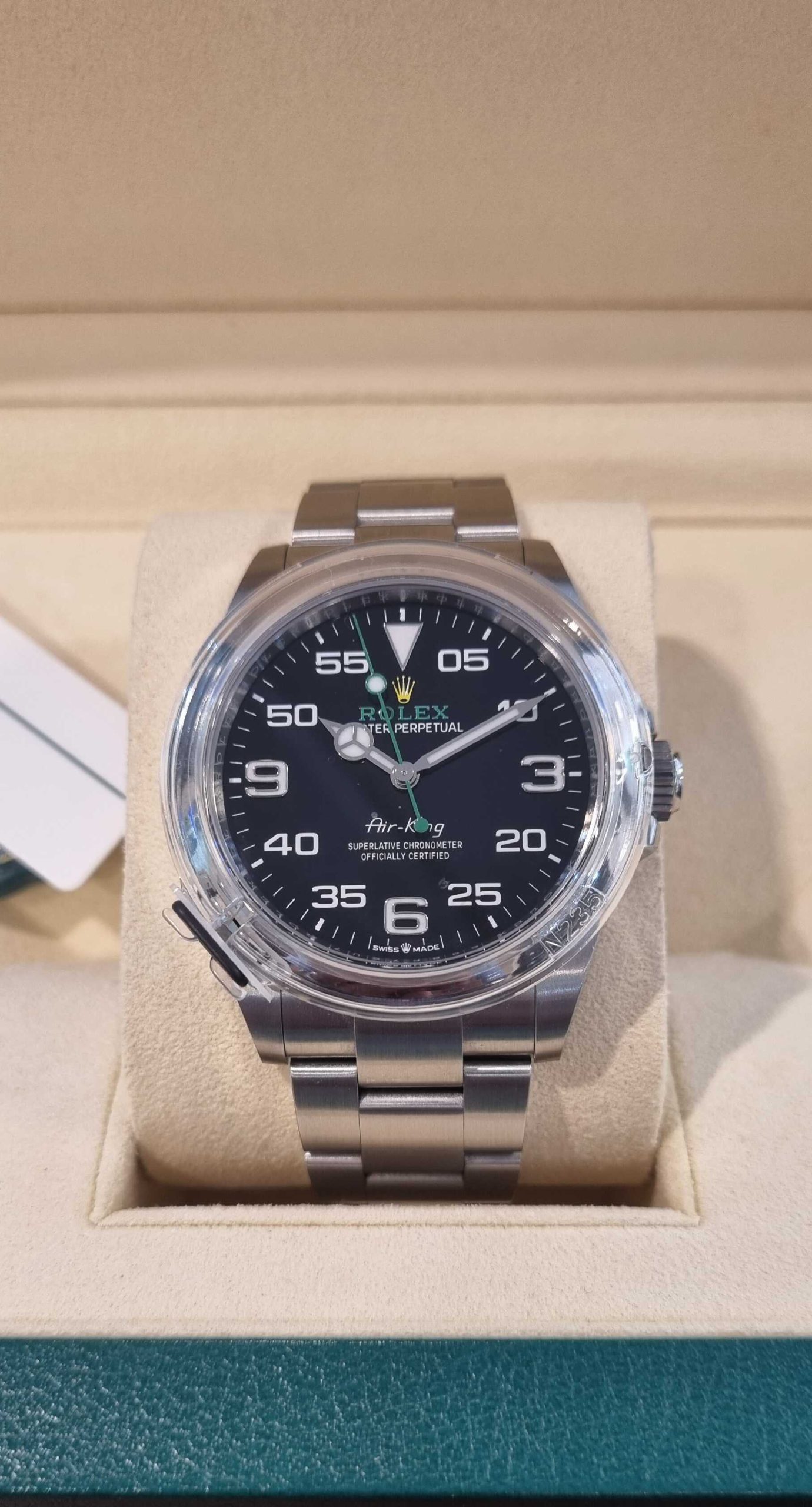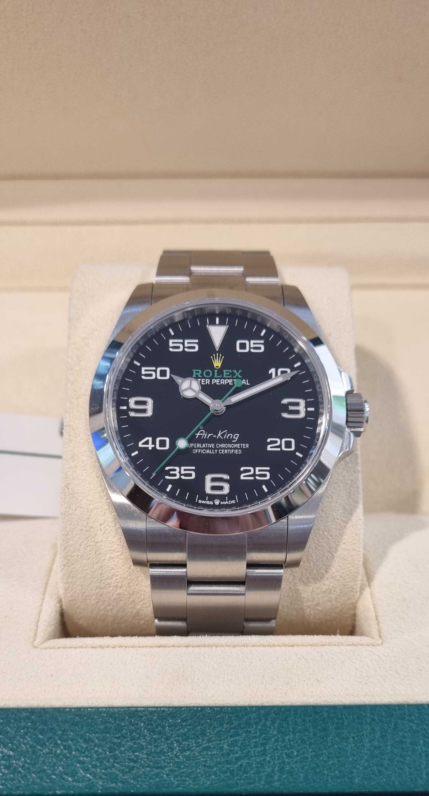 Rolex Air King 40mm Ref.126900Out of stock ₪35,000.00Inquire about this watch: Out of stock Inquire about this watch Via WhatsApp Categories: Air King, Rolex Tags: air king, AUTOMATIC, collectors-watches, Modern Watches, New Arrivals, Pre Owned Watches, Rolex Casual, Rolex Unisex, special watches Share this product Description Description Pre-owned-11/2022 LIKE NEW!! Ref.126900 Rolex warranty-11/2027 40mm