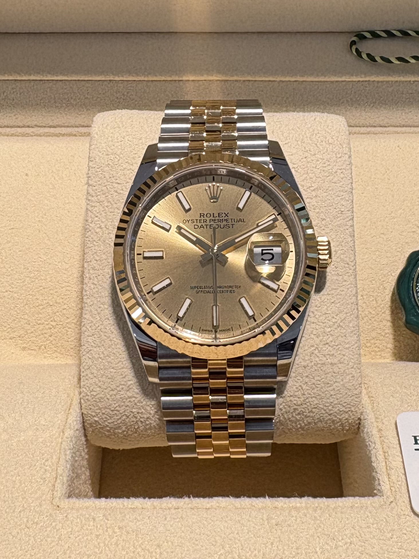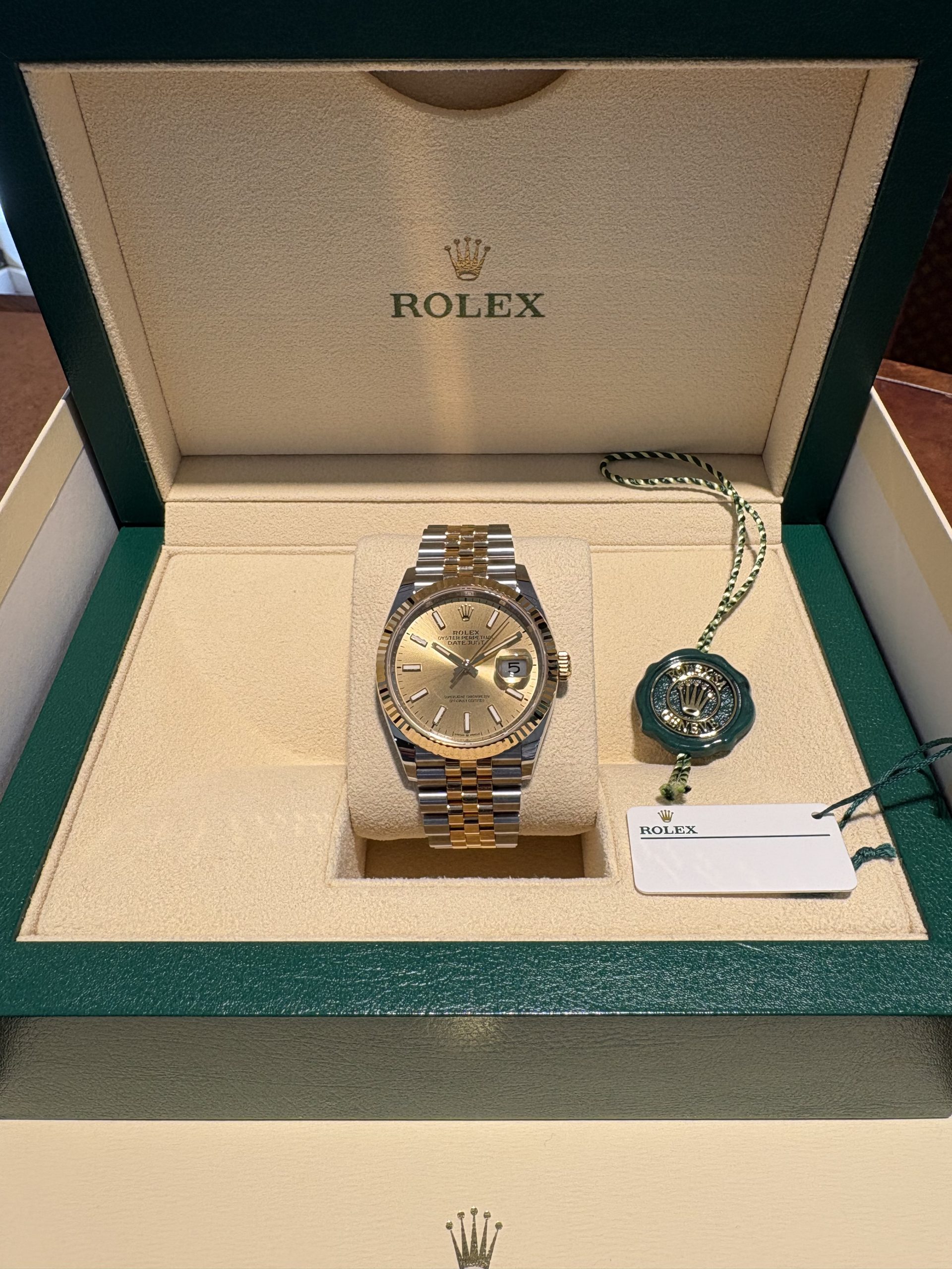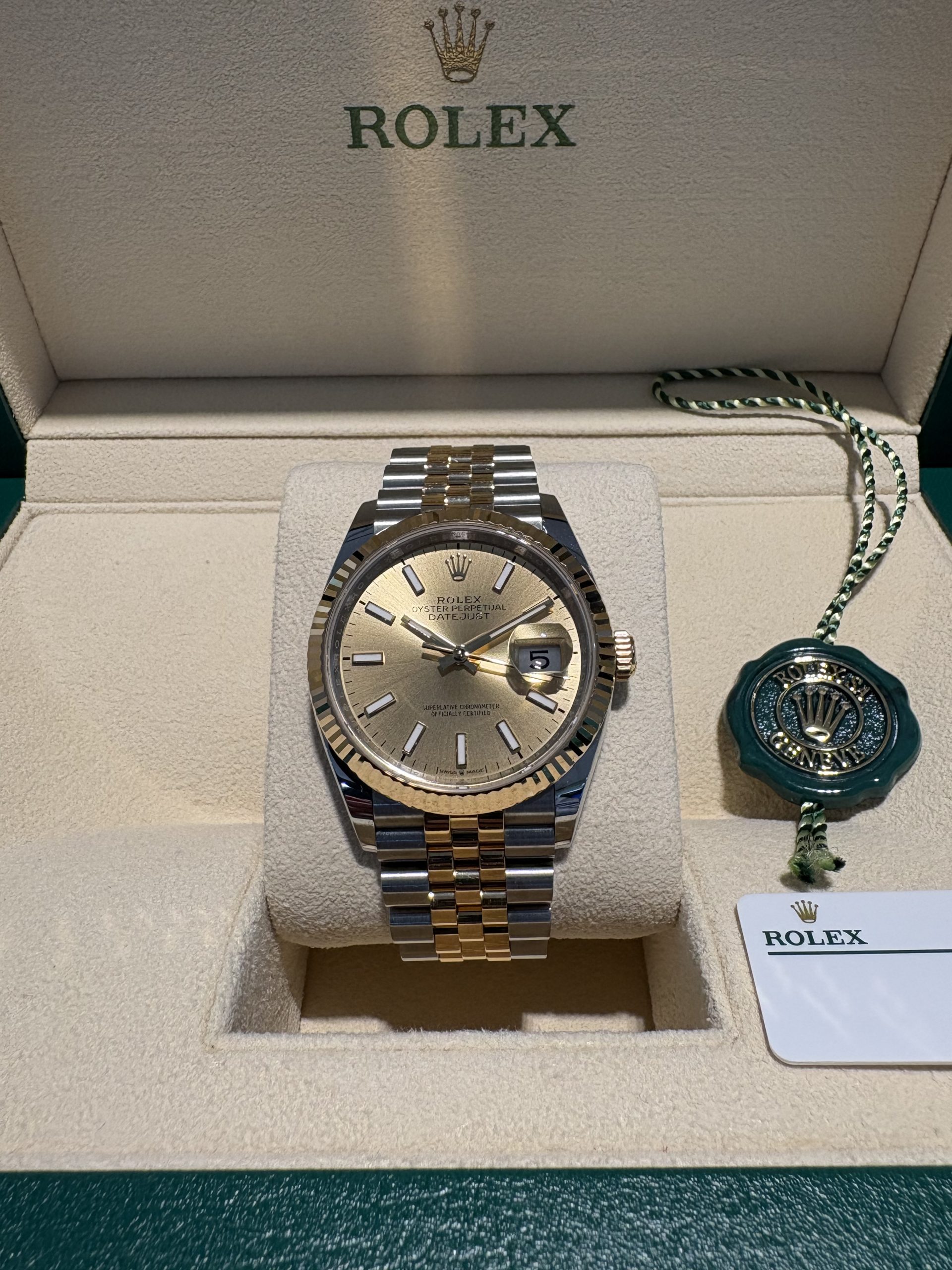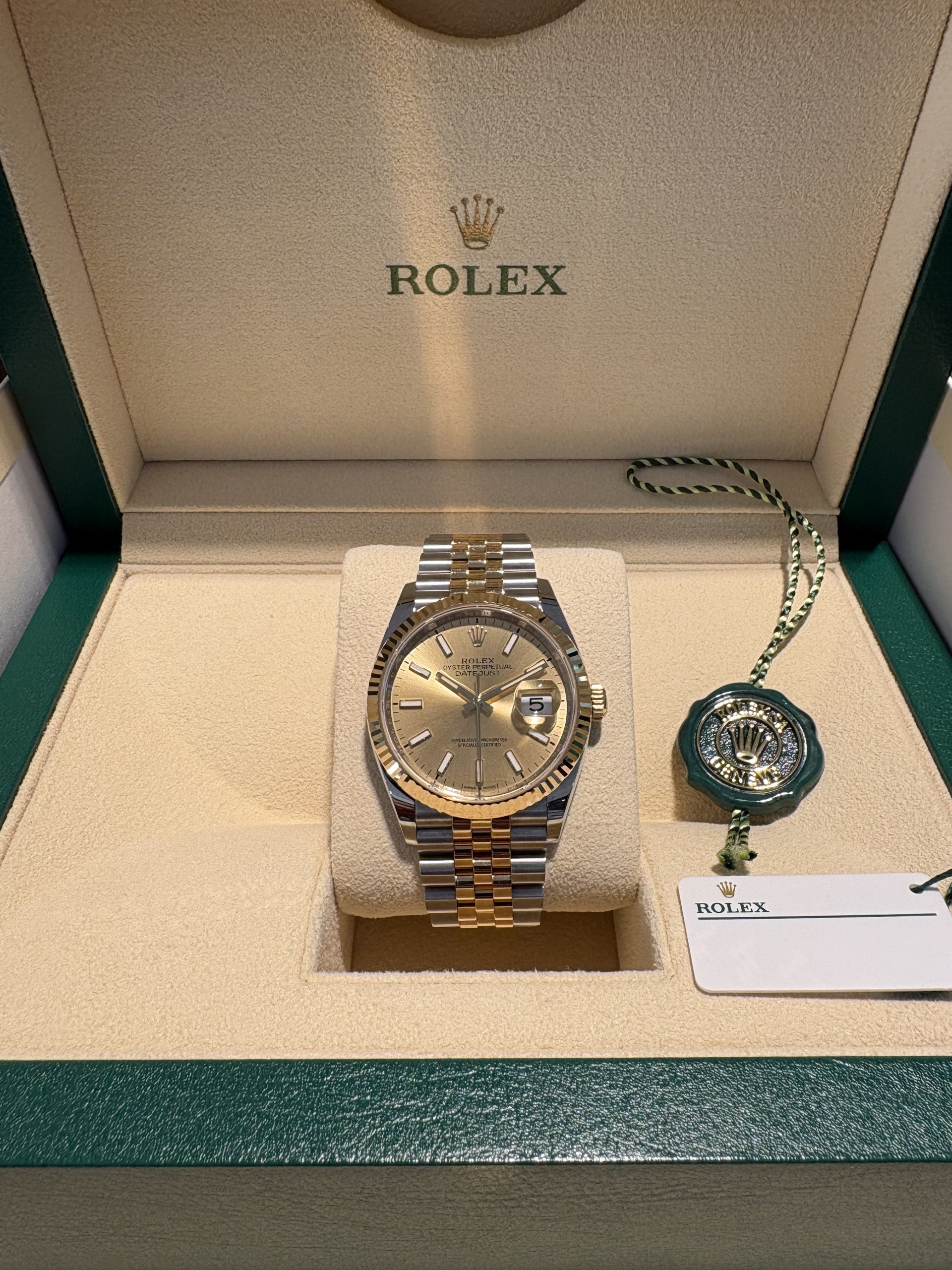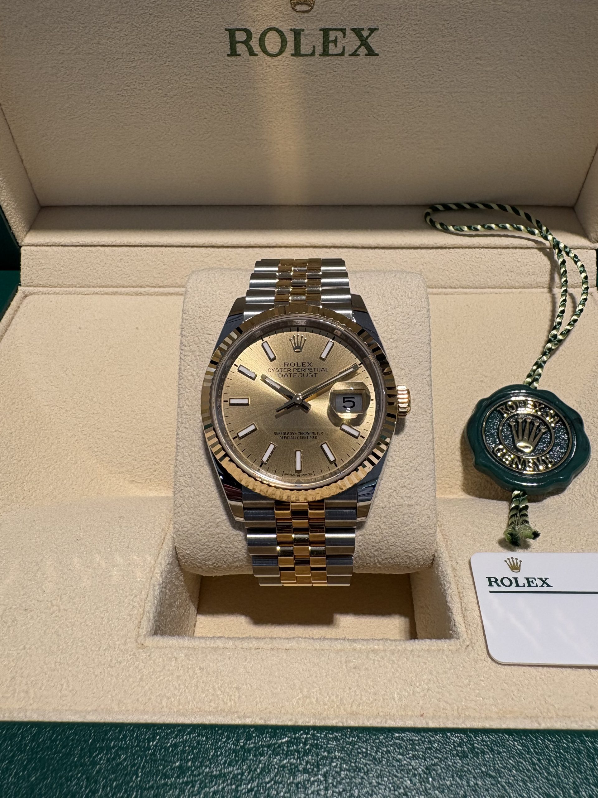Rolex Datejust 36mm Oyster steel & 18K Yellow Gold Ref.126233, Jubille bracelet, Champagne dial, fit men & women, pre-owned 2025 as NEW!!, Rolex warranty card-2029