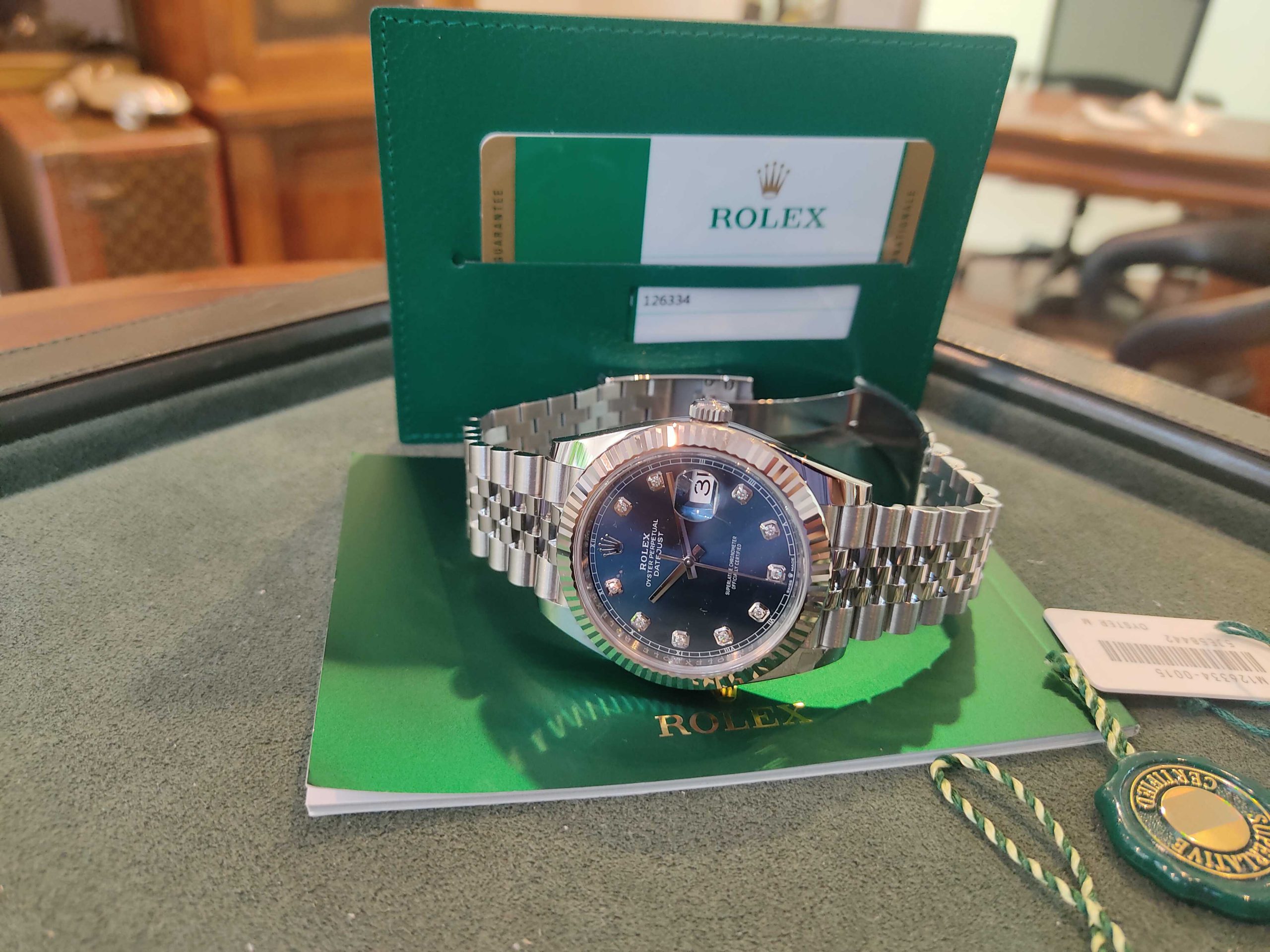 Rolex Datejust 41mm Blue Diamonds DialOut of stock ₪50,000.00Inquire about this watch: Out of stock Inquire about this watch Via WhatsApp Categories: Datejust, Rolex Tags: 41mm, blue dial, datejust, New Arrivals, Rolex Datejust, Rolex Diamonds, Rolex Jubilee, Rolex Preowned Share this product Description Description Ref.126334 2017 NEW CONDITION Blue Diamonds Dial White Gold Bezel 41mm 1 year warranty