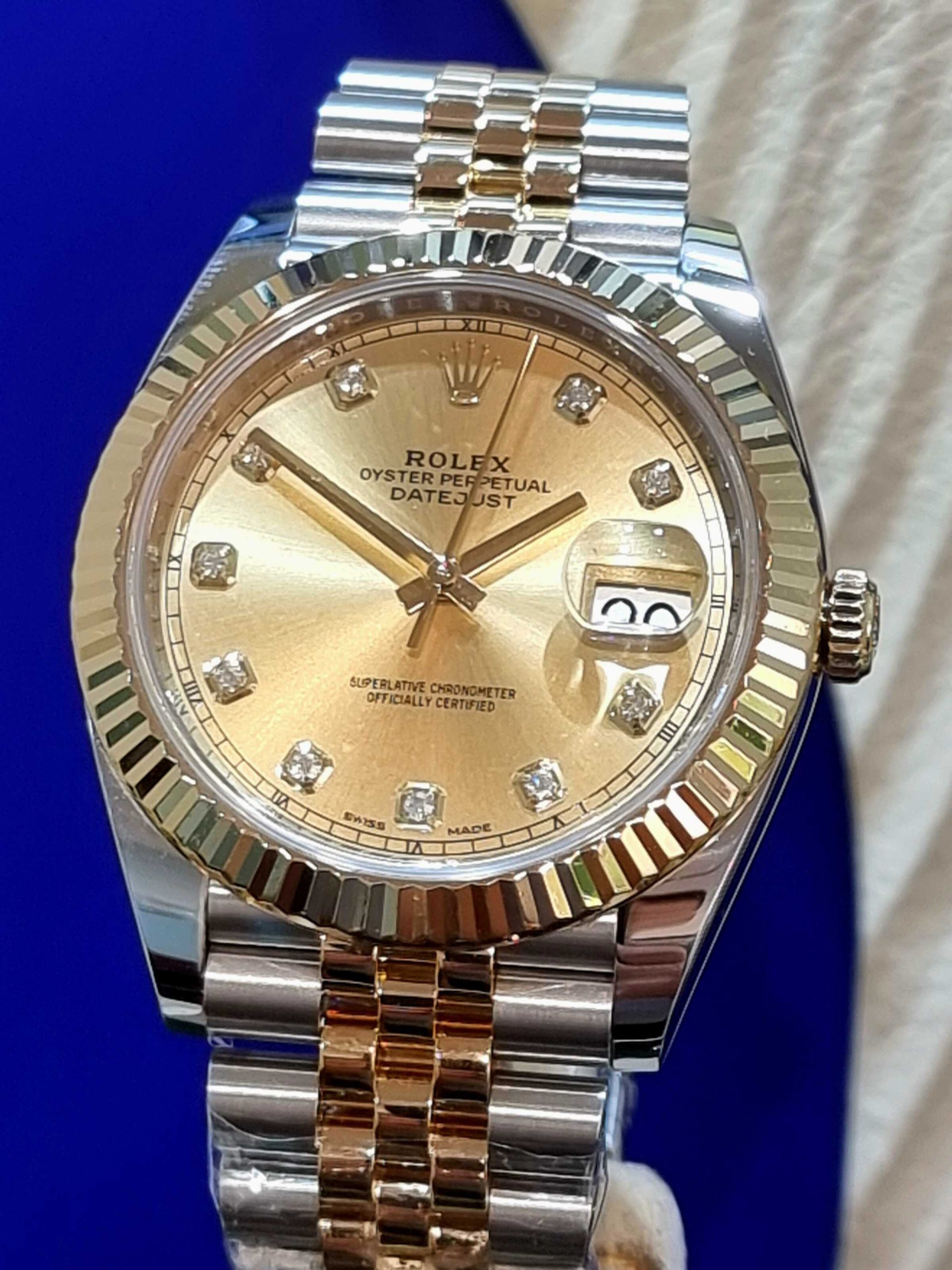 Rolex Datejust 41mm Steel & 18k Yellow Gold Diamonds Champagne DialOut of stock ₪61,500.00Inquire about this watch: Out of stock Inquire about this watch Via WhatsApp Categories: Datejust, Rolex Tags: AUTOMATIC, Diamonds watch, Modern Watches, New Arrivals, Pre Owned Watches, Rolex 18K Yellow Gold, Rolex Datejust, Rolex Jubilee, Rolex Two tone steel Gold Share this product Description Description Pre-owned-2017 Ref.126333 41mm Steel+Yellow Gold Jubilee Bracelet Diamonds dial full set