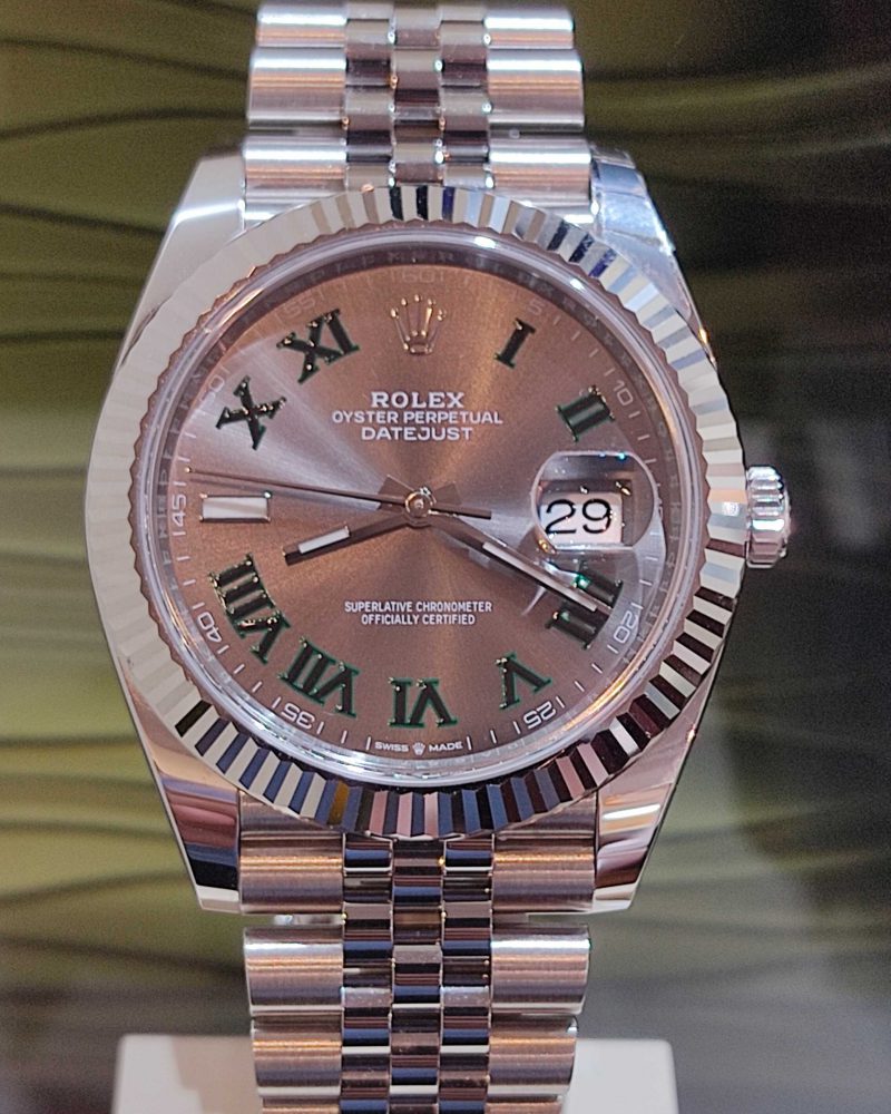 Rolex Datejust 41mm Steel & White Gold Bezel Wimbledon Dial ref.126334₪51,000.00Inquire about this watch: Rolex Datejust 41mm Steel & White Gold Bezel Wimbledon Dial ref.126334 quantity Add to cart Add to wishlist Inquire about this watch Via WhatsApp Categories: Datejust, Rolex Tags: AUTOMATIC, datejust, datejust 41mm, men watches, Modern Watches, New Arrivals, Pre Owned Watches, Rolex Datejust, Rolex Jubilee, Rolex mens watches, Rolex Unisex, Rolex White Gold Bezel, Rolex Wimbledon, wimbledon, Women Watches Share this product Description Description Pre-owned 2020 Ref.126334 Wimbledon Dial Steel White Gold Bezel Jubilee Bracelet Rolex warranty card