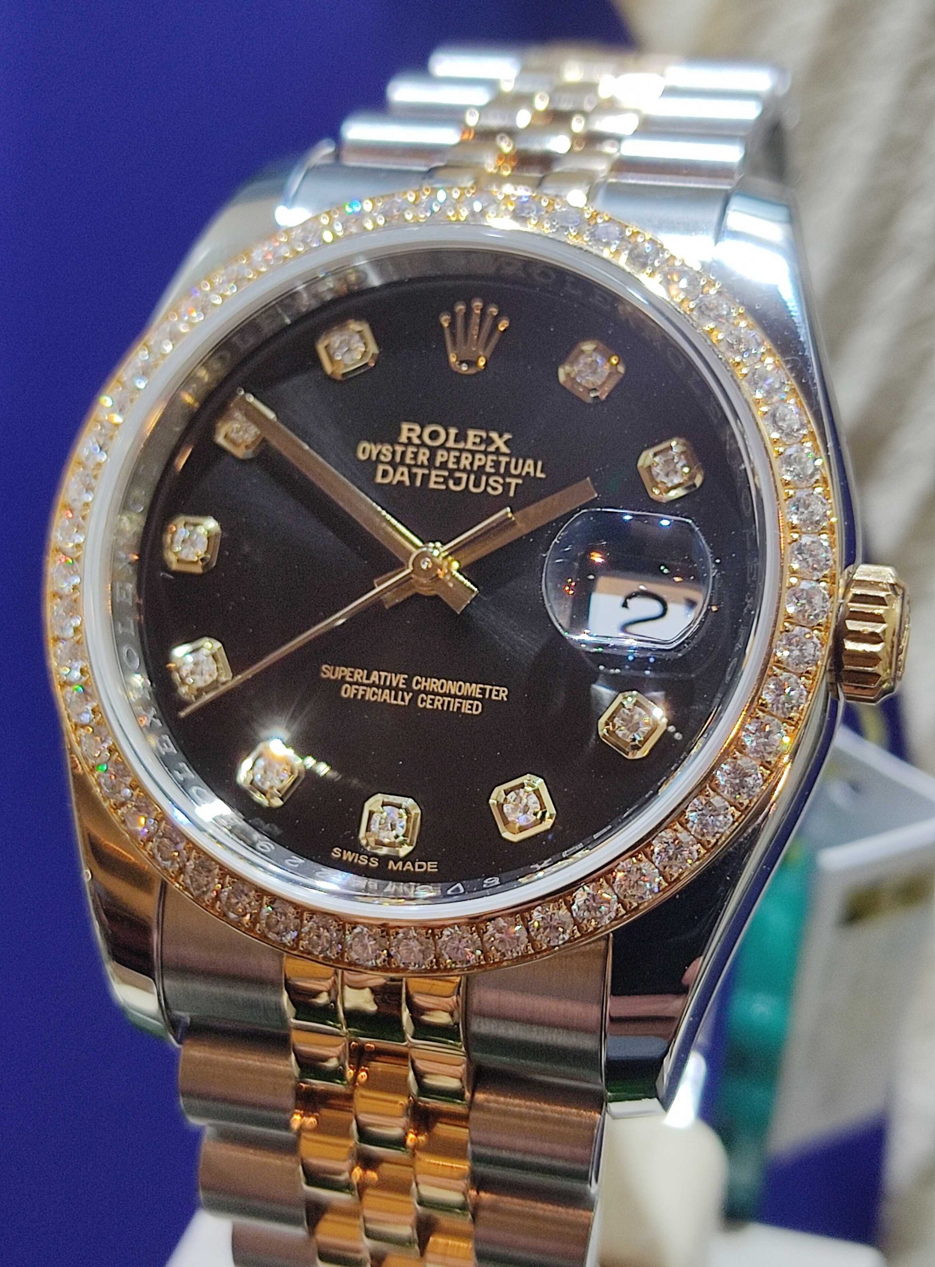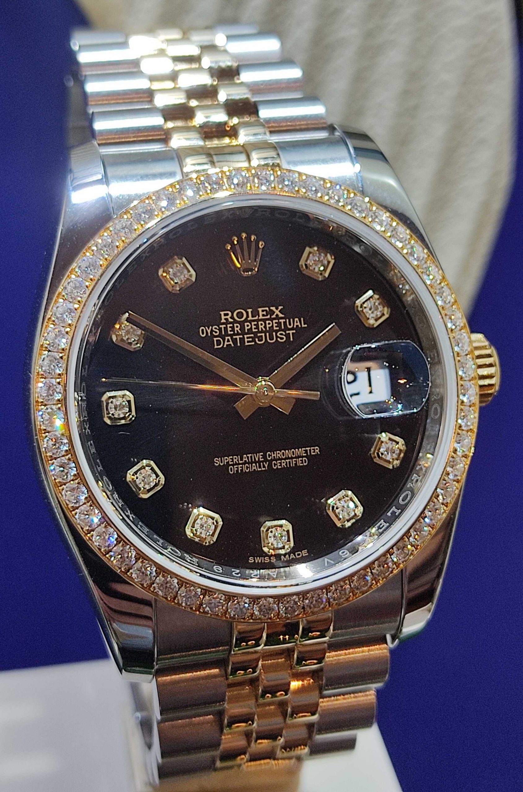 Rolex Datejust Two Tone 36mm Original Black Diamonds Dial & Original Factory Diamonds BezelOut of stock ₪79,750.00Inquire about this watch: Out of stock Inquire about this watch Via WhatsApp Categories: Datejust, Rolex Tags: Modern Watches, New Arrivals, Pre Owned Watches, Rolex Diamonds, Rolex Jubilee, Rolex Ladies, Rolex Two tone steel Gold Share this product Description Description Pre Owned 2018 Ref.116243 36mm Original Factory Diamonds bezel+Dial Jubilee Bracelet Steel& Yellow Gold