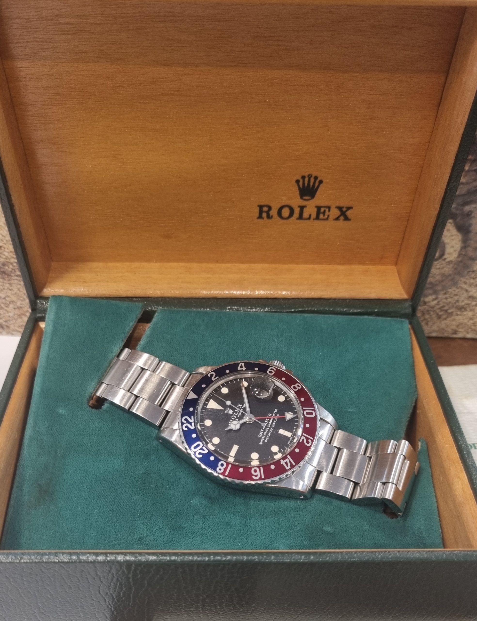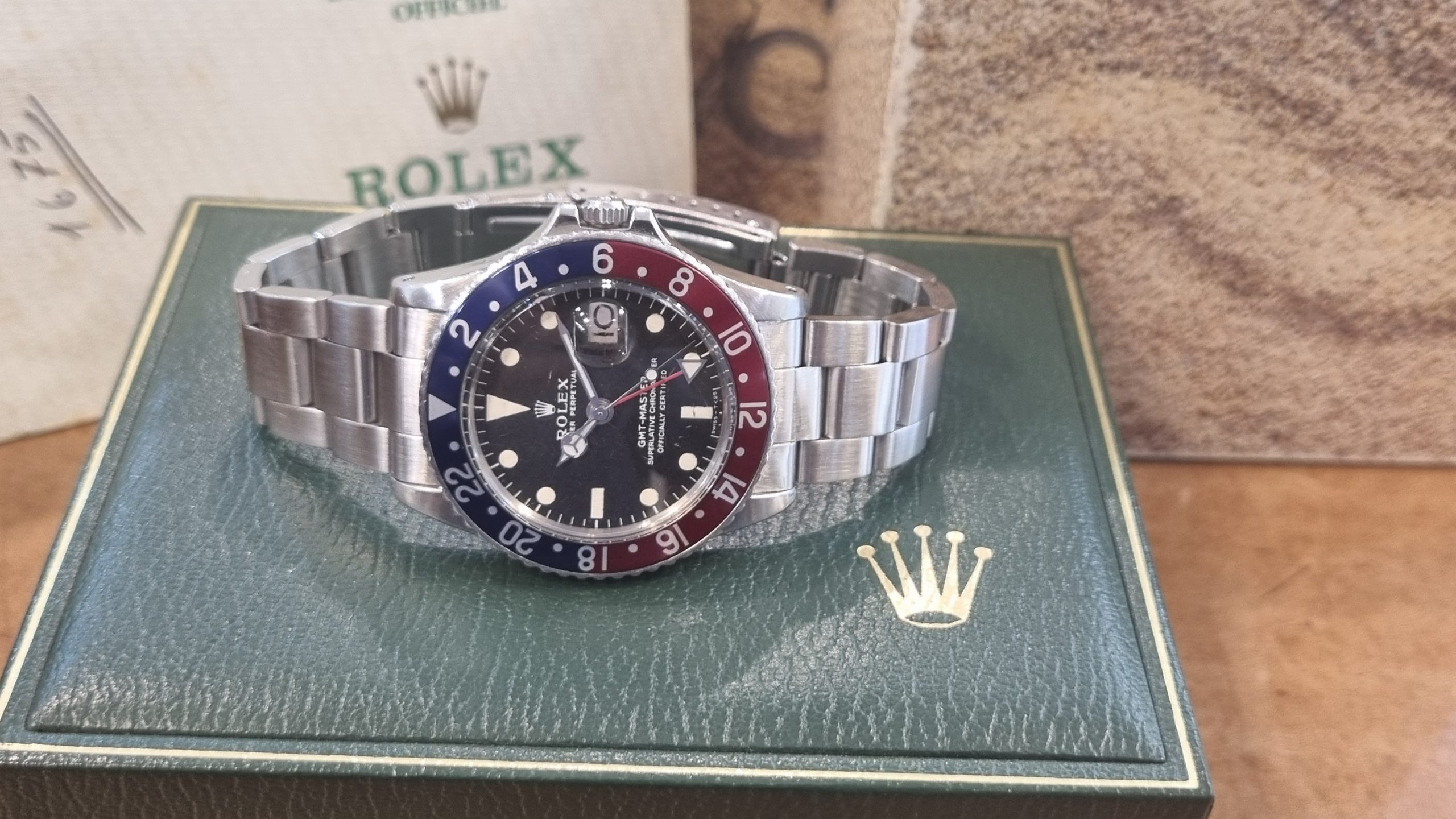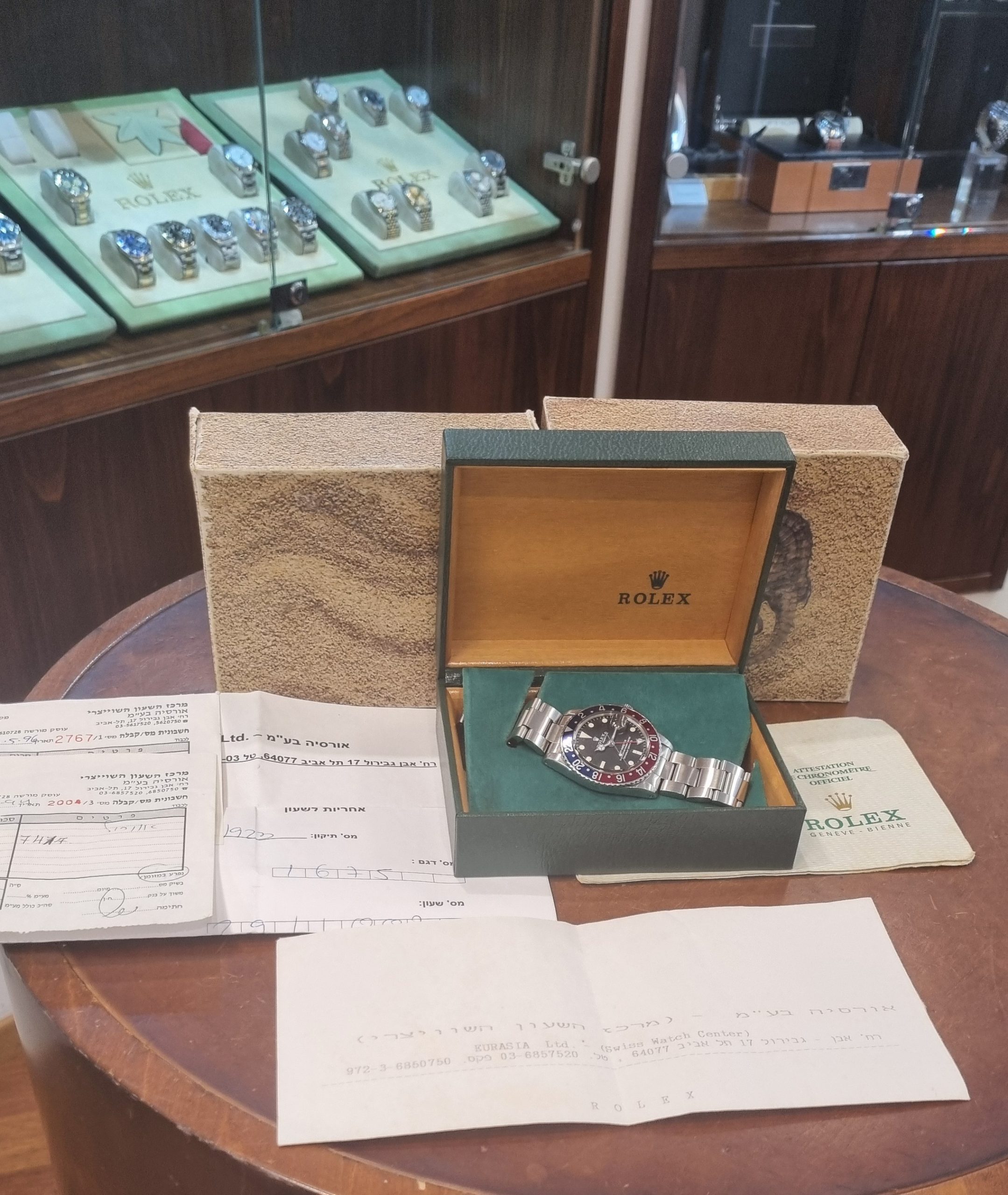רולקס ג'י אם טי מאסטר פפסי וינטג' דגם.1675 שנת 1972 נדיר עם קופסא+ תעודה+ היסטוריה של טיפולים