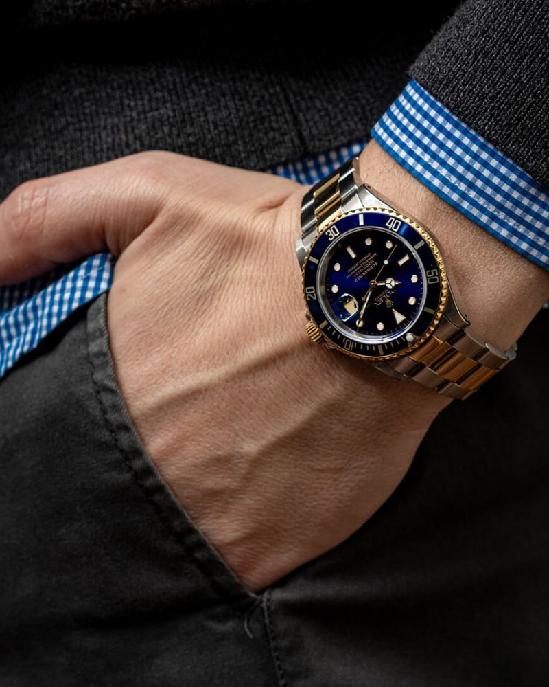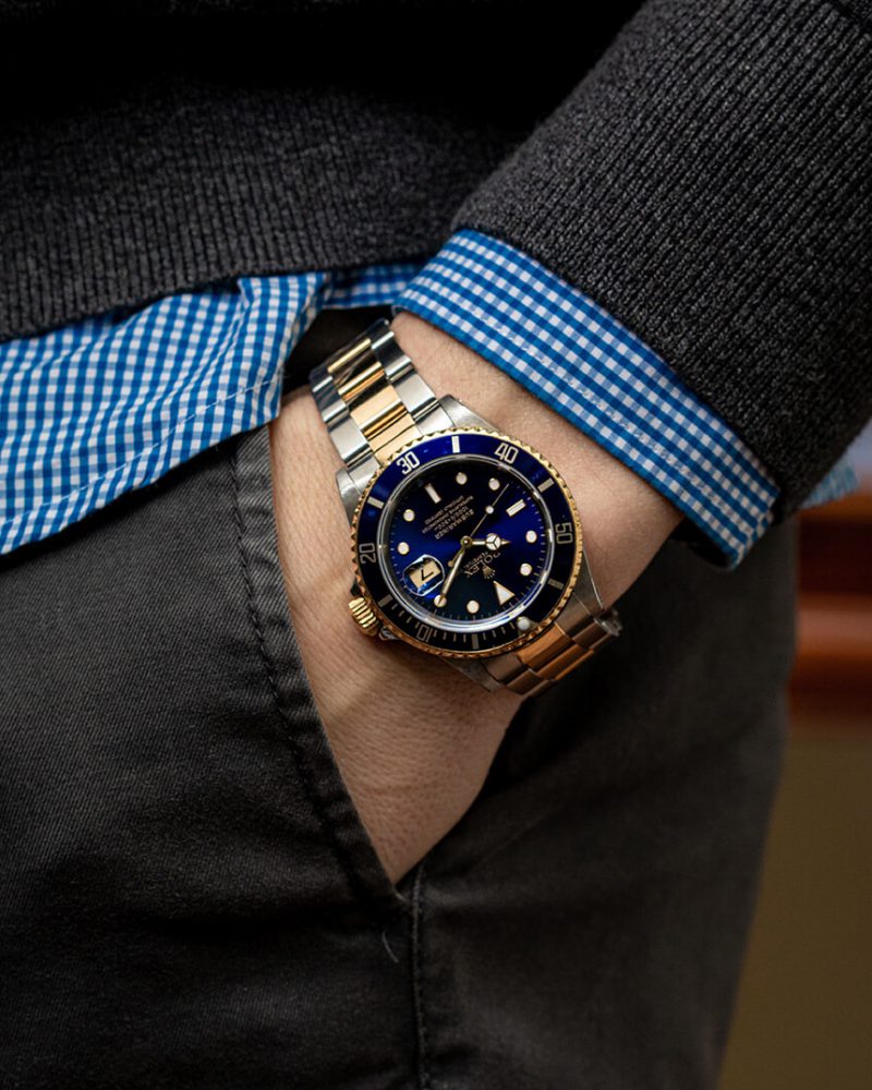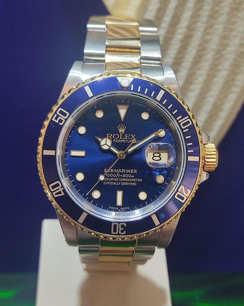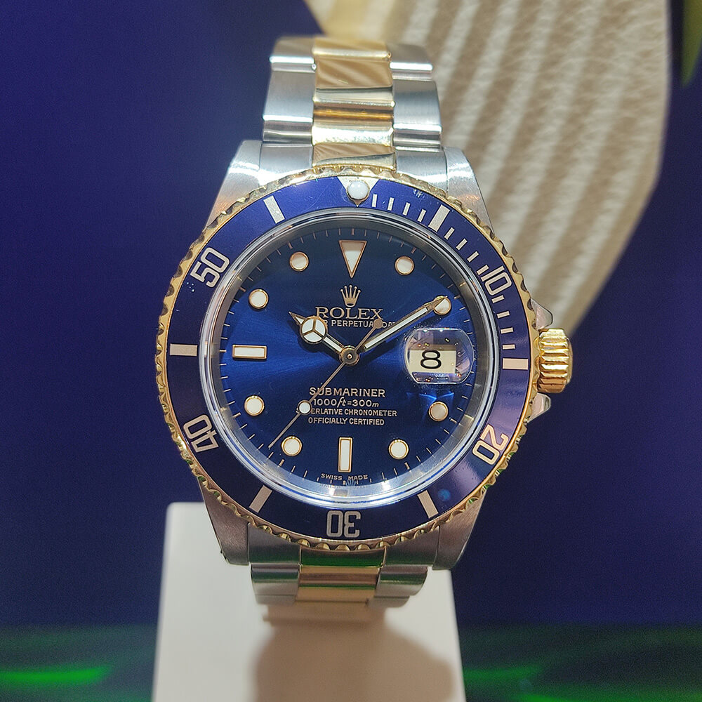 רולקס סאבמרינר פלדה משולב זהב לוח כחול יד-שנייה שנת 2004 דגם.16613