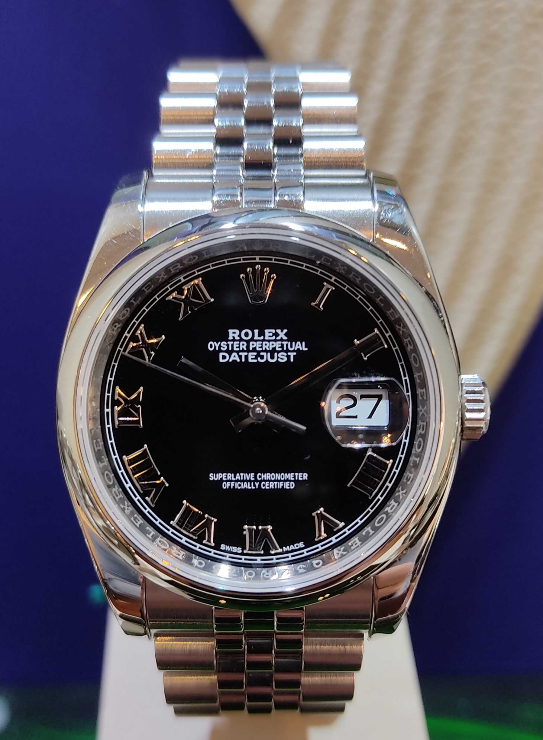 שעון רולקס דייטג'אסט 36 מ"מ יד-שנייה שנת- 2015 לוח רומי שחור דגם. 116234 פלדה וזהב לבן 18 קרט